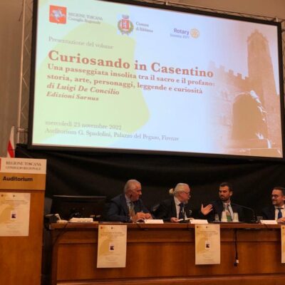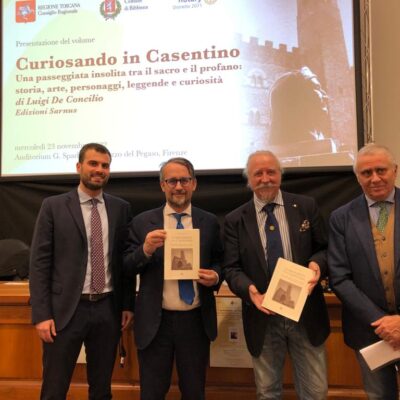 Firenze – ‘Curiosando in Casentino‘, di Luigi De Concilio, è una passeggiata lunga cinquecento pagine tra il sacro e il profano in una delle zone più belle della Toscana. Una guida che accompagna il lettore tra storia, arte, personaggi, leggende e curiosità. Il volume, edito da Sarnus, è stato presentato il 23 novembre in auditorium Spadolini dove a fare gli onori di casa è stato il vicepresidente del Consiglio regionale Marco Casucci: “Questo libro mi è entrato nel cuore perché parla di una delle vallate che amo di più. L’autore ha scritto tante leggende e tanti momenti che meritavano di essere raccontati. Parla della nostra identità e ci rende orgogliosi di essere toscani”.