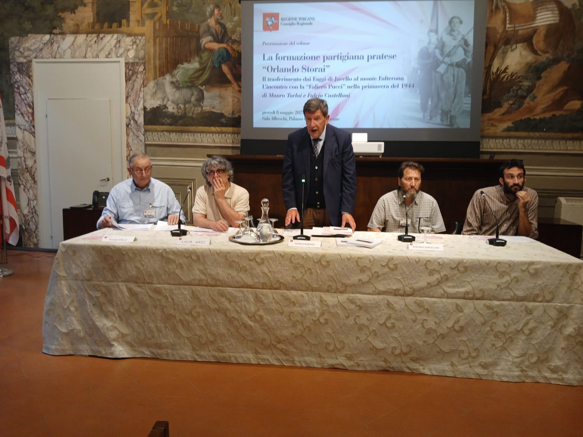 “Per noi è un onore seguire la presentazione di questo libro, che traccia un momento importante della storia della liberazione del territorio pratese, ma che si unisce poi alla liberazione dell’intero territorio nazionale”, ha detto il consigliere regionale Marco Martini, che ha portato i saluti del presidente del Consiglio regionale, Antonio Mazzeo. Martini ha aggiunto: “I partigiani che si citano nelle tante storie inserite nel libro e le tante persone che dettero vita alla formazione Storari sono stati artefici della lotta di liberazione sulla quale, poi, è nata la nostra Costituzione e questo è il punto assolutamente importante. È doveroso fare memoria, ma ancora di più è doveroso riconoscere il valore che c’è stato in queste persone, molte delle quali morte in combattimento o per rappresaglia, come successo col tragico episodio dei 29 martiri di Figline”.