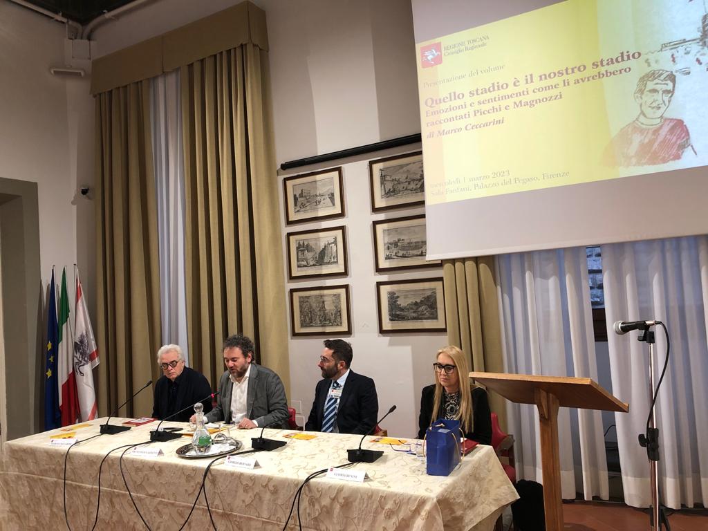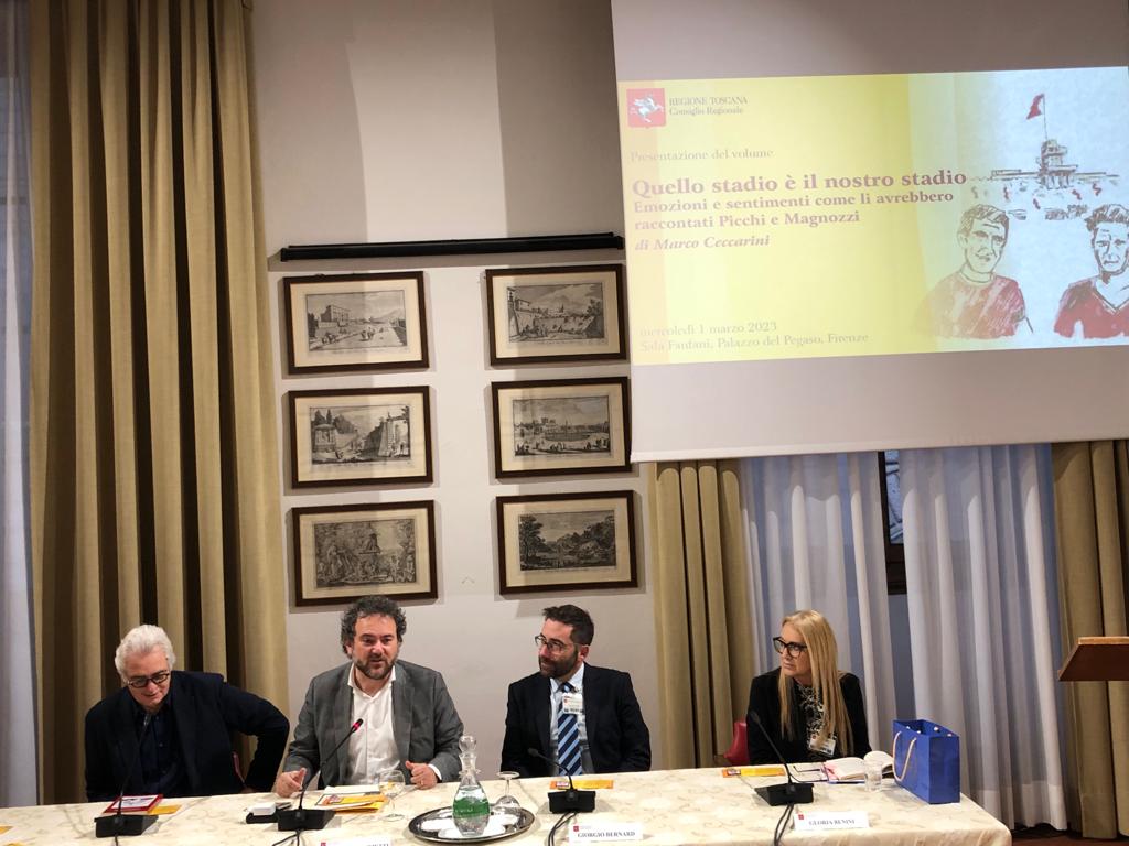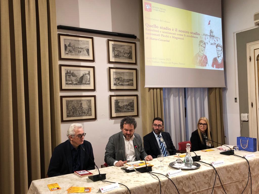 Firenze – Quello stadio è il nostro stadio, emozioni e sentimenti come li avrebbero raccontati Picchi e Magnozzi è la storia di due grandi calciatori del passato, nati a Livorno, Mario Magnozzi e Armando Picchi scritta dal giornalista Marco Ceccarini. Il volume è stato presentato mercoledì 1 marzo nella sala Fanfani di palazzo del Pegaso.