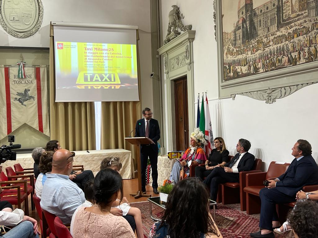 Firenze – Una storia unica quella di Caterina Bellandi, ovvero zia Caterina, la famosa tassista di Firenze conosciuta in Italia e nel mondo per la sua opera di assistenza ai bambini malati di tumore, che accompagna con allegria e leggerezza nel proprio taxi colorato e pieno di peluche all’ospedale Meyer di Firenze. Una storia raccontata da Alessandra Cotoloni, raccogliendola nel libro Taxi Milano25. In viaggio con zia Caterina, una rivoluzionaria dei nostri tempi .Alla presentazione del volume in sala Gonfalone di palazzo del Pegaso sono intervenuti il presidente e il vicepresidente del Consiglio regionale Antonio Mazzeo e Marco Casucci, l’assessore toscano Leonardo Marras. Con Caterina Bellandi era presenti l’autrice Alessandra Cotoloni e la giornalista Elena Tempestini che ha moderato l’incontro.