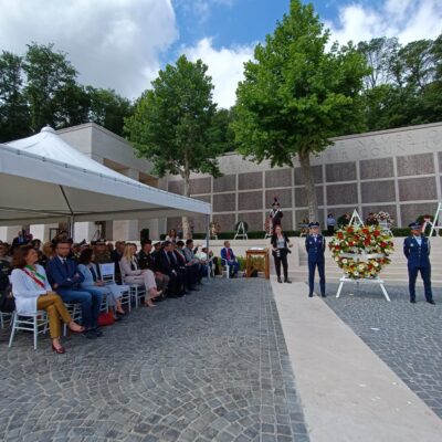 Mazzeo ha partecipato alla deposizione delle corone lungo il Muro dei Dispersi e ha reso gli onori alla Banda della Sesta flotta della Marina militare statunitense e alla Fanfara dei Carabinieri di Firenze che hanno eseguito gli inni degli Stati Uniti e dell’Italia. Gli onori militari ai caduti sono stati portati dai reparti in armi delle Forza armate americane e italiane.