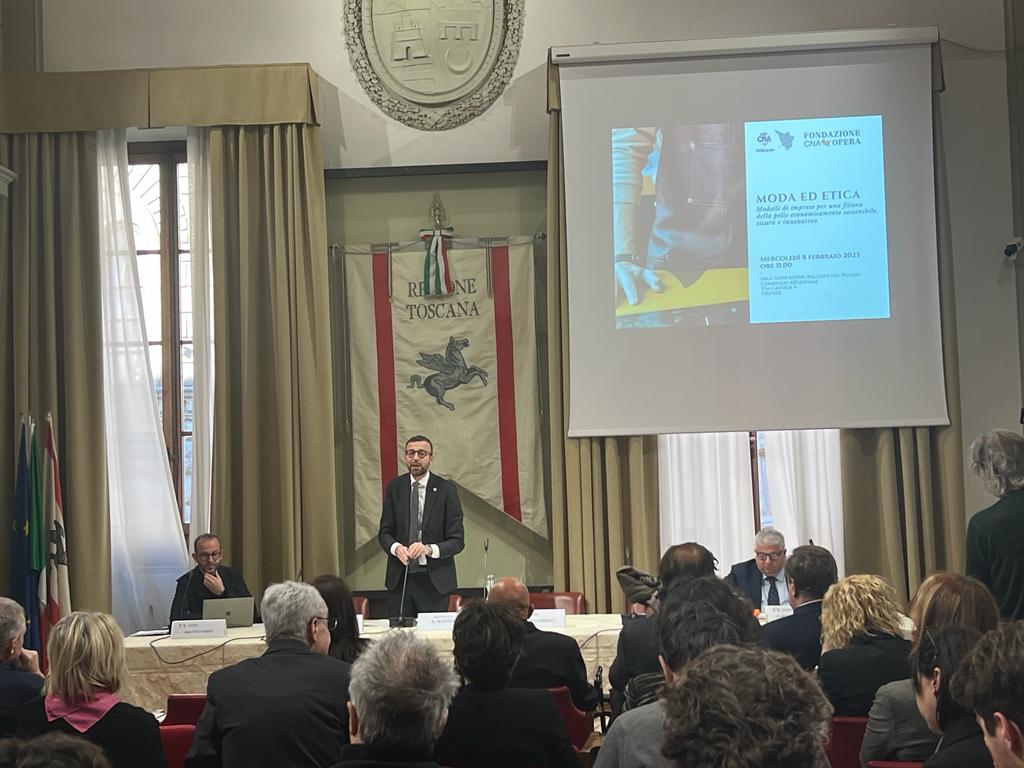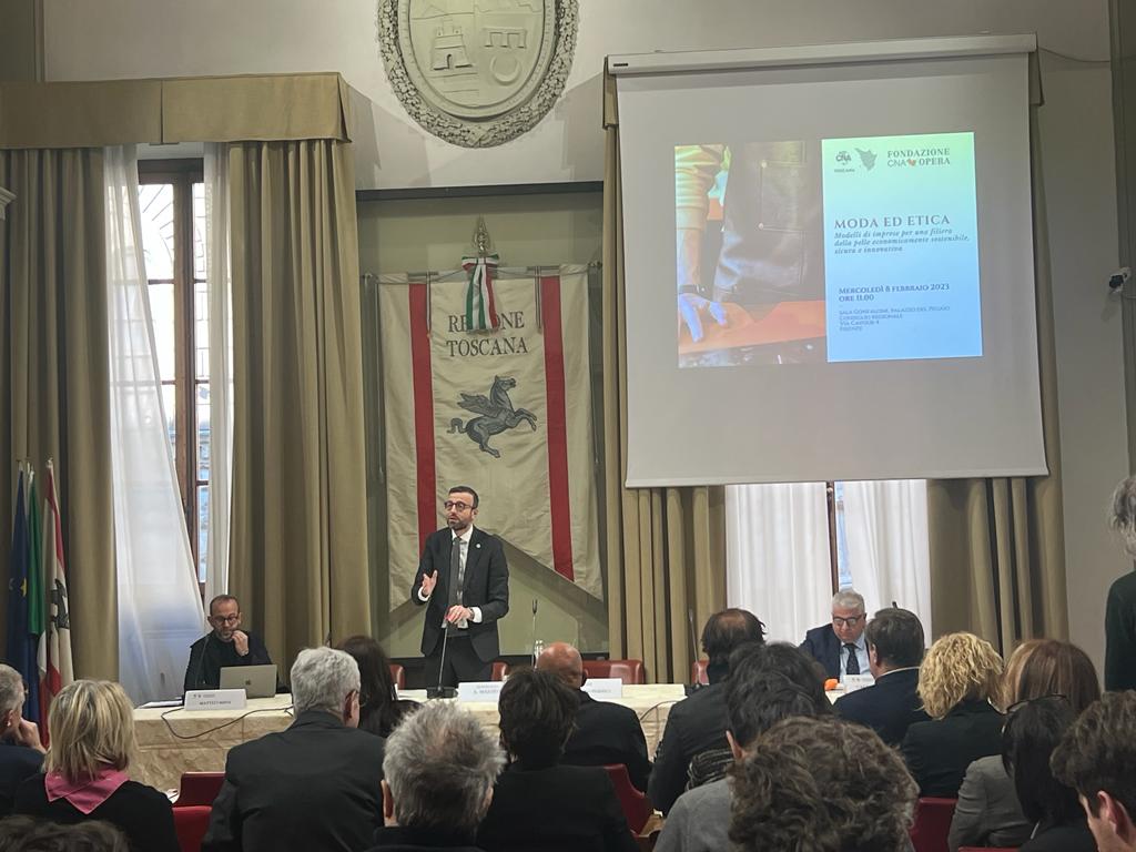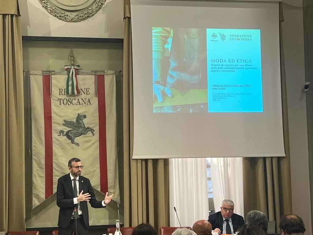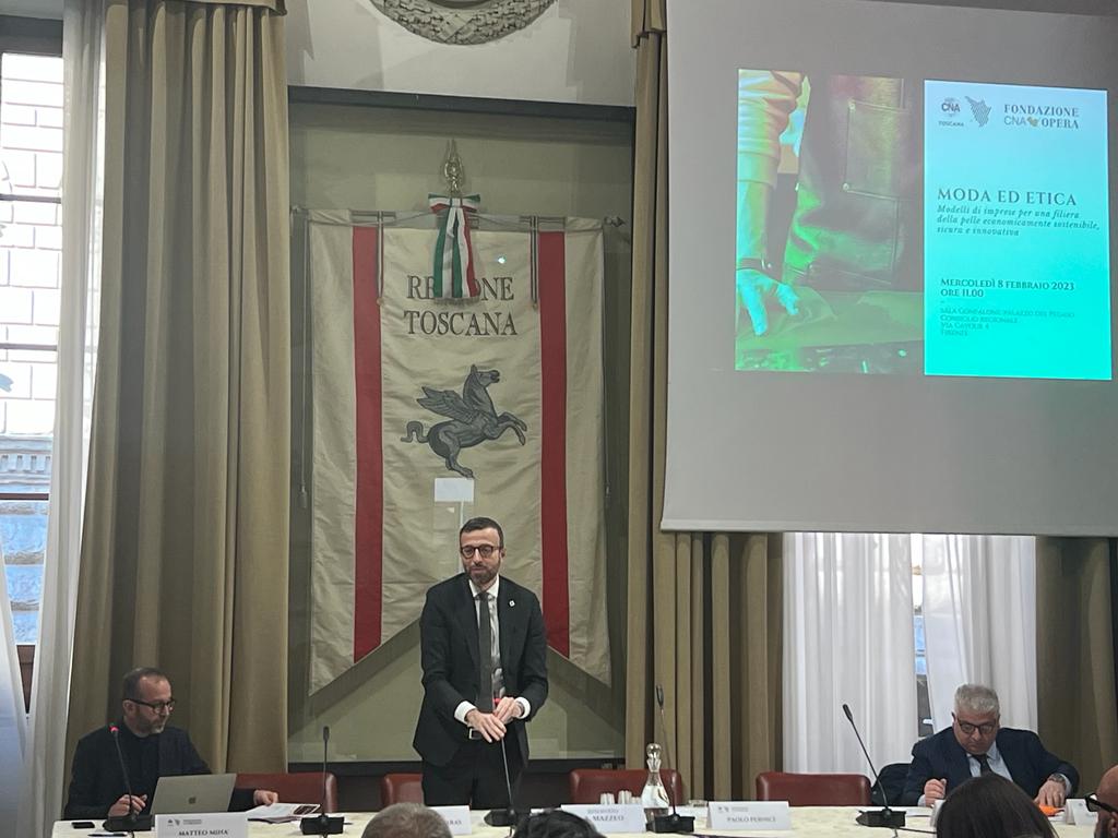 Firenze – La provincia di Firenze e la Toscana come il principale polo della pelletteria di alta qualità e del lusso del mondo, in cui operano grandi imprese, multinazionali ma soprattutto tantissime piccole imprese e aziende artigiane. Da questo dato ha preso le mosse la tavola rotonda ‘Moda e etica: modelli di imprese per una filiera della pelle economicamente sostenibile, sicura e innovativa’ organizzata da CNA Federmoda con la collaborazione di CNA Opera, che si è tenuta questa mattina a palazzo del Pegaso e in cui è intervenuto il presidente del Consiglio regionale Antonio Mazzeo.