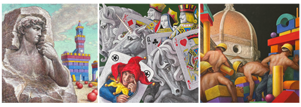 Autodidatta di formazione è riuscito, con grande talento, a sviluppare un personalissimo linguaggio figurativo dove surreale e reale convivono in un delicato punto di incontro che lui solo riesce a concretizzare con la forza del disegno e una pittura quasi lenticolare che permette all’occhio di perdersi nei dettagli della narrazione. Molte le mostre, personali e collettive, in diverse località italiane e straniere (Svizzera, Principato di Monaco, Giappone, Cina, Portogallo).