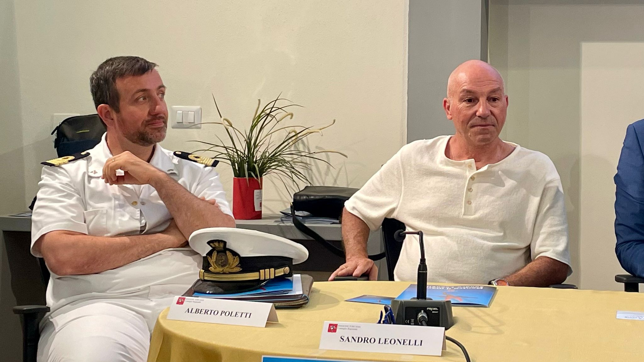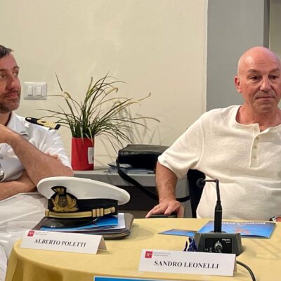 Accanto a lui il tenente di vascello del Comando della Guardia Costiera Piombino Alberto Poletti che parla della mostra con “gratitudine. È stato un cammino lungo e intenso al quale ho partecipato con la squadra della Guardia Costiera accompagnando Sandro con discrezione, a volte sostenendolo in un percorso avvincente che possiamo ammirare in queste sale e da cui traspare l’infinita passione per il mare”.