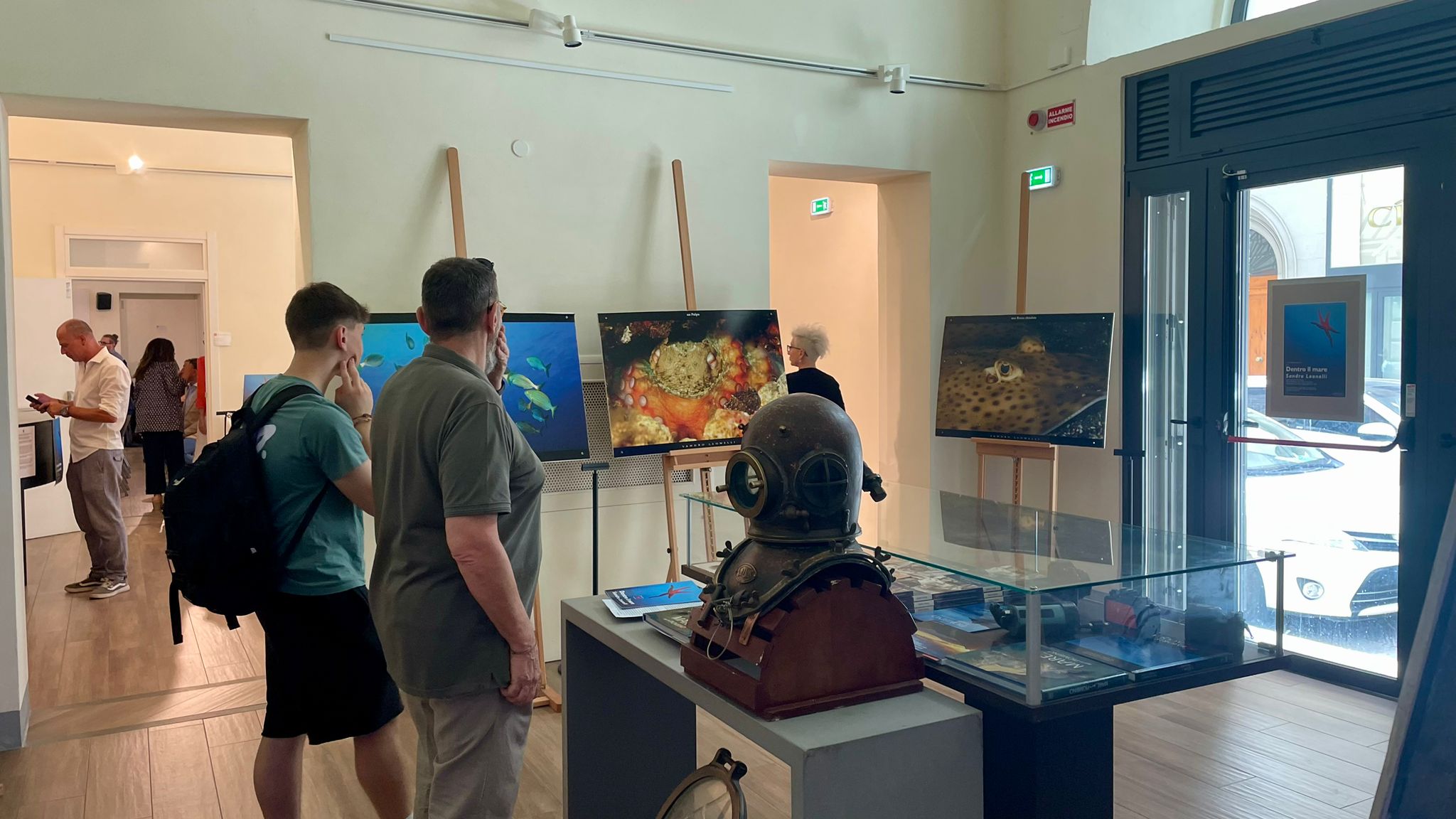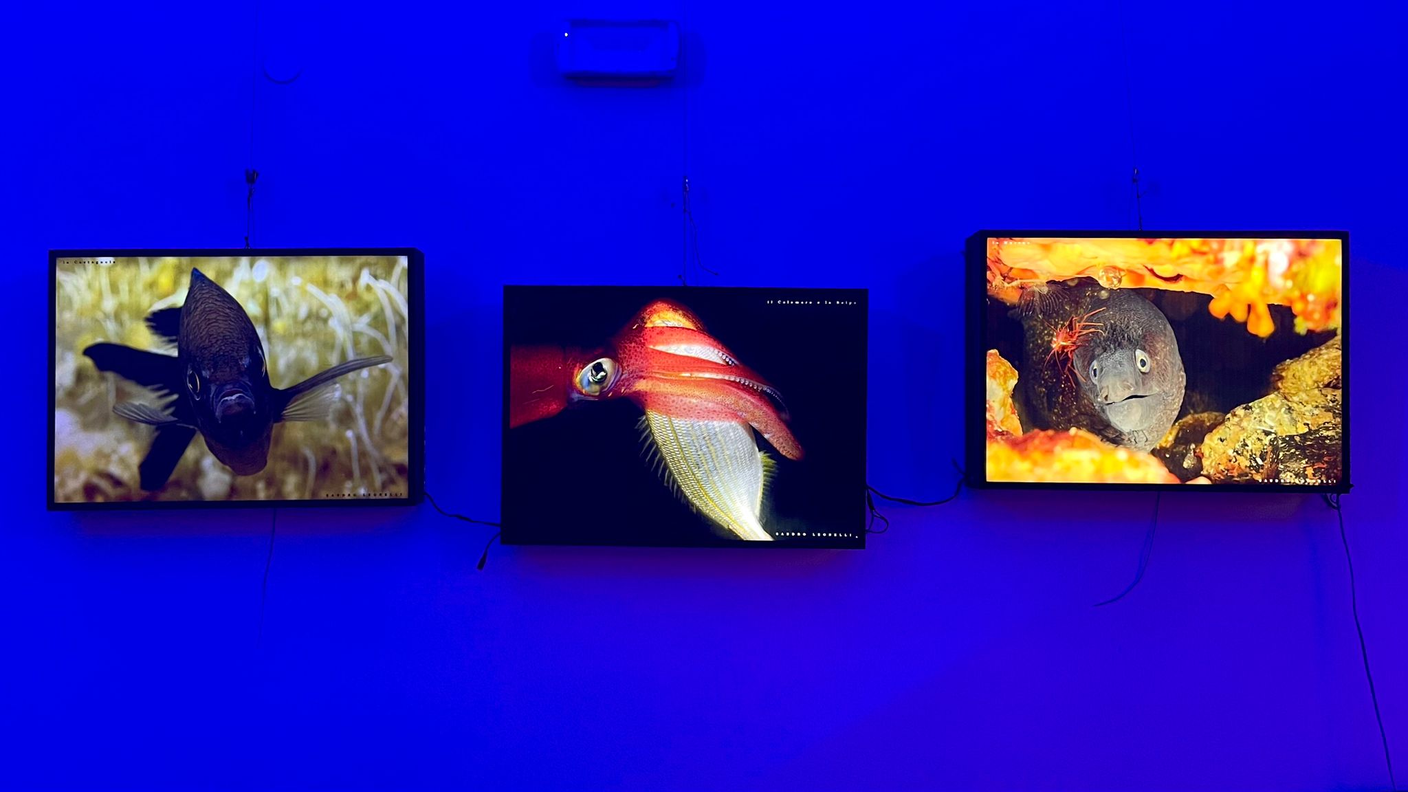 Nello Spazio espositivo Carlo Azeglio Ciampi a Firenze (via de’ Pucci 16) è stata inaugurata Dentro il mare, un “viaggio nel blu della Toscana” voluta e pensata per “far conoscere i veri protagonisti del mondo sottomarino che, con la loro pazienza, riescono pure a tollerare l’uomo all’interno del loro mondo” ha raccontato Leonelli aggiungendo: “Ho deciso di creare questa esposizione per regalare un tributo a questo cosmo, unico nel suo genere, e per cercare di enfatizzare tutto quello che c’è di meraviglioso e straordinario Dentro il Mare”.