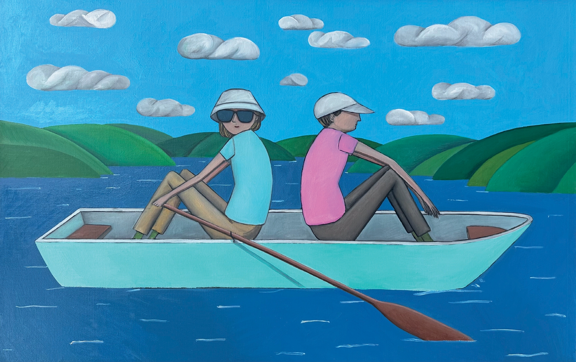 - Coppia su barca a remi , 2024, olio su tela, 120×90