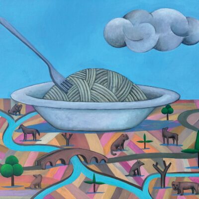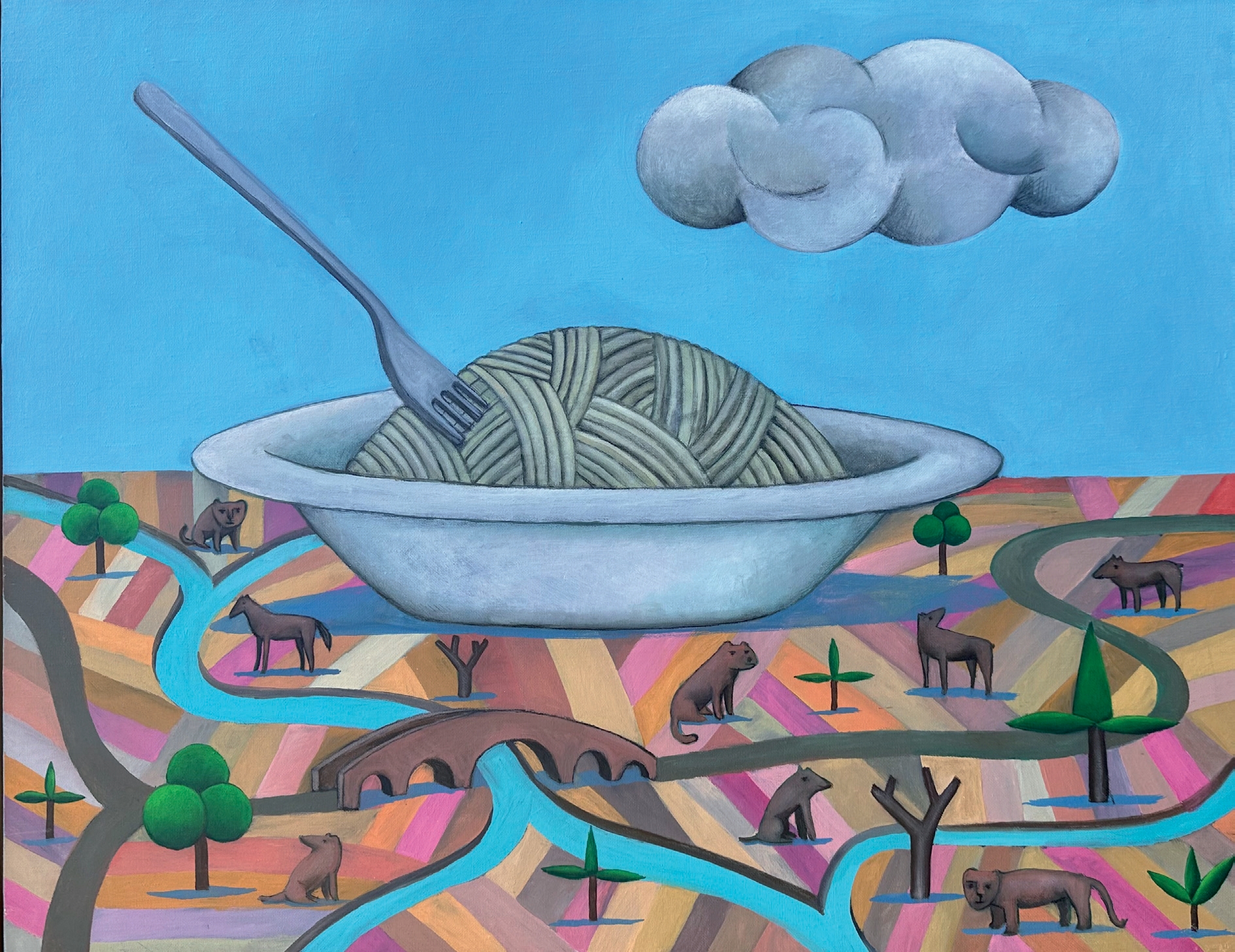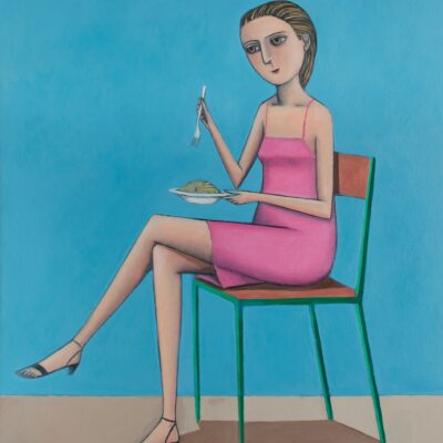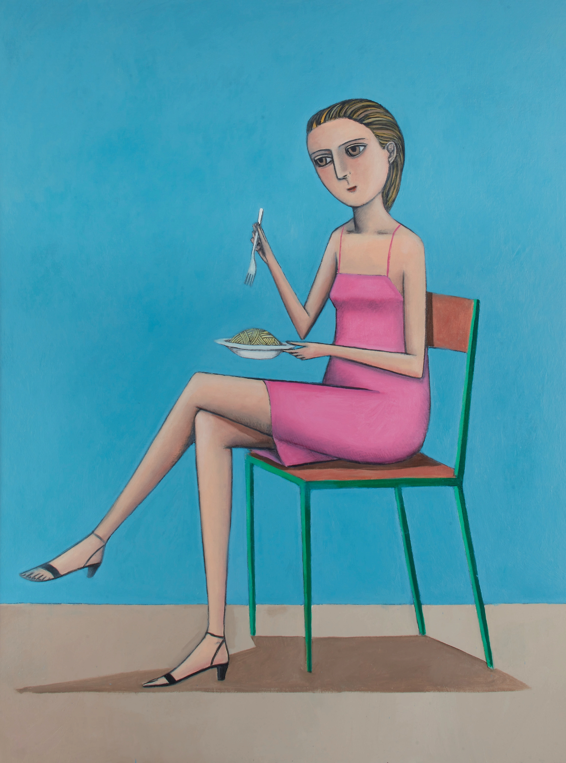 - Donna con spaghetti, 2024, !20×90, olio su tela