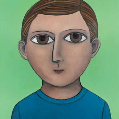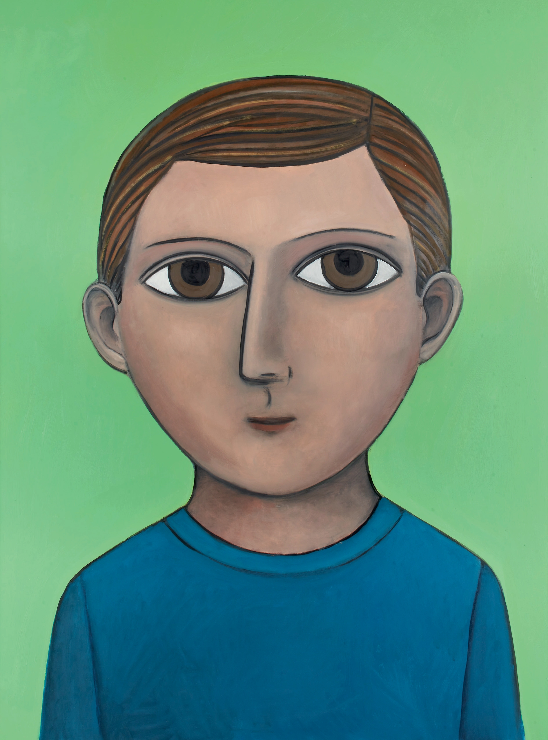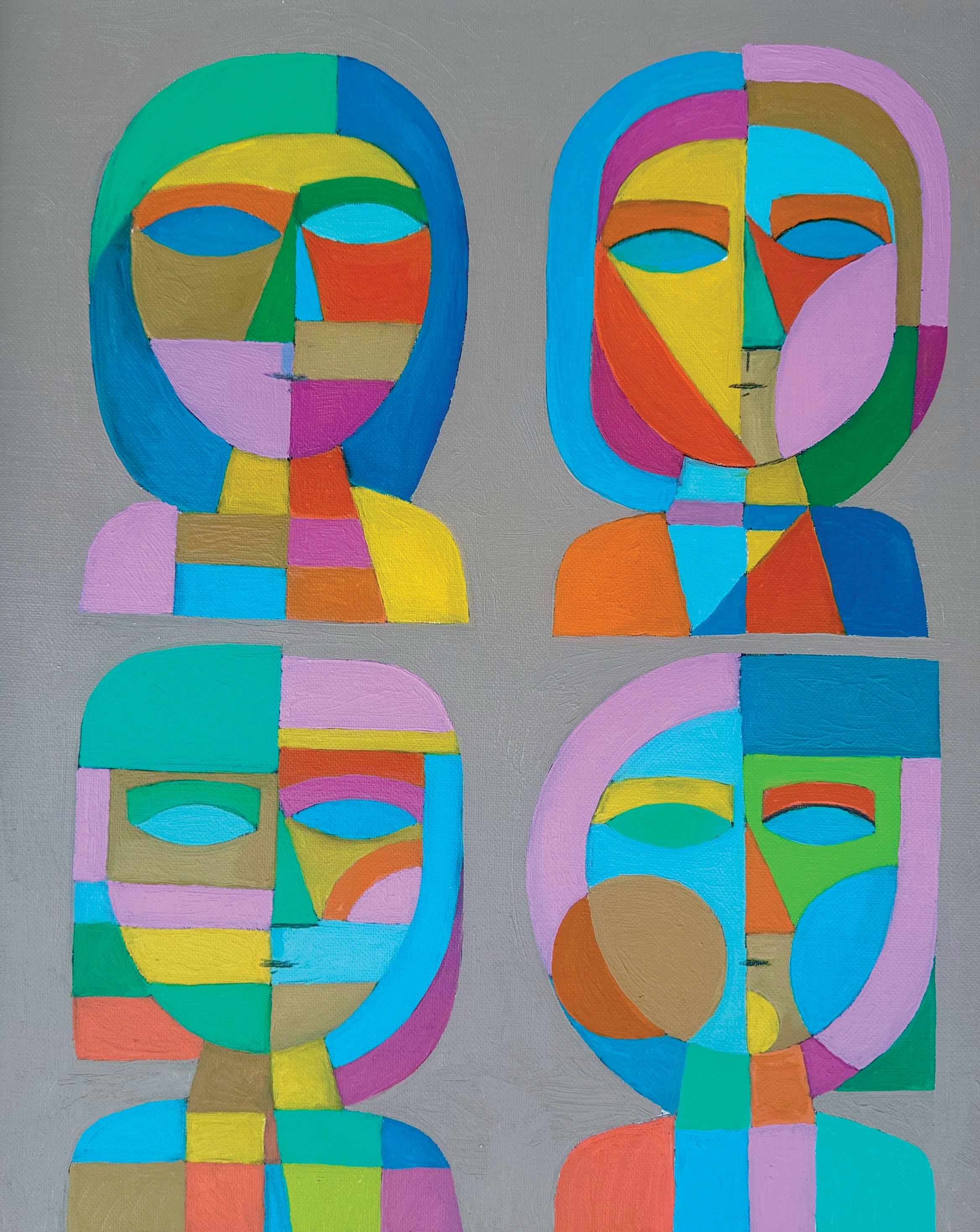 - Facce colorate (ocra), 2024, olio su tela, 50×40