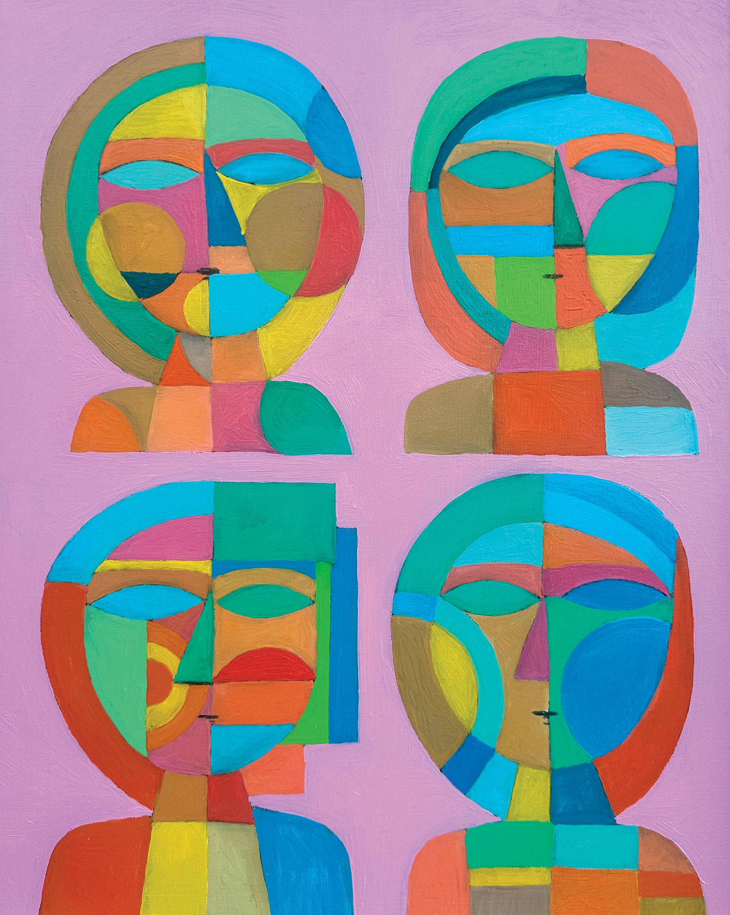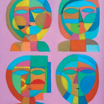 - Facce colorate (rosa), 2024, oilo su tela, 50×40