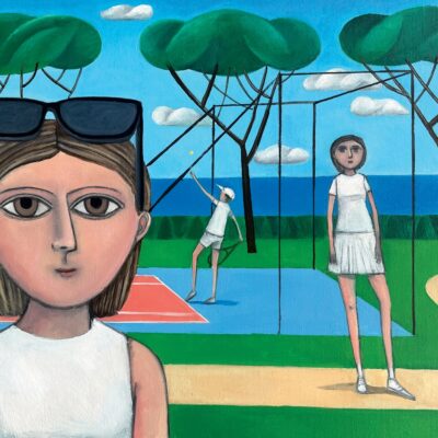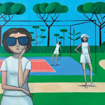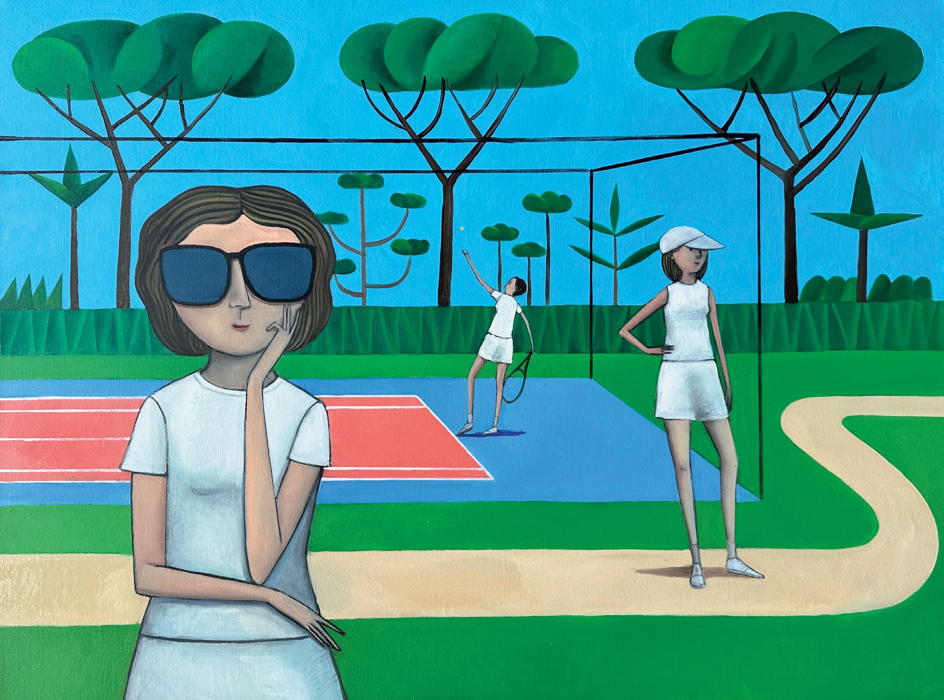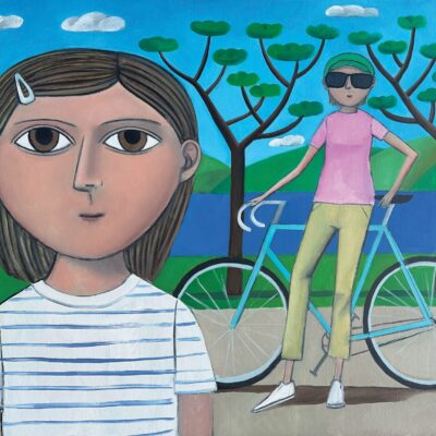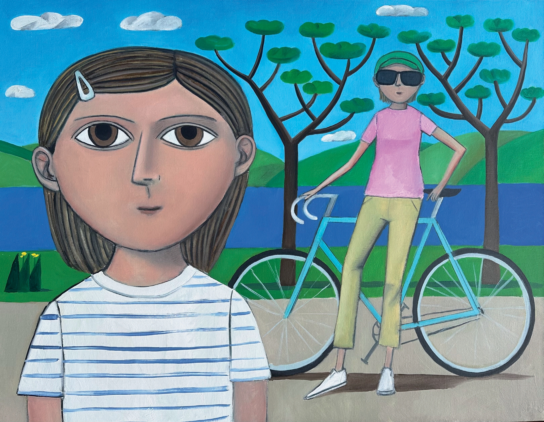 - In bici lungo il fiume, 2025 olio su tela, 90×70