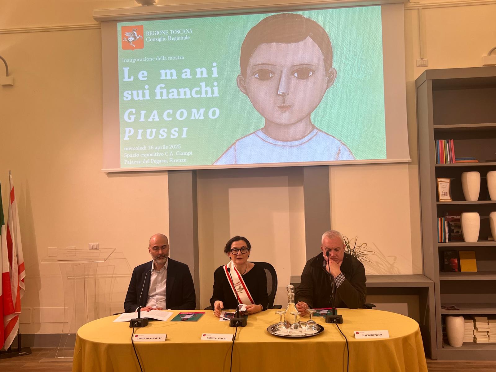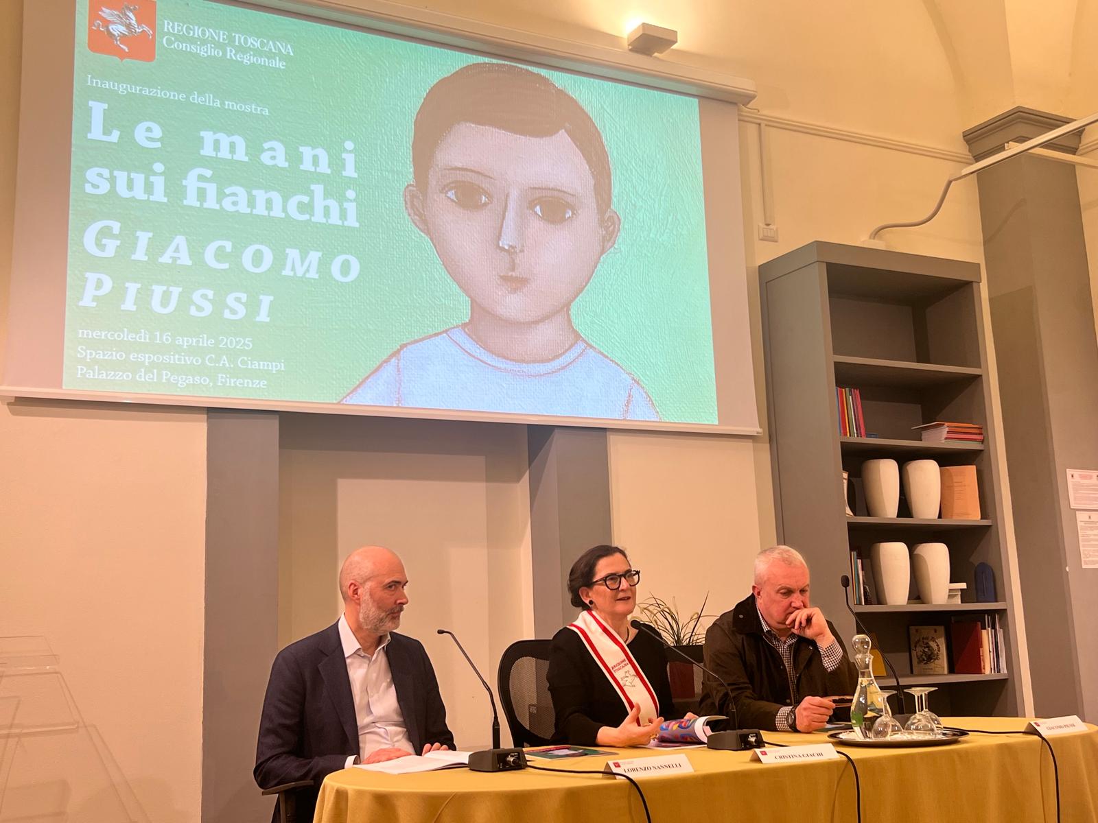 Al taglio del nastro al Centro Expo di palazzo del Pegaso, la presidente della commissione Cultura del Consiglio regionale Cristina Giachi: “Piussi ci regala una pittura fresca, piena di sguardi. Gli occhi al centro dei suoi quadri mi hanno colpito moltissimo. Attraverso le sue opere non solo guarda il mondo ma ci fa comprendere, proprio attraverso gli occhi delle sue figure, chi siamo” ha dichiarato aggiungendo: “Nei colori delle tele, pieni e mai inutilmente allegri, troviamo una pienezza profonda che ci rallegra. C’è tanta umanità e suggestione in queste opere che abbiamo il piacere di ospitare” ha concluso.