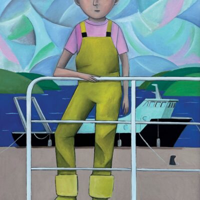 - Pescatore con ringhiera, 2025, olio su tela, 120×90