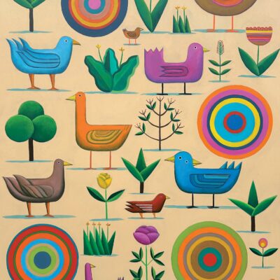 - Uccelli con cerchi colorati, 2023 olio su tela, 120×90