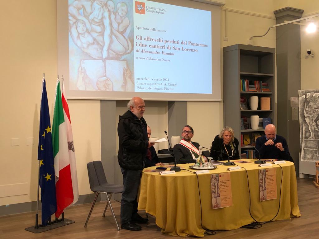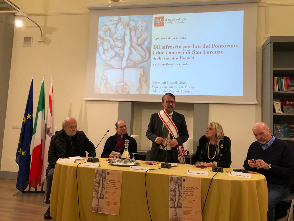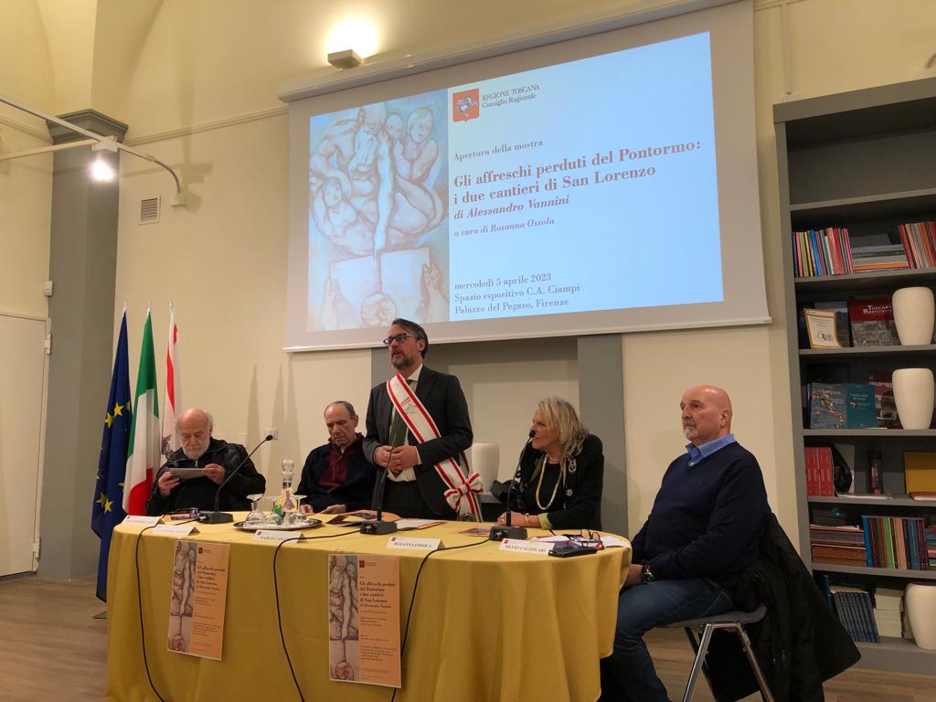 A tagliare il nastro, il vicepresidente dell’Assemblea legislativa toscana Marco Casucci: “Questa esposizione celebra il grande lavoro di ricerca e ricostruzione di Alessandro Vannini che ha fatto rivivere gli affreschi perduti del Pontormo. È necessario ricordare questa pagina che è stata scritta da uno degli artisti più inquieti, più bizzarri, ma anche più geniali. Noi siamo qui con l’esigenza di recuperare, l’affresco si fa, l’affresco si distrugge, l’affresco si recupera. Per questa opera meritoria, volta a recuperare il passato con l’esigenza anche di guardare all’oggi, noi come Ufficio di presidenza non possiamo che dire un enorme grazie all’artista”.