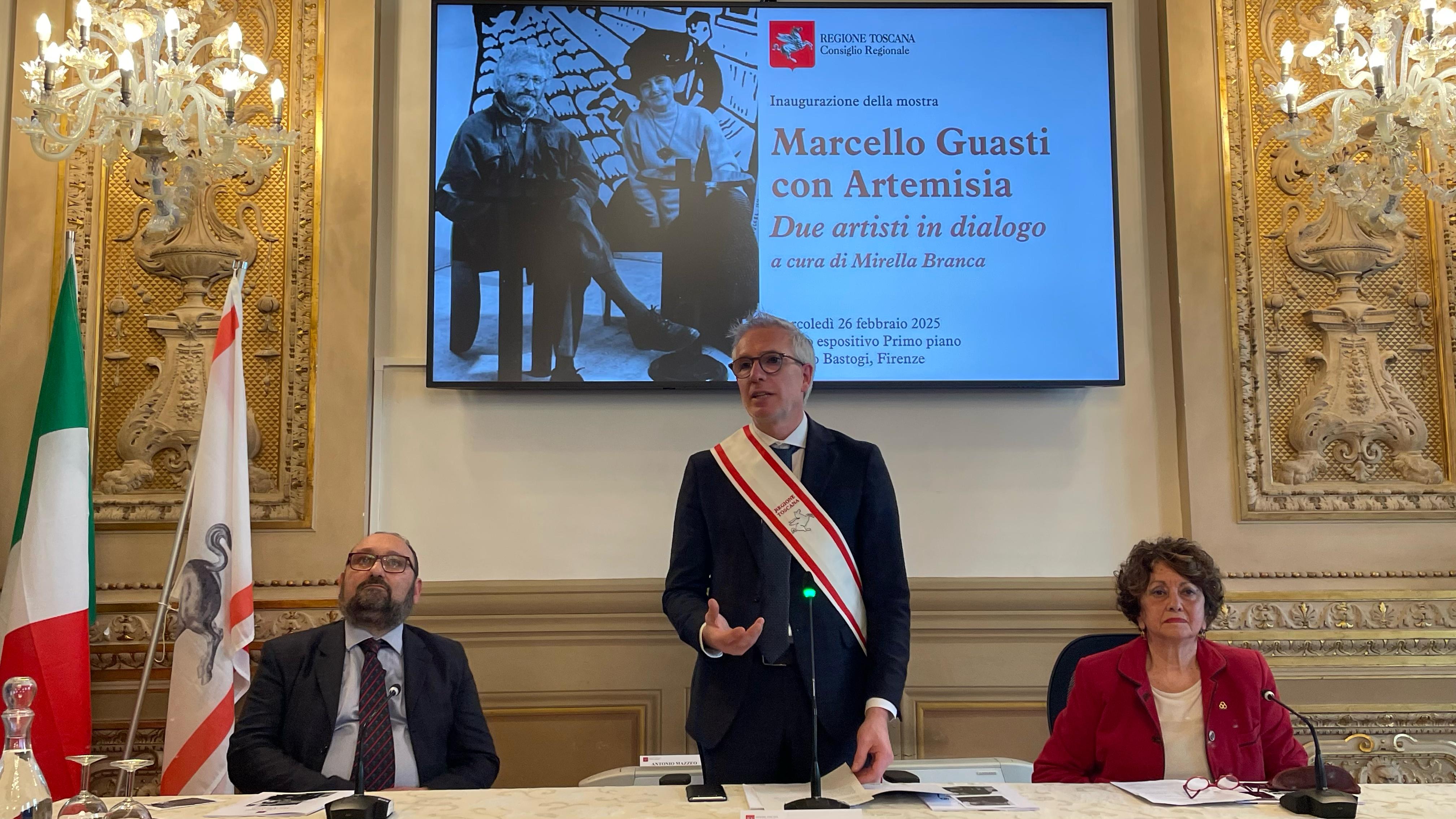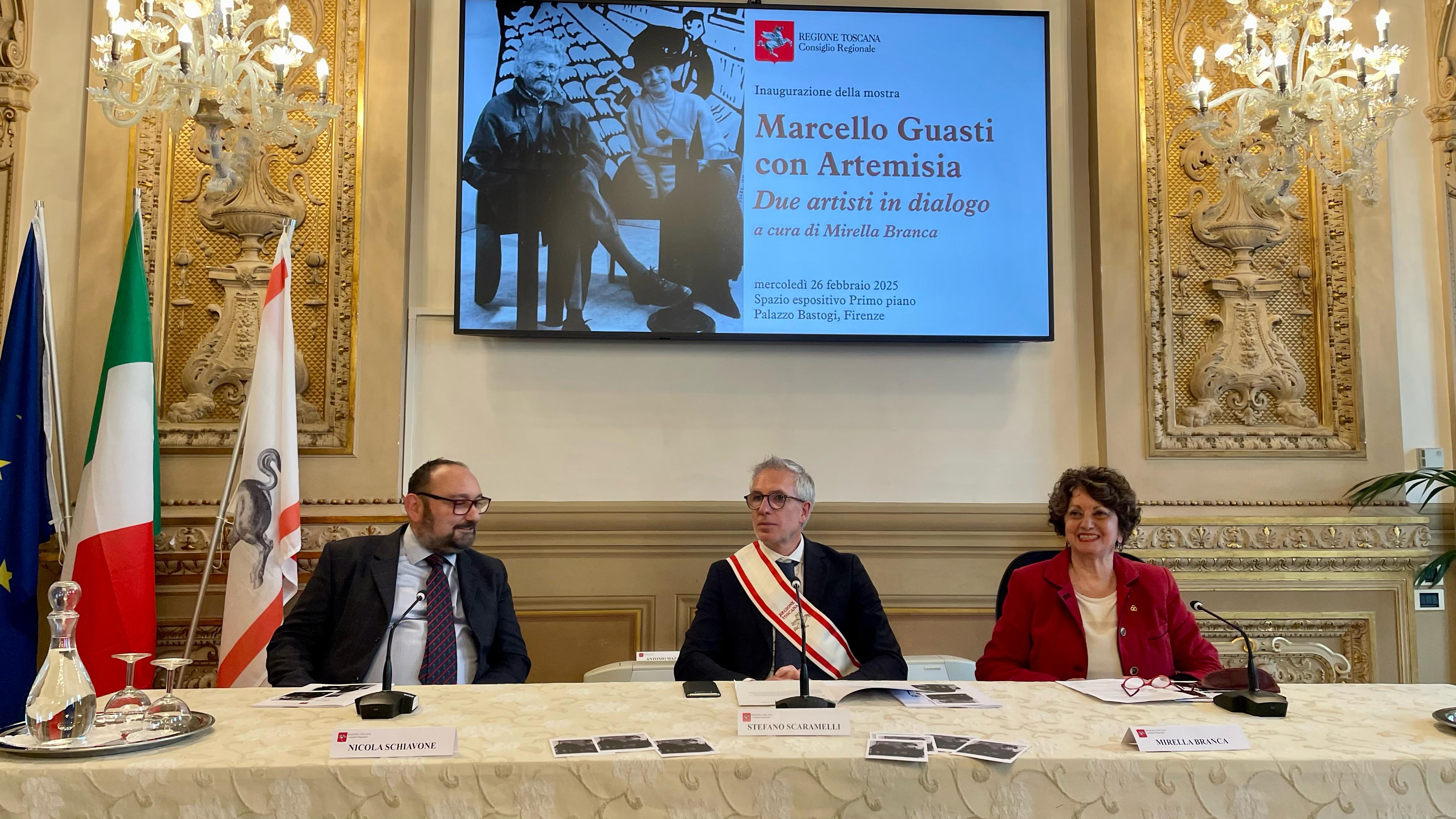“Questa mostra rappresenta non solo un contributo dovuto a due grandi artisti quali sono stati Marcello Guasti e Artemisia Viscoli – scrive in catalogo Antonio Mazzeo presidente del Consiglio regionale – ma anche un’adeguata rappresentazione di uno dei tratti caratteristici del contributo della Toscana alla vita culturale e artistica del nostro Paese. La Toscana infatti soprattutto nel secolo scorso si è distinta come luogo privilegiato di discussione e di dialogo intorno all’arte e alla cultura. La loro Casa di Terzano, nella campagna di Bagno a Ripoli, da cui provengono molte delle opere esposte in questa mostra, è stata punto di incontro per artisti e intellettuali.”