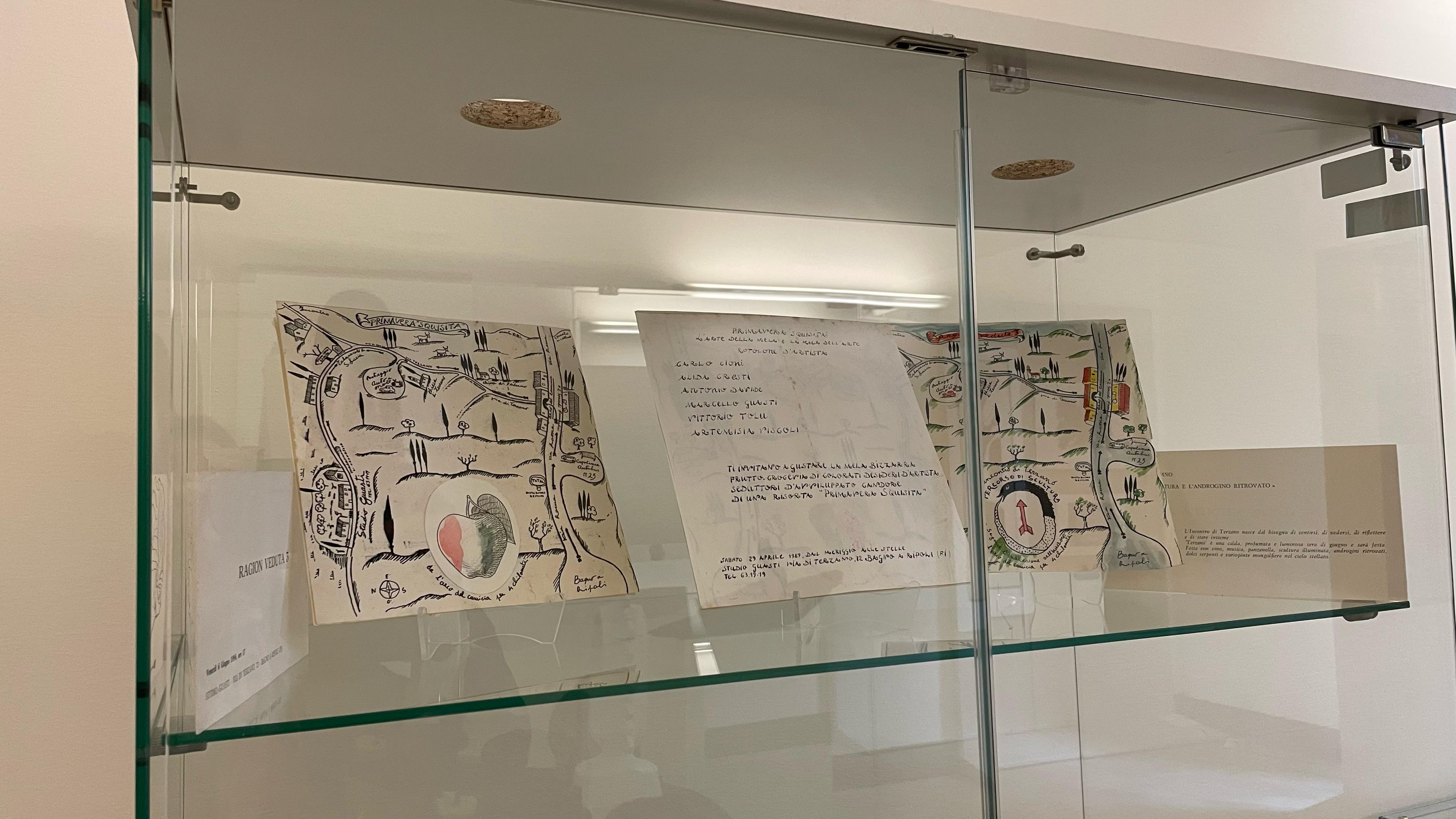 Sono esposte circa quaranta opere in parte inedite provenienti dalla collezione di famiglia – dipinti, sculture, xilografie, libri d’artista- selezionate in un confronto costante con la storica dell’arte Mirella Branca, che ha conosciuto personalmente i due artisti. La mostra, che nasce dalla volontà delle famiglie dei due artisti- particolarmente di uno dei figli di Artemisia Viscoli, testimone della svolta personale della madre nell’incontro con lo scultore- è incentrata per Artemisia sulle esperienze plastiche e sulla realizzazione di libri d’artista, per Guasti sull’opera xilografica e su sculture di piccolo formato, progetti per le opere monumentali da lui realizzate in Toscana nella fase matura della sua attività. In area fiorentina, ne è un esempio la scultura-fontana Terra-Aria-Acqua-Fuoco all’ingresso autostradale Firenze-Certosa (1990-95). Accompagnano il percorso, video con interviste ai due artisti e riprese dentro la casa e nel giardino di Terzano.