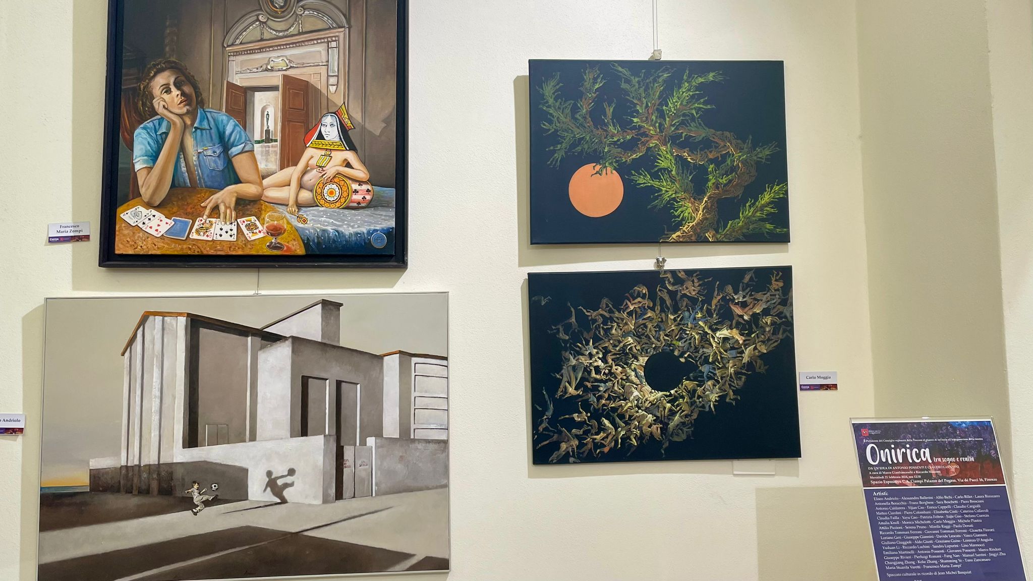 “La prima mostra dedicata al sogno e voluta da Antonio Possenti – ci ha detto l’organizzatore Claudio Giannini – è stata realizzata a Lucca ottenendo un grosso successo. In questa mostra ci sono molti quadri che lavorano su unico tono cromatico e ci portano all’interno di un mondo complesso e raffinato. La prossima tappa della mostra dovrebbe essere Roma, altra città che racchiude infinite suggestioni.”