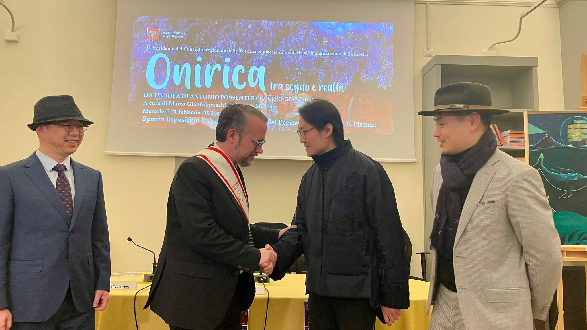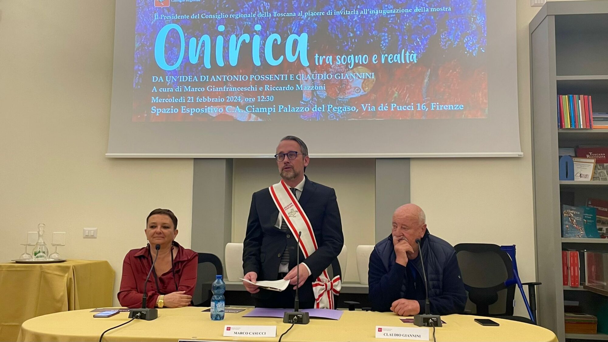Firenze – “Onirica tra sogno e realtà”, questo il titolo della mostra che è stata inaugurata a palazzo del Pegaso presso lo spazio espositivo ‘Carlo Azeglio Ciampi’. L’esposizione, curata da Marco Gianfranceschi e Riccardo Mazzoni, nasce da un’idea di Antonio Possenti e Claudio Giannini. È intervenuto il vicepresidente del Consiglio regionale, Marco Casucci, con l’organizzatore Claudio Giannini. La mostra collettiva resterà aperta al pubblico fino al 3 marzo.