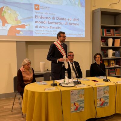 Firenze – Inaugurata con successo in Consiglio regionale dal presidente Antonio Mazzeo e dal consigliere regionale Maurizio Sguanci l’interessante mostra di Arturo Bartolini che compie un viaggio nel mondo dell’inferno dantesco. Arturo Bartolini è nato nel 2003, si è diplomato brillantemente nel 2022 presso il Liceo Artistico Virgilio di Empoli, attualmente frequenta il corso triennale di Illustrazione Pittorica presso l’Accademia The Sign di Firenze.