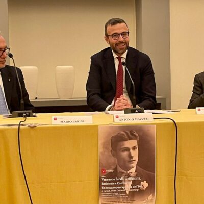 Firenze – Nella ricorrenza degli ottant’anni dalla liberazione di molte città e borghi toscani, nello Spazio espositivo Carlo Azeglio Ciampi di palazzo del Pegaso (Firenze, via de’ Pucci 16) si apre la mostra documentaria “Vannuccio Faralli, antifascista, resistente e costituente. Un toscano protagonista del ‘900”, che ha lo scopo di valorizzare e diffondere il ricordo del militante e politico nato a Cortona nel 1891 e scomparso a Genova nel 1969. L’inaugurazione questa mattina (mercoledì 24 gennaio) alla presenza del presidente del Consiglio regionale della Toscana Antonio Mazzeo, del consigliere regionale Vincenzo Ceccarelli, del presidente della sezione ANPI di Cortona Emanuele Rachini, del presidente della Fondazione Circolo Fratelli Rosselli Valdo Spini e dei curatori della mostra Alvaro Ceccarelli e Mario Parigi.