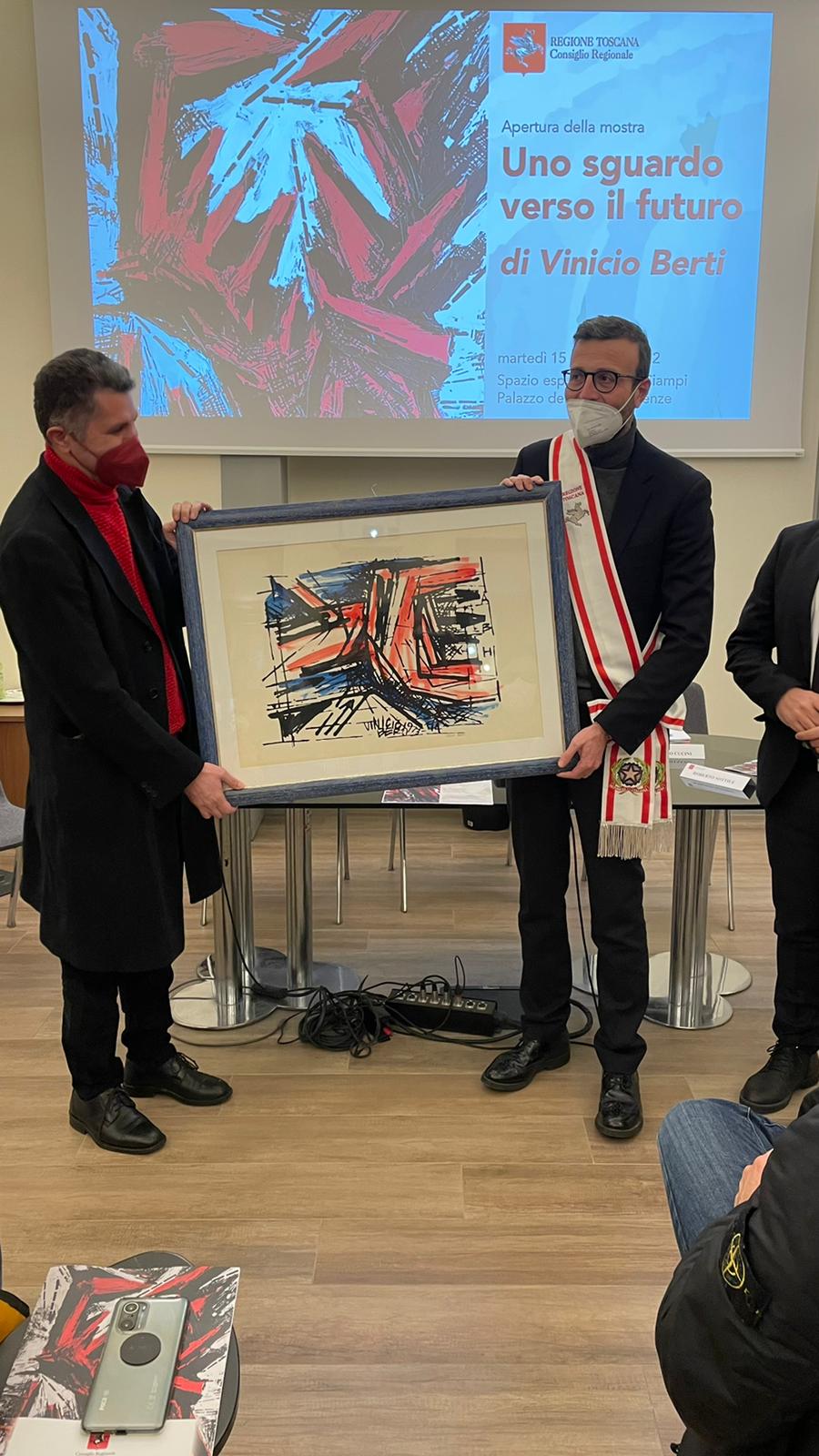 Firenze – “Ancora una volta il nostro Palazzo si apre alla cultura, all’arte, alle espressioni del pensiero che ci ha regalato il ‘900, nella pittura, nella scultura e non solo”. Così il presidente del Consiglio regionale, Antonio Mazzeo, ha inaugurato la mostra ‘Uno sguardo verso il futuro’, ricordo di Vinicio Berti a trenta anni dalla scomparsa. “Le sale dello Spazio espositivo intitolato a Ciampi – ha continuato – accolgono un’esposizione suggestiva. Vinicio Berti voleva essere un innovatore e ci è riuscito pienamente. Le sue tele trasmettono forza ed espressività. Sono orgoglioso che il Consiglio regionale possa ospitare questa mostra. Berti è uno dei più significativi artisti del secolo scorso. Un anticipatore dei tempi. Il suo passaggio ha lasciato un segno. Ci sembra giusto che si ‘recuperi’ un’attenzione e un riconoscimento che Firenze e la Toscana hanno tardato a tributargli mentre l’artista era in vita. A maggior ragione, in questo tempo che faticosamente lascia alle spalle la terribile pandemia, questa mostra rappresenta una riacquistata centralità della dimensione ‘spirituale’ che si è smarrita nei mesi trascorsi. Voglio ringraziare l’Archivio Vinicio Berti che ha organizzato la mostra, che è già stata ospitata nel Palazzo Pretorio a Certaldo“ ha concluso il presidente.