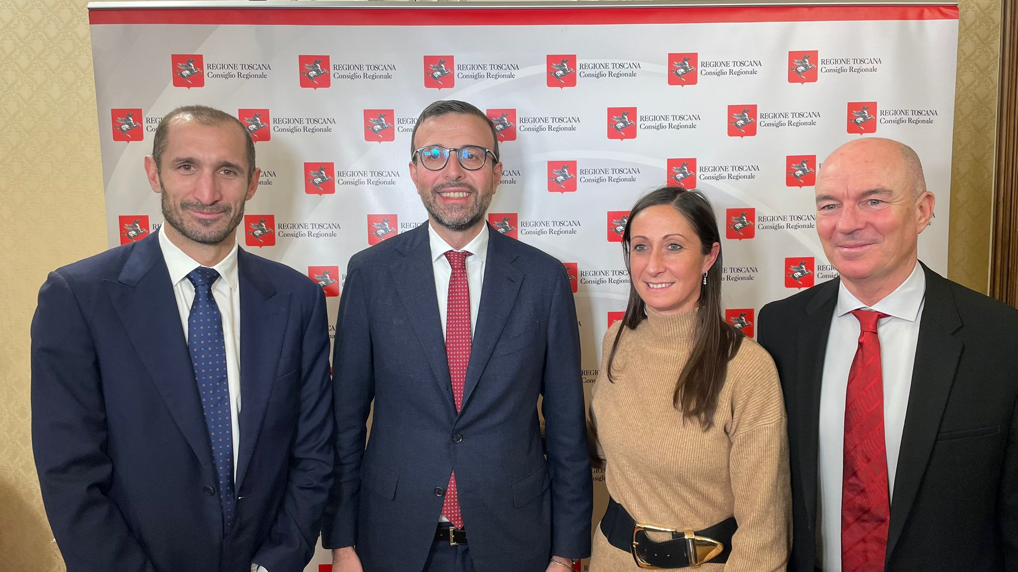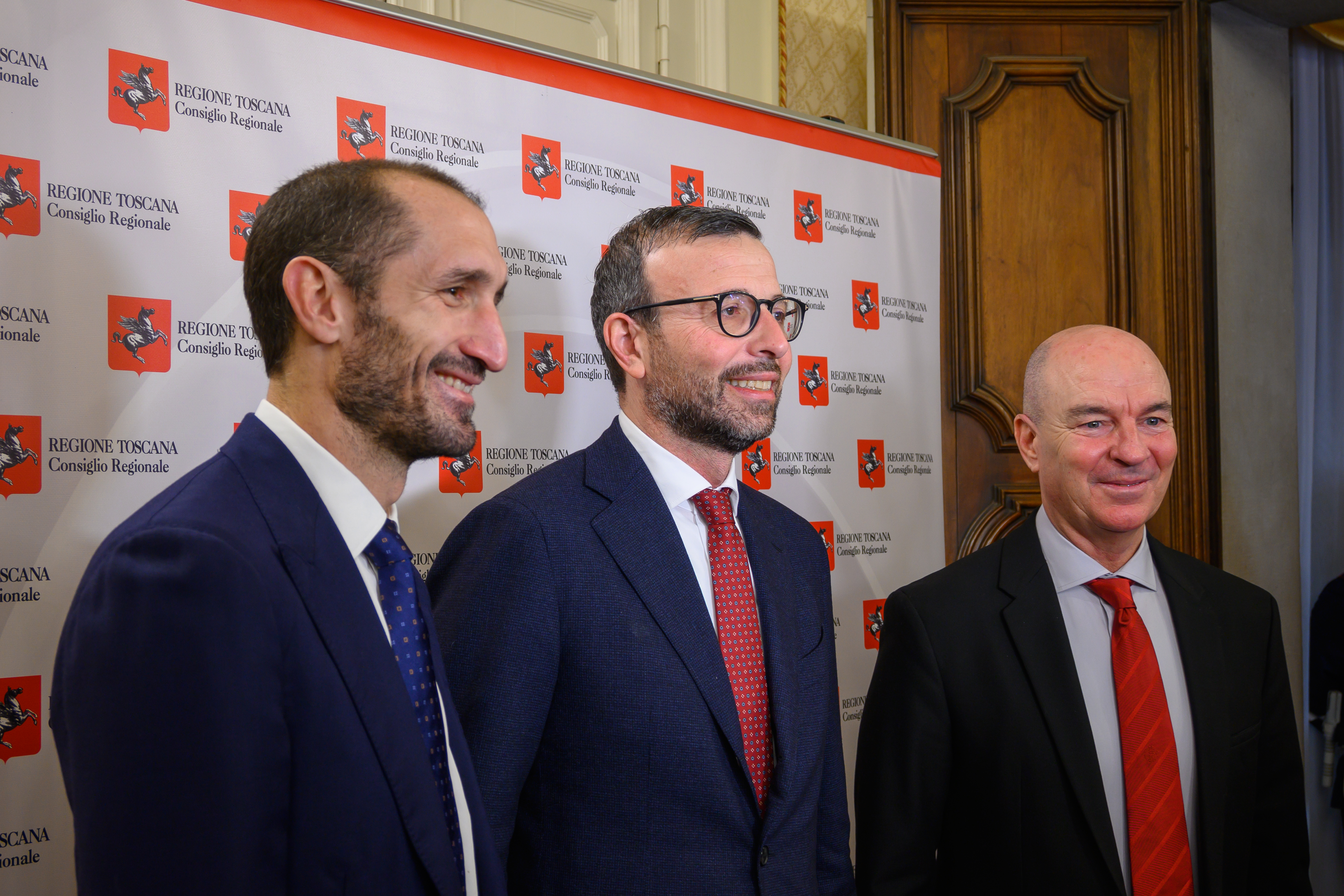 Firenze – Il presidente del Consiglio regionale, Antonio Mazzeo, ha consegnato il Gonfalone d’argento, la più alta onorificenza dell’Assemblea legislativa toscana, a Giorgio Chiellini, che ha annunciato il ritiro dal calcio giocato il 12 dicembre scorso. La cerimonia si è svolta nella sala delle Cerimonie del Comune di Livorno. Chiellini da capitano della nazionale italiana ha contribuito alla conquista del Campionato Europeo 2021, oltre ai nove scudetti vinti con la maglia della Juventus. Il riconoscimento è stato deciso dall’Ufficio di presidenza e conferito “per essere un esempio e un modello per tante ragazze e tanti ragazzi che si avvicinano al mondo del calcio”.