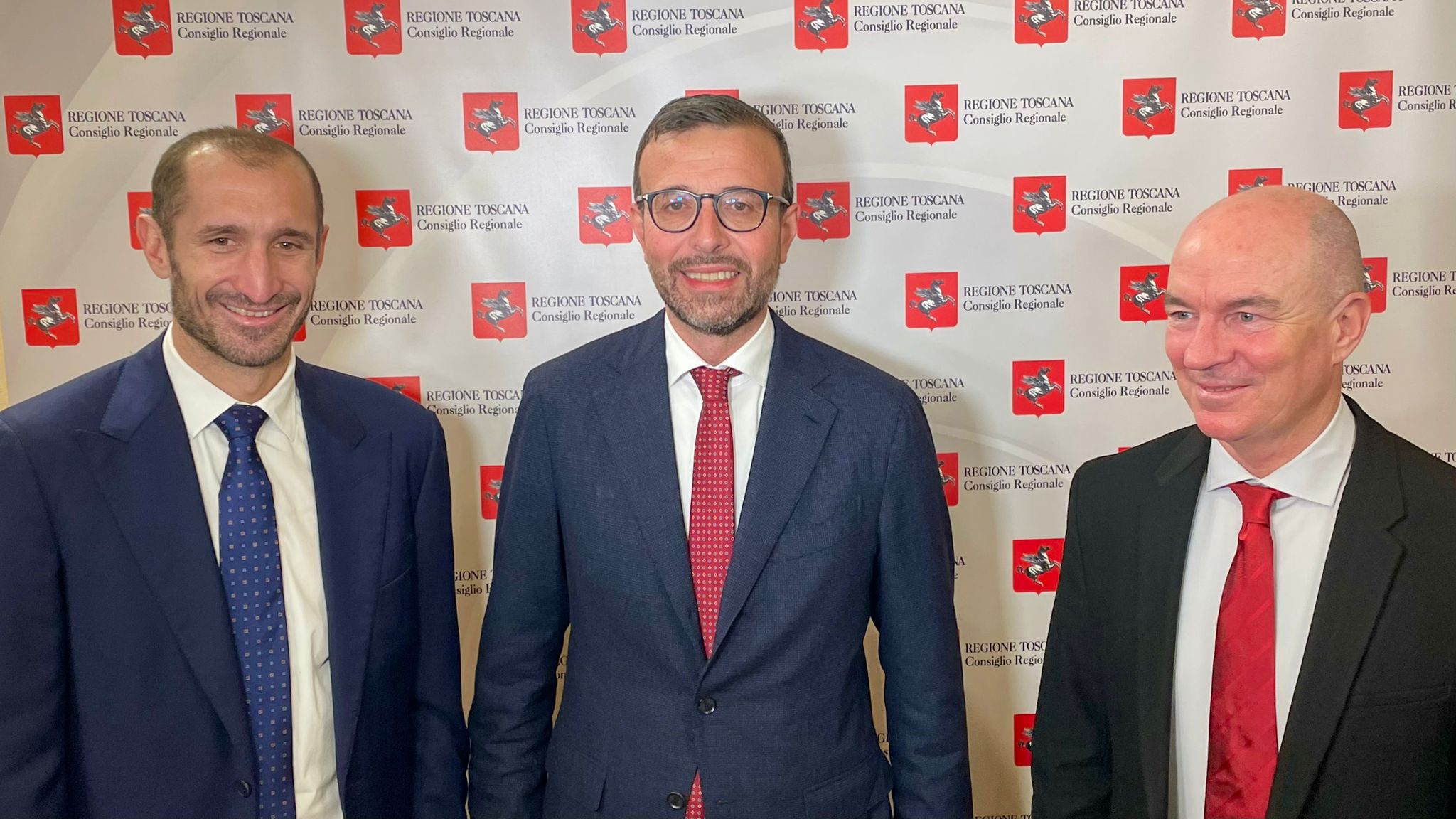“Giorgio Chiellini – ha raccontato il presidente Mazzeo – è un esempio e un modello dentro e fuori dal campo. È stato il capitano della nostra Nazionale, ha iniziato a giocare a Livorno, poi ha vestito la maglia della Fiorentina e per tanti anni è stato bandiera e capitano della Juventus. È un esempio per tante ragazze e tanti ragazzi che si avvicinano al mondo dello sport. Un campione che ha portato il nome della Toscana in alto in Italia e nel mondo e ha coronato una carriera così importante alzando la coppa dei campionati Europei a Wembley. Noi abbiamo voluto dargli questo riconoscimento per ringraziarlo, e per chiedergli di continuare a portare in alto il nome della Toscana nel mondo”.