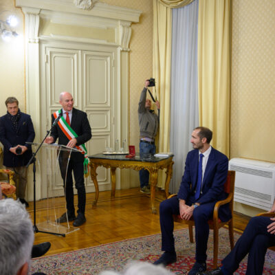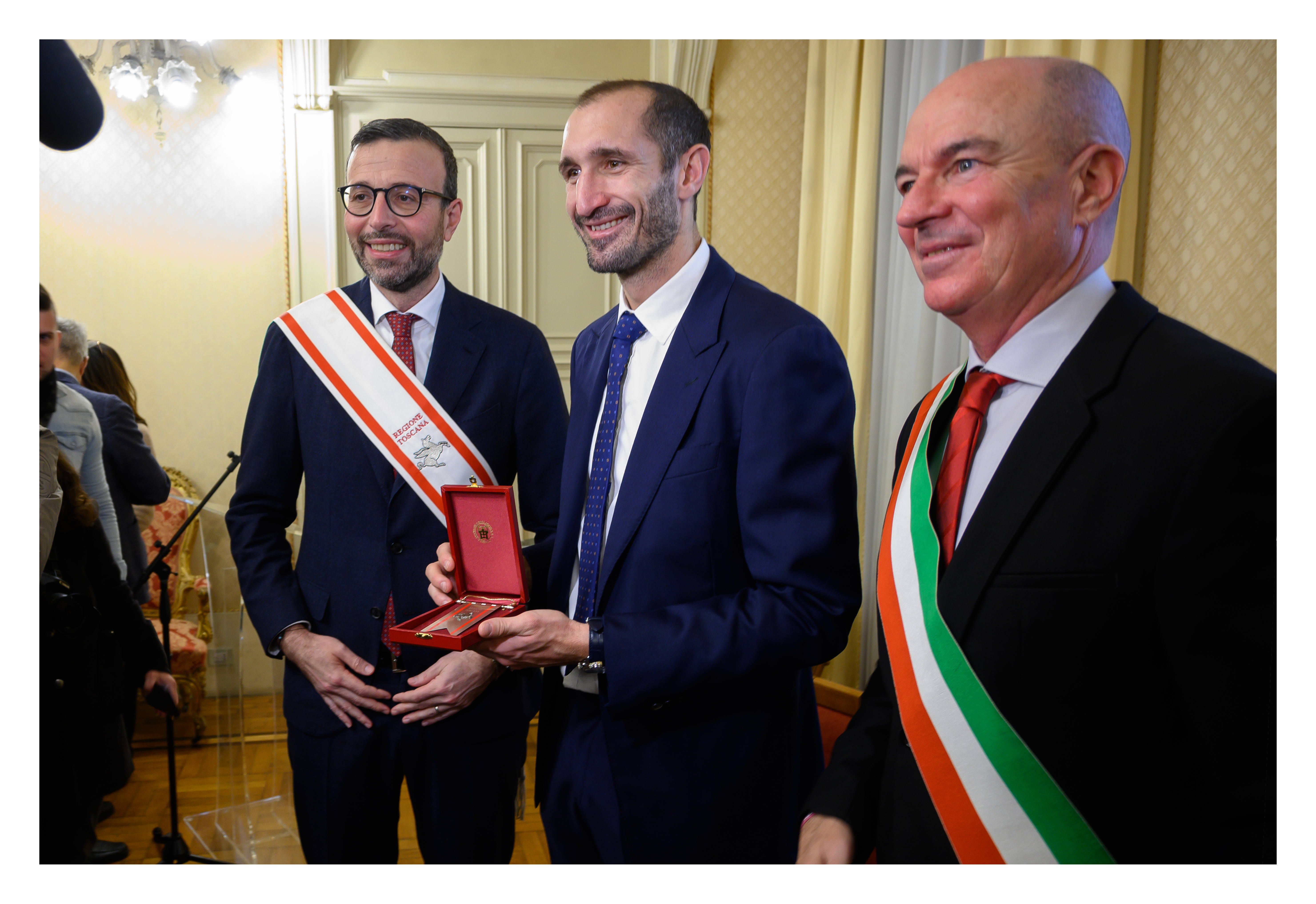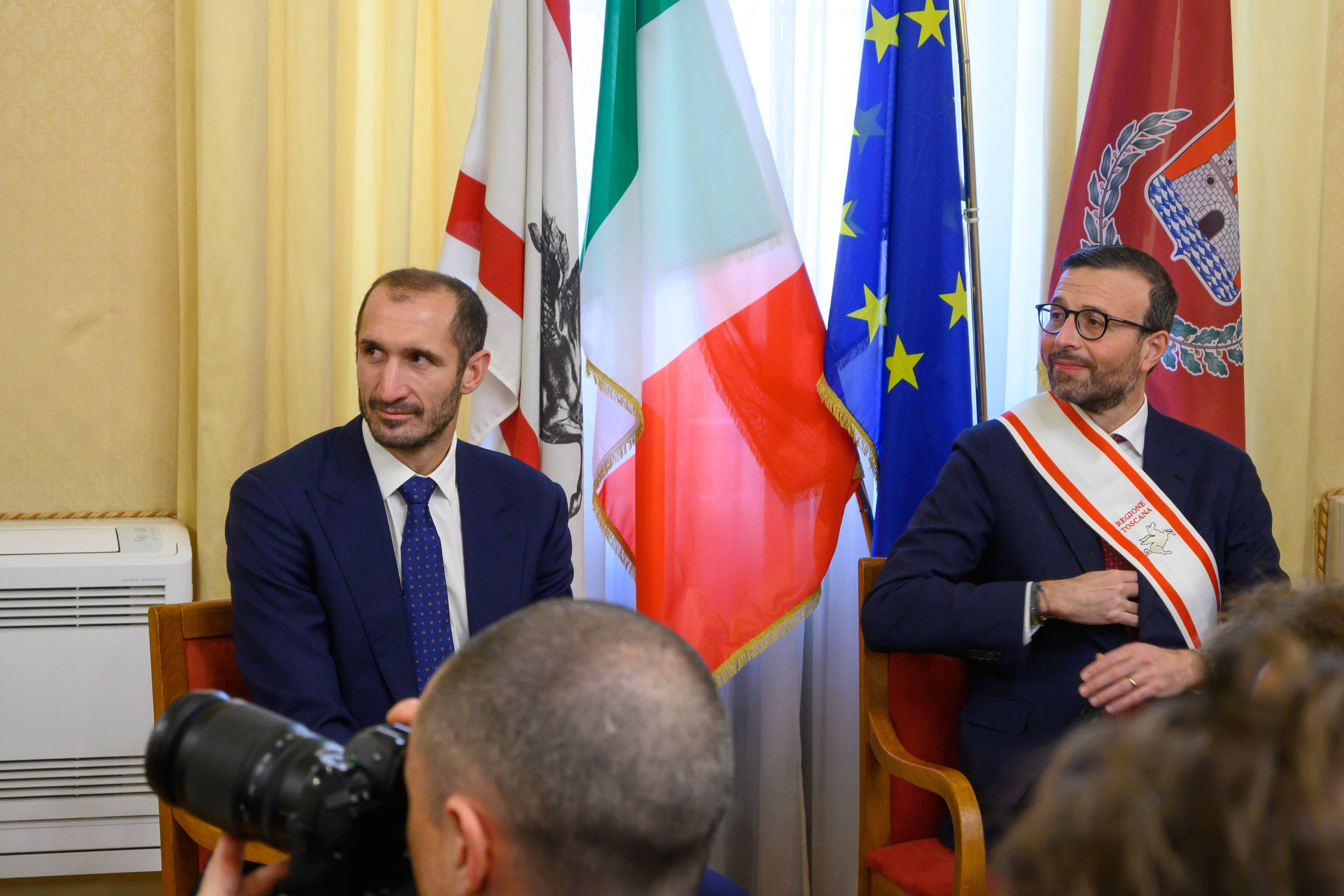 A fare gli onori di casa il sindaco della città Luca Salvetti: “Noi lo abbiamo omaggiato dopo la vittoria dei campionati Europei e oggi siamo felici che venga premiato nella sede del Comune su iniziativa del Consiglio regionale. Giorgio è cresciuto calcisticamente a Livorno e questo premio dà lustro alla nostra città. Ha contribuito alla scalata della squadra fino ai vertici del calcio italiano e ha sempre ricordato Livorno durante la sua luminosa carriera. Torna spesso qui dove fa tante cose belle per la nostra realtà”.