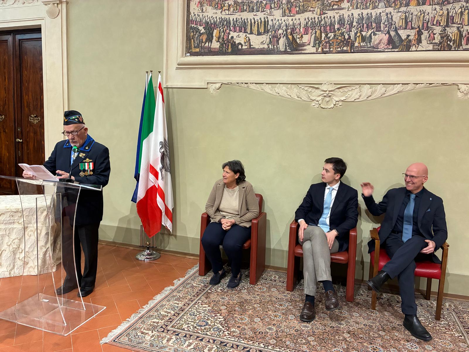“Per me – ha raccontato Franco Isola – è un grande onore e una grande emozione essere qua. Sono grato alla Regione Toscana che mi ha dato questo riconoscimento. È una targa che conserverò come una ciliegina sulla torta di tutti i riconoscimenti che ho avuto. Di quel 26 ottobre del 1954 ricordo alcune cose. Lungo il percorso, man mano che ci si avvicinava a Trieste, c’erano due ali di folla ai bordi della strada che applaudivano il nostro passaggio gridando di gioia e c’erano alcuni ritardatari che scendevano dalle loro abitazioni ancora in pigiama o camicia da notte nonostante fosse una giornata fredda e piovosa. L’intera città era coperta da bandiere tricolore e il popolo festante che si accalcava tutto intorno alle nostre forze armate, cercava di abbracciare i militari e persino di strappare loro le decorazioni e le mostrine come oggi si usa fare con i cantanti e i giocatori famosi. C’era grande entusiasmo e un’atmosfera unica e questo è veramente un bellissimo ricordo”.