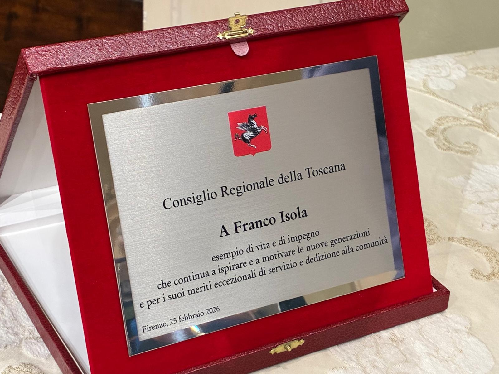 Il riconoscimento dell’Assemblea legislativa proposto dai consiglieri del Partito democratico Bernard Dika e Vittorio Salotti è andato all’autiere originario di Capannori (Lucca) come esempio di vita e di impegno che continua a ispirare e a motivare le giovani generazioni per i suoi meriti eccezionali di servizio e dedizione alla comunità.
