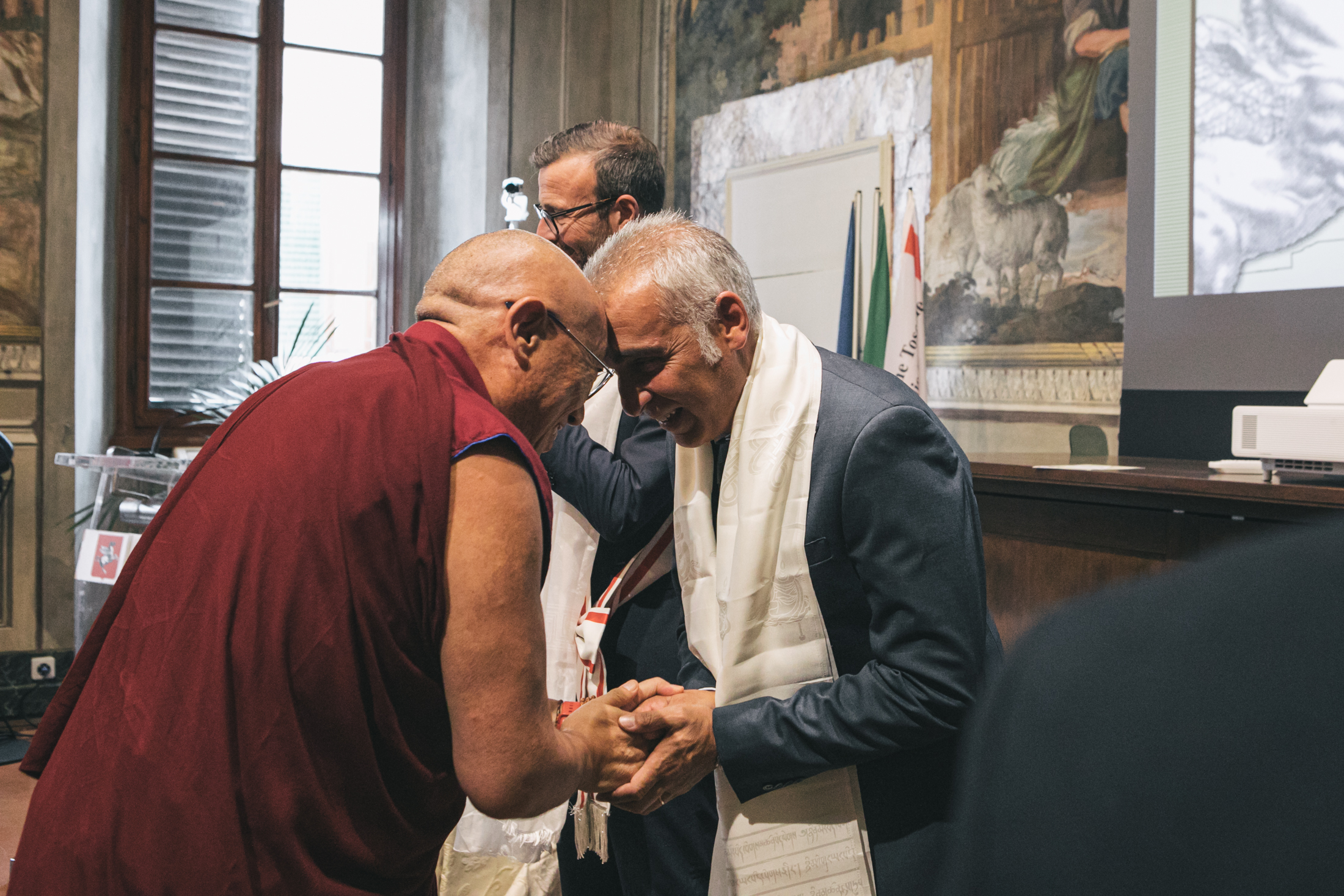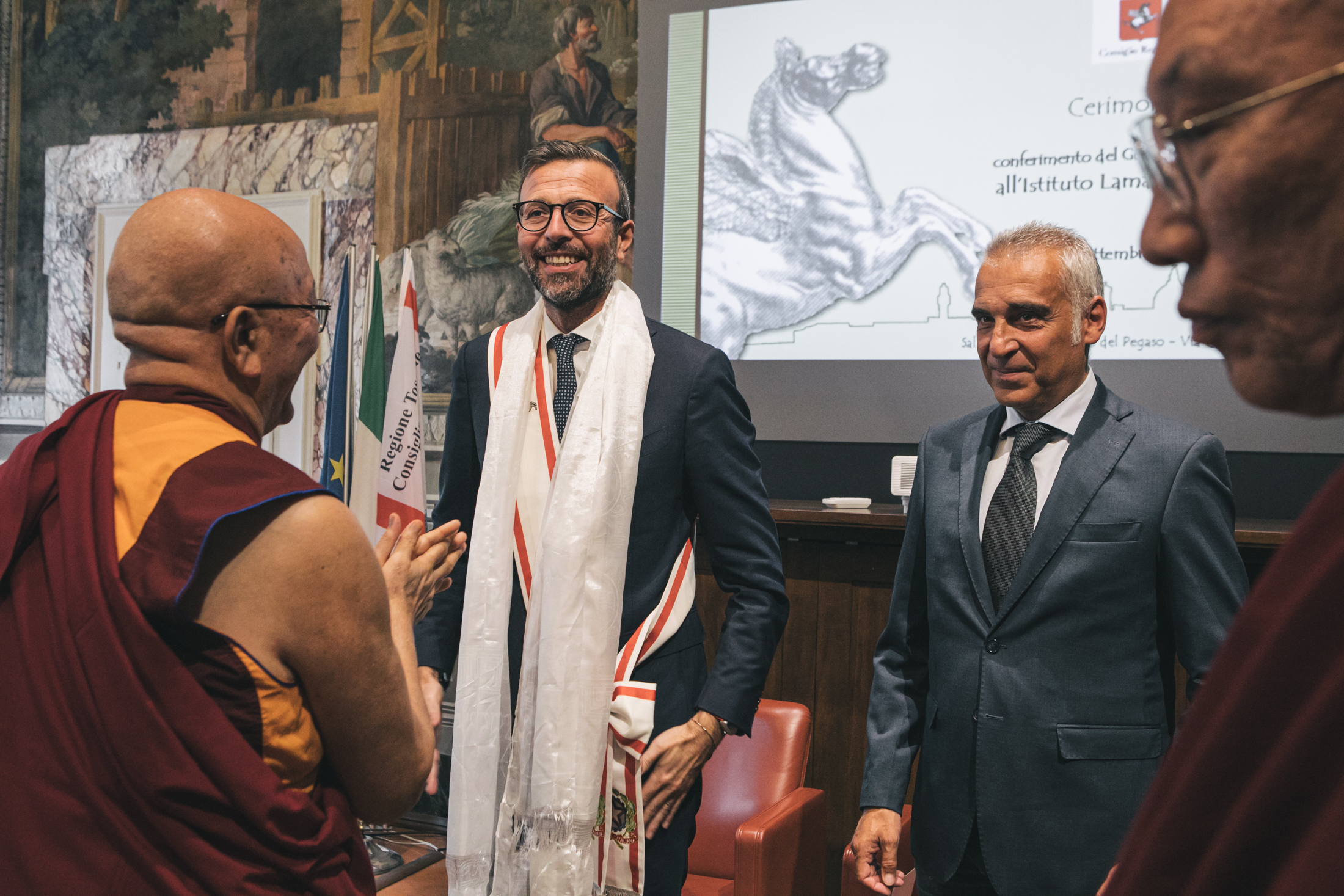 Poi parlando dell’Istituto Lama Tzong Khapa di Pomaia ha evidenziato come “il centro abbia svolto in questi anni un grande lavoro di accoglienza, di inclusione, in grado di parlare anche a chi professa fedi differenti. In un mondo di guerra come quello in cui stiamo vivendo ora, c’è bisogno di luoghi di pace e in cui costruire pace, e l’Istituto di Pomaia in questo ha un ruolo fondamentale. In questi anni abbiamo lavorato tanto insieme, facendo buona politica. Perché non era scontato in pochi anni riuscire a trasformare un’idea in un progetto e poi in una realtà, quella della realizzazione del primo monastero buddista in Italia. Un obiettivo raggiunto grazie al lavoro dell’amministrazione comunale e della Regione, un lavoro di squadra. Il riconoscimento di oggi è un modo per dirvi grazie. Non è un punto di arrivo, ma di partenza, per arrivare alla realizzazione del monastero. Il nuovo monastero sarà una luce per tutta la Toscana, per chi crede e chi non crede, e noi siamo al vostro fianco senza distinzione di colore politico”.