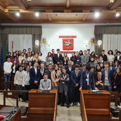 Firenze – Seduta di insediamento, questa mattina, per il Parlamento regionale degli studenti della Toscana. Il Parlamento ha iniziato la sua attività in coincidenza con la celebrazione della Giornata per l’eliminazione della violenza contro le donne, e per questo in aula campeggiava un paio di scarpe rosse, il simbolo della lotta per i diritti delle donne e contro la violenza di genere, posto sopra la bandiera italiana e quella europea. Ad aprire la seduta con i suoi saluti il presidente del Consiglio regionale della toscana Antonio Mazzeo, presente assieme ai consiglieri Francesco Gazzetti e Diego Petrucci.