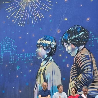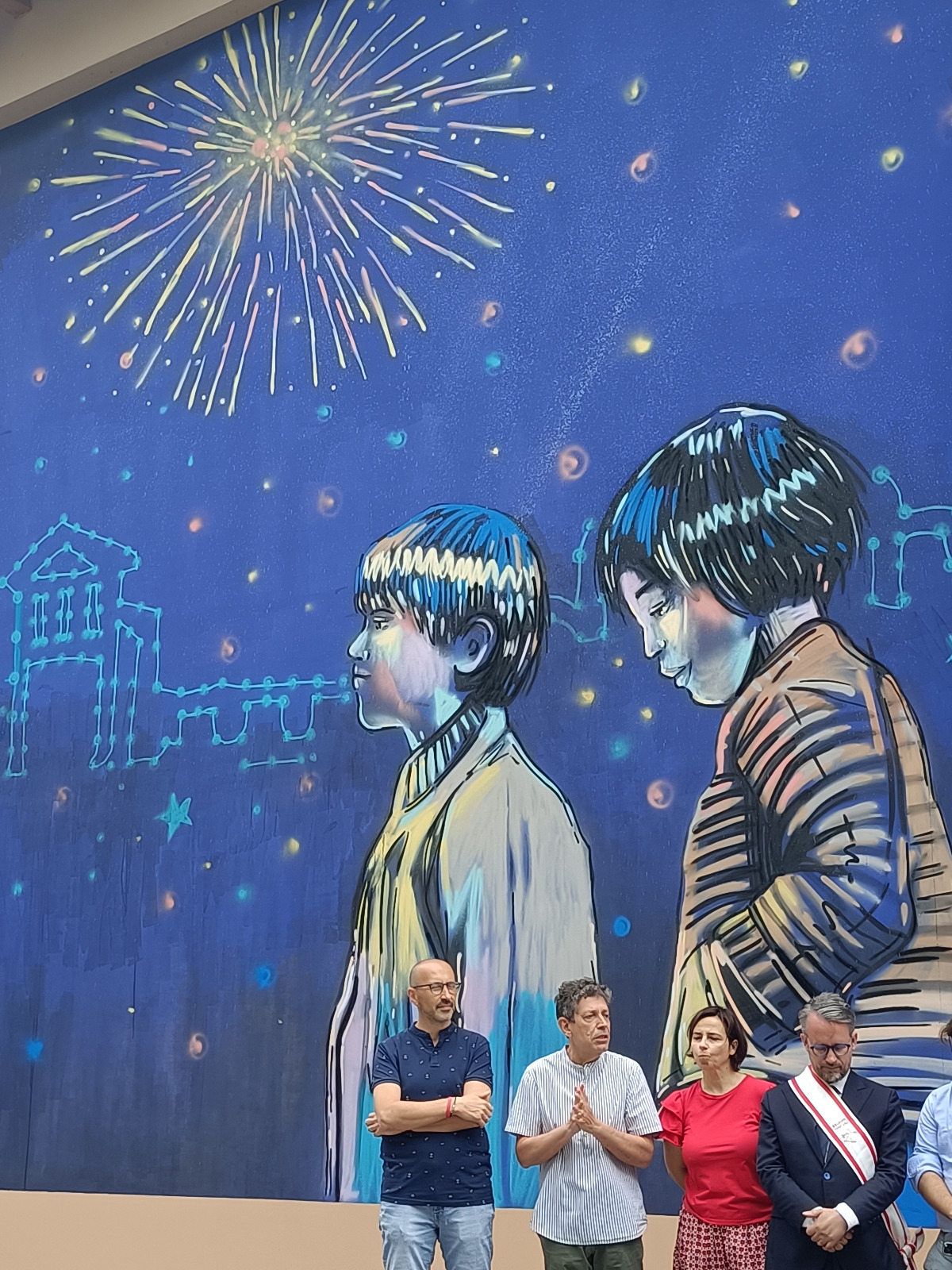 “Il mio plauso sincero all’artista Alice Pasquini che riesce a coniugare più esigenze – ha continuato Casucci – Da una parte quella di riqualificazione di questo luogo, attraverso la scelta dei ragazzi che trae spunto dalla celebrazione della Festa dei lumi, particolarmente sentita qui a Pieve Santo Stefano. Dall’altra l’opera ben rappresenta lo stupore e la meraviglia dei bambini, la loro volontà di vivere. Questo è il messaggio che l’amministrazione ha cercato di cogliere: quello di guardare, attraverso i bambini e le nuove generazioni, al futuro”.