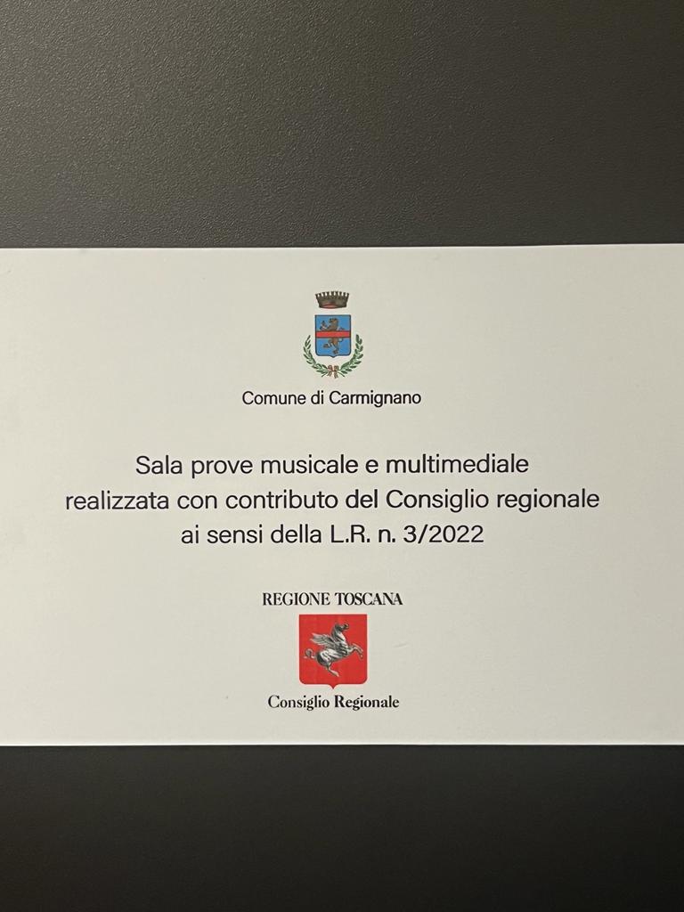 Firenze – È stata inaugurata nel pomeriggio di ieri, venerdì 15 dicembre, la nuova Sala prove dello Spazio giovani di Comeana, nel comune di Carmignano (Prato), realizzata con il contributo del Consiglio regionale della Toscana, che con il bando Ri-Generazione Toscana (attraverso la legge 3/2022) mette a disposizione risorse per iniziative di promozione sociale, culturale e di aggregazione rivolte alle nuove generazioni. Alla cerimonia di inaugurazione sono intervenuti la consigliera regionale Ilaria Bugetti, in rappresentanza dell’Assemblea legislativa, e il sindaco di Carmignano, Edoardo Prestanti.