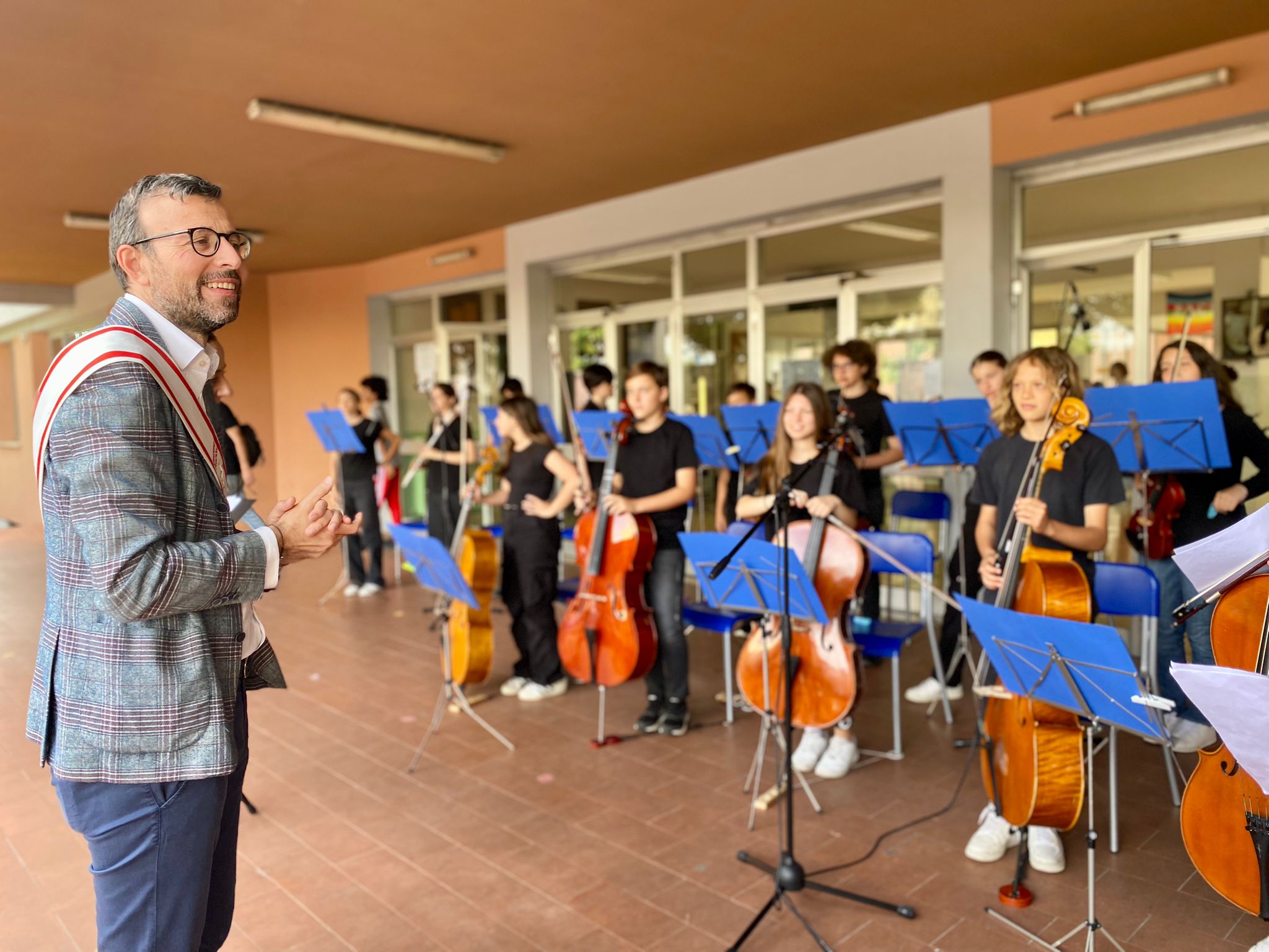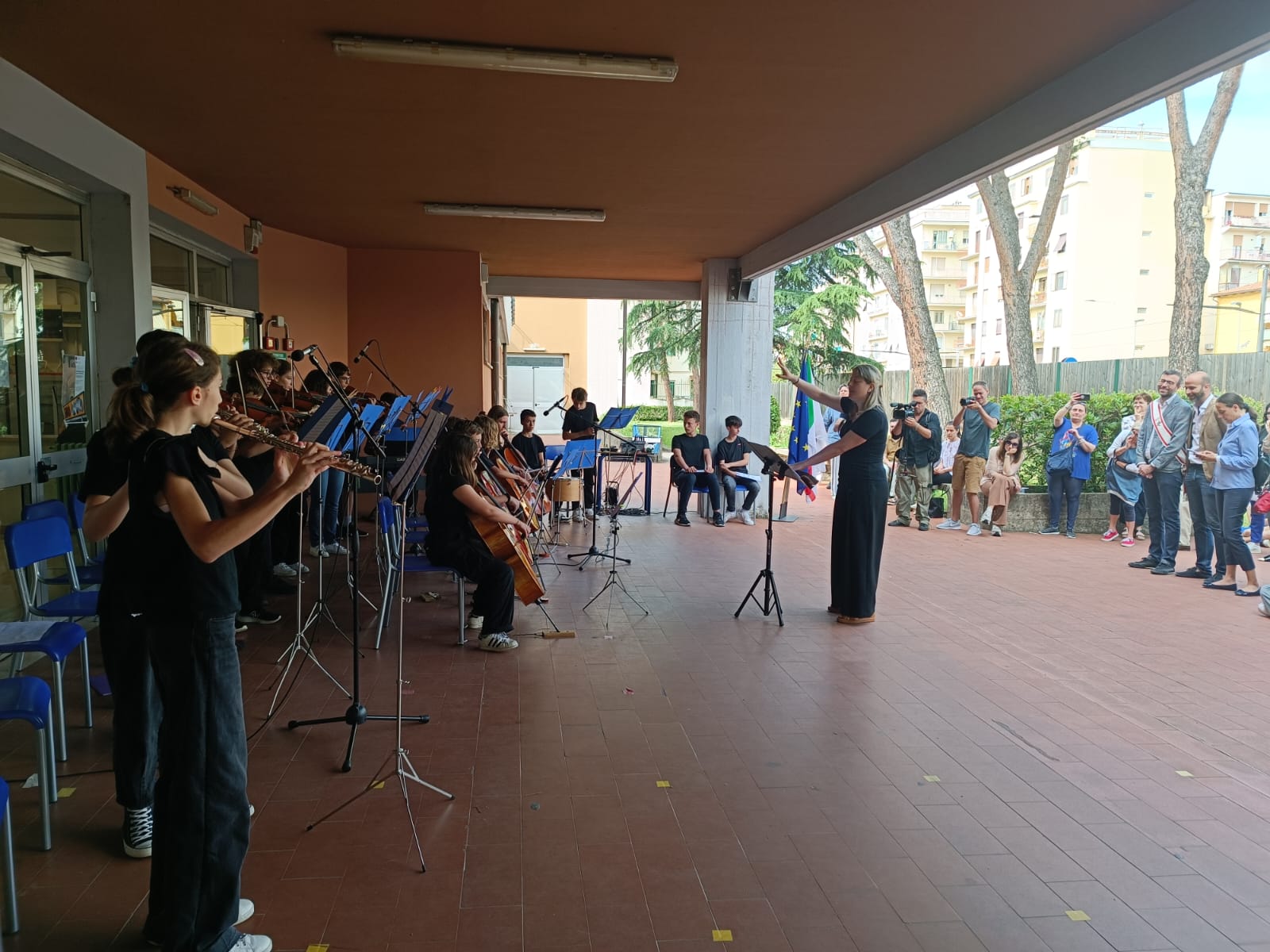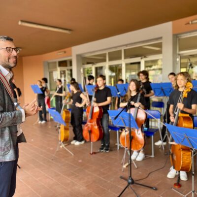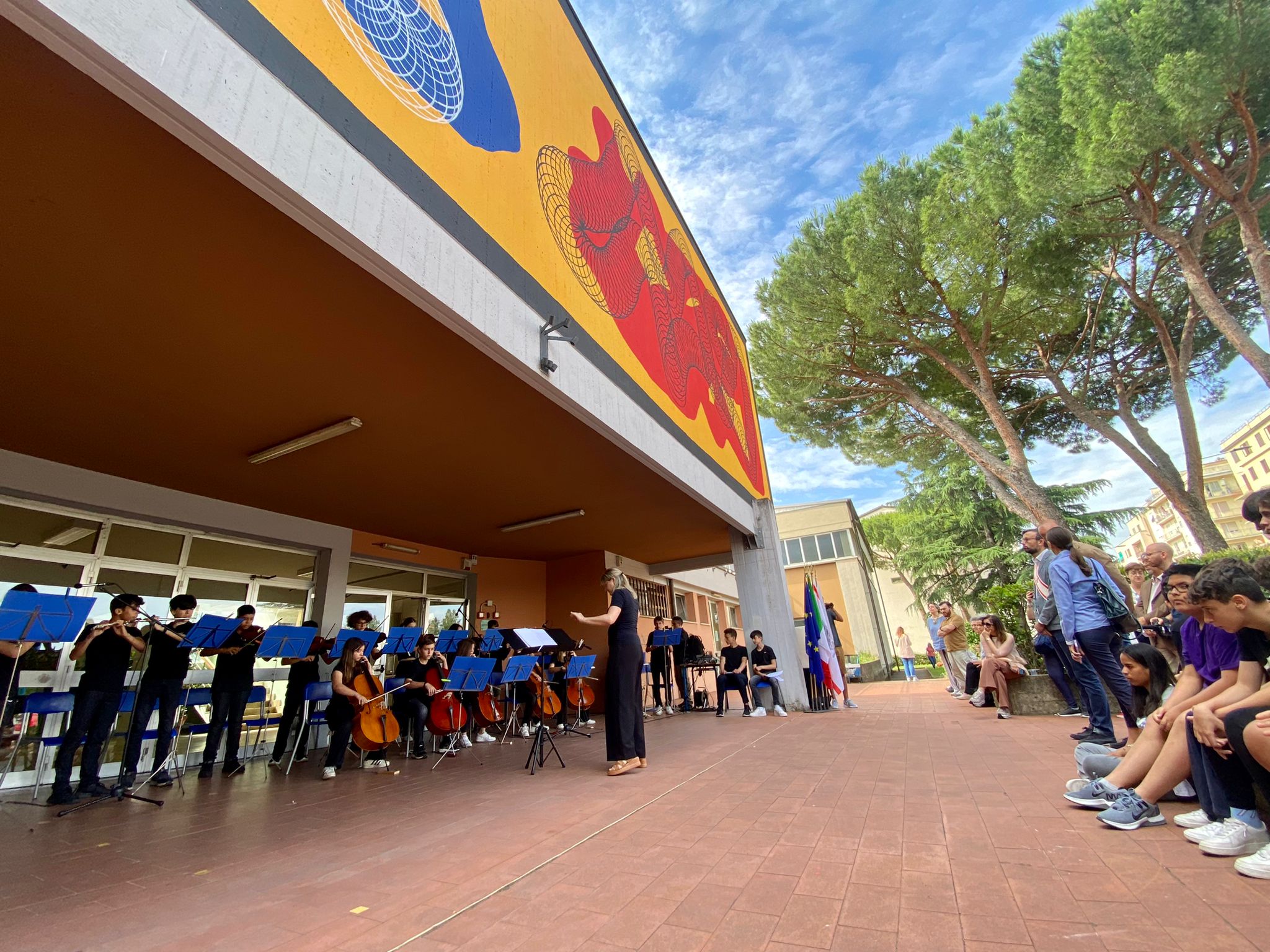 Durante l’inaugurazione alcuni studenti dell’orchestra della scuola si sono esibiti nell’ ‘Inno alla gioia’ di L.v. Beethoven e in ‘Galop infernal’ (can can) di J. Offenbach.