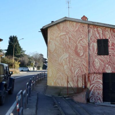 Il grande murale firmato da Tellas è ispirato al tema della sostenibilità ambientale. L’opera si intitola “Autumn light” e raffigura la natura, con piante, pietre, foglie e altra vegetazione che si riappropriano dello spazio che l’uomo ha sottratto loro. Tellas porta nell’arte di strada un concetto di riappropriazione dello spazio, attraverso l’arte e la natura che viene dipinta proprio sui palazzi. Nell’opera, realizzata su un edificio comunale ubicato lungo la statale Tosco Romagnola nei pressi del ponte sul torrente Orme, sono presenti i colori del rosso, del giallo e del verde, colori che raffigurano la stagionalità.