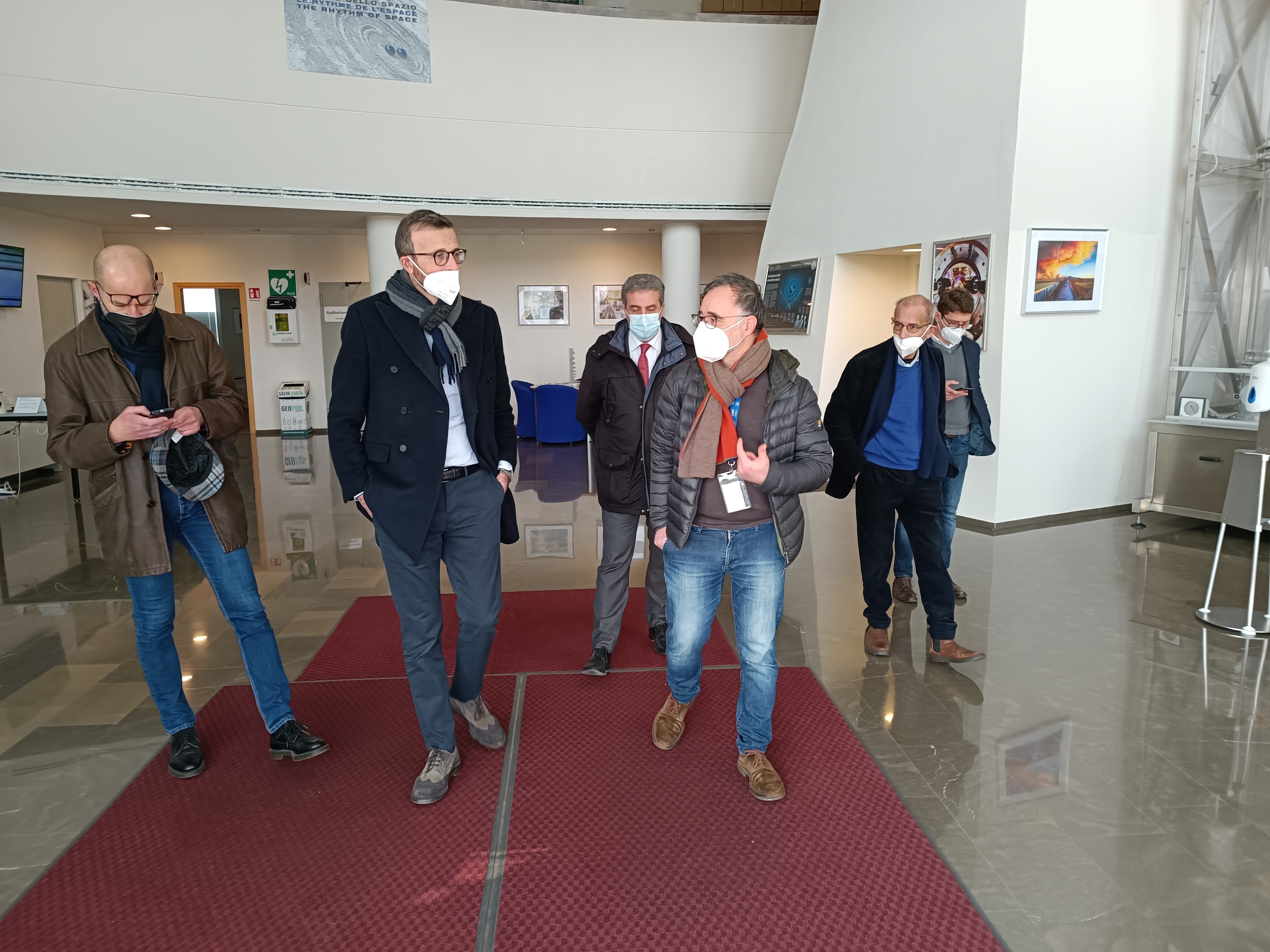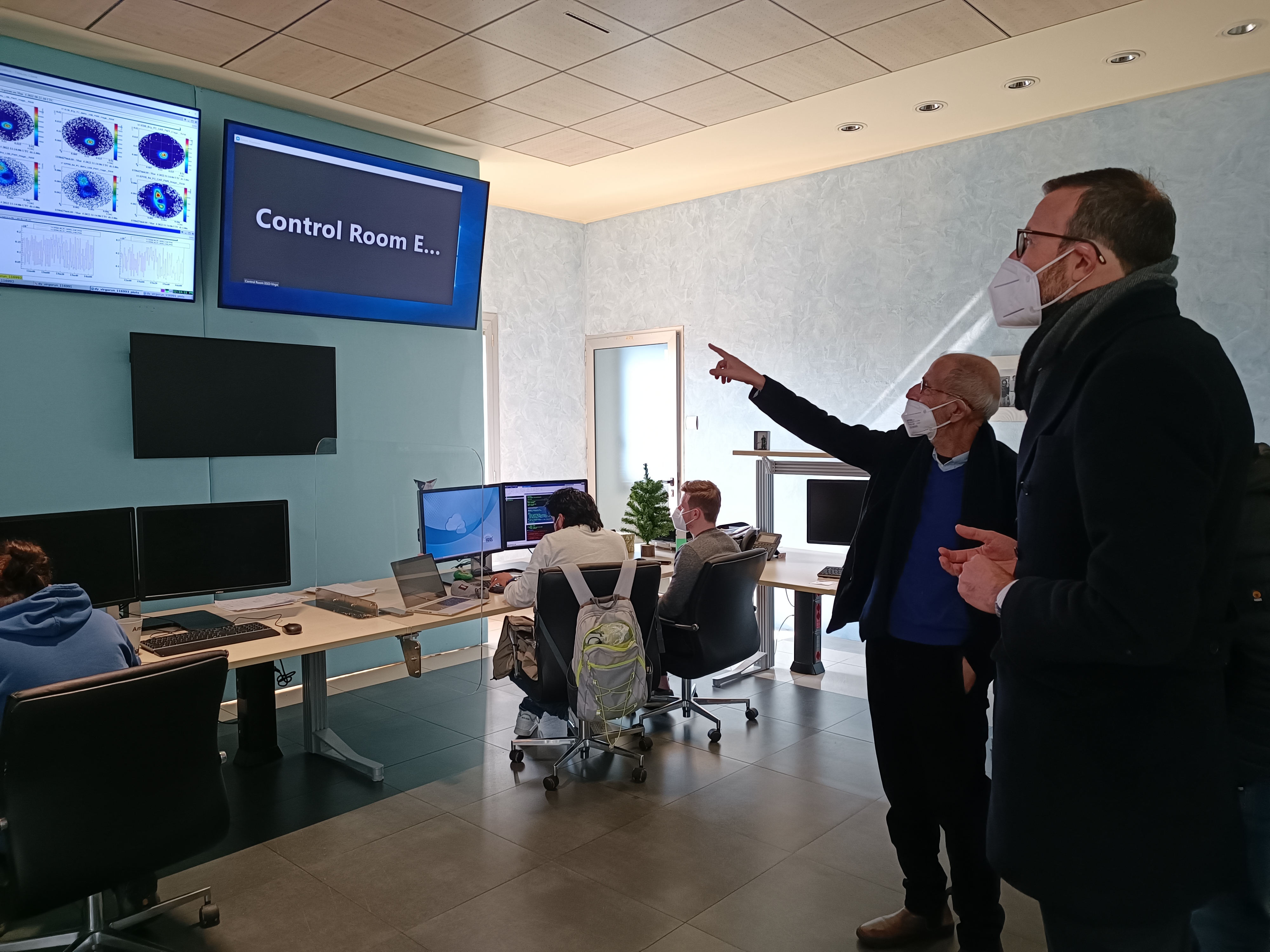 Il presidente Mazzeo è stato accompagnato in tutti gli edifici sperimentali di Virgo dove gli sono stati presentati gli apparati tecnologici unici al mondo, che consentono il funzionamento dell’esperimento: l’edificio centrale di Virgo dove in campane da vuoto alte 11 metri, grandi ammortizzatori antisismici, i cosiddetti super attenuatori, sviluppati da gruppi di ricerca dell’INFN di Pisa, mantengono perfettamente immobili gli specchi del rivelatore, dischi di quarzo sintetico ultrapuro e ultrapiatti, che oscillano impercettibilmente al solo passaggio delle onde gravitazionali; e ancora i tunnel di tre chilometri, dove il laser corre in tubi con ultra vuoto ultra spinto, costituiscono il volume di vuoto più grande di Europa.; e infine la Contro Room dell’esperimento, che è il vero e proprio cervello di Virgo, dove attualmente i ricercatori sono impegnati nella delicata fase del ‘Commissioning’ , ovvero della messa a punto dell’esperimento, dopo i lavori di potenziamento tecnologico dell’ultimo anno, prima della ripartenza della fase osservativa.