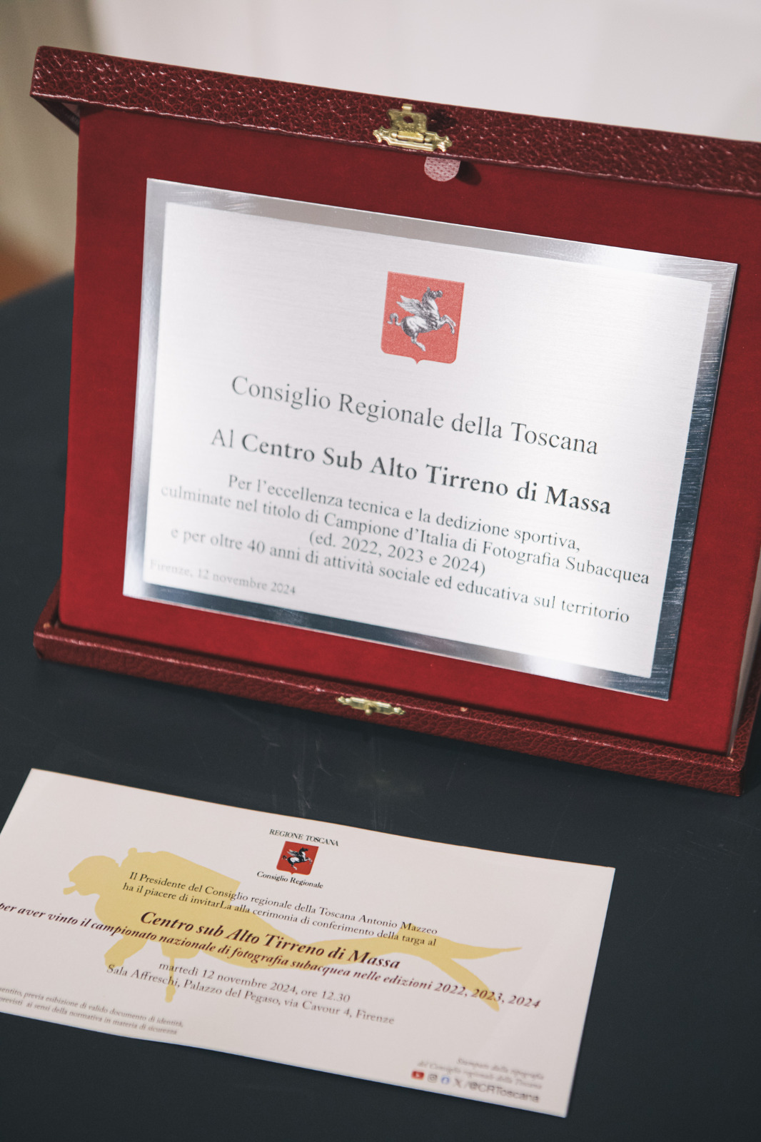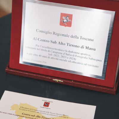 Firenze – Il Consiglio regionale della Toscana ha conferito una targa al Centro Sub Alto Tirreno di Massa, per l’eccellenza tecnica e la dedizione sportiva, culminate nel titolo di campioni d’Italia di fotografia subacquea nelle edizioni 2022, 2023, 2024 e per i suoi oltre 40 anni di attività sociale ed educativa sul territorio.