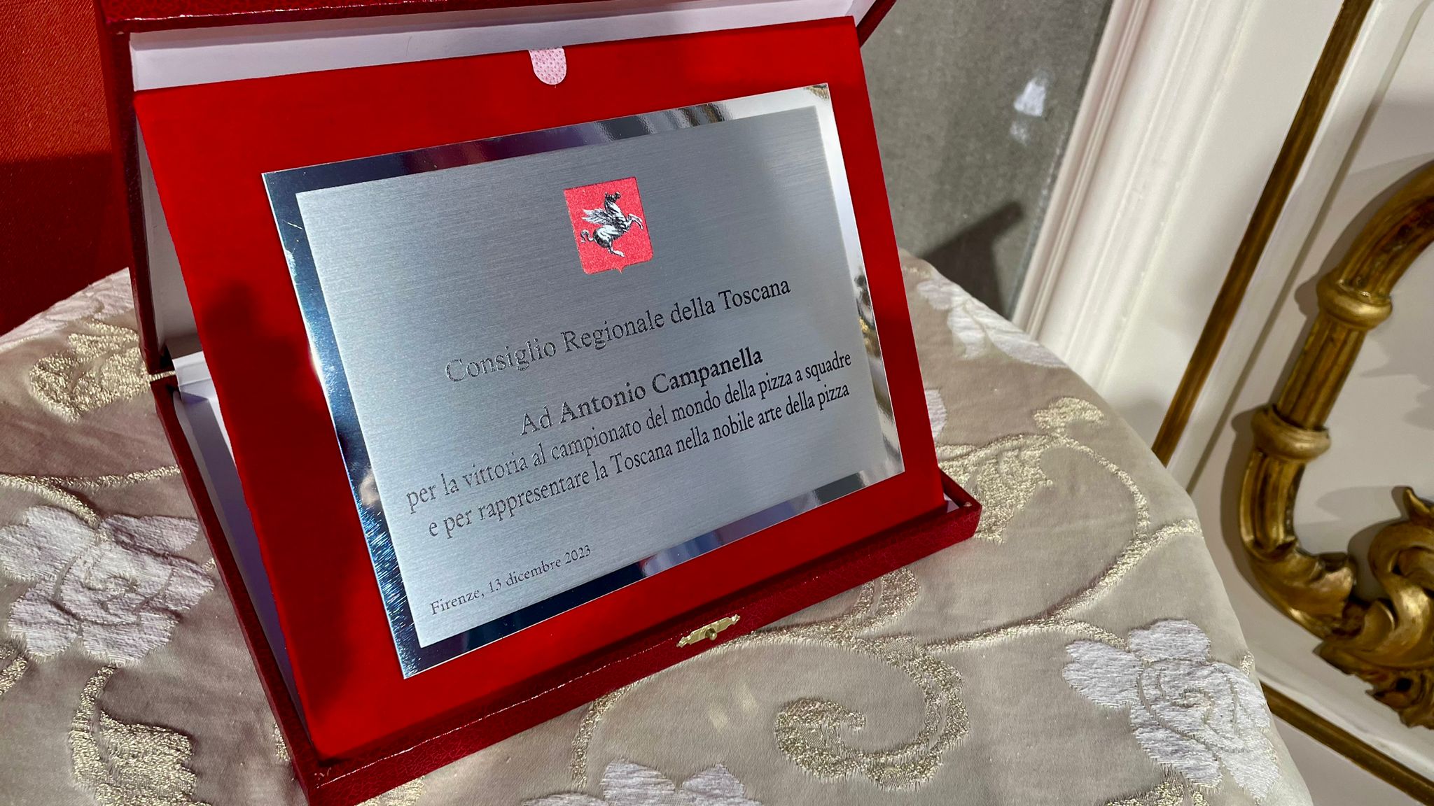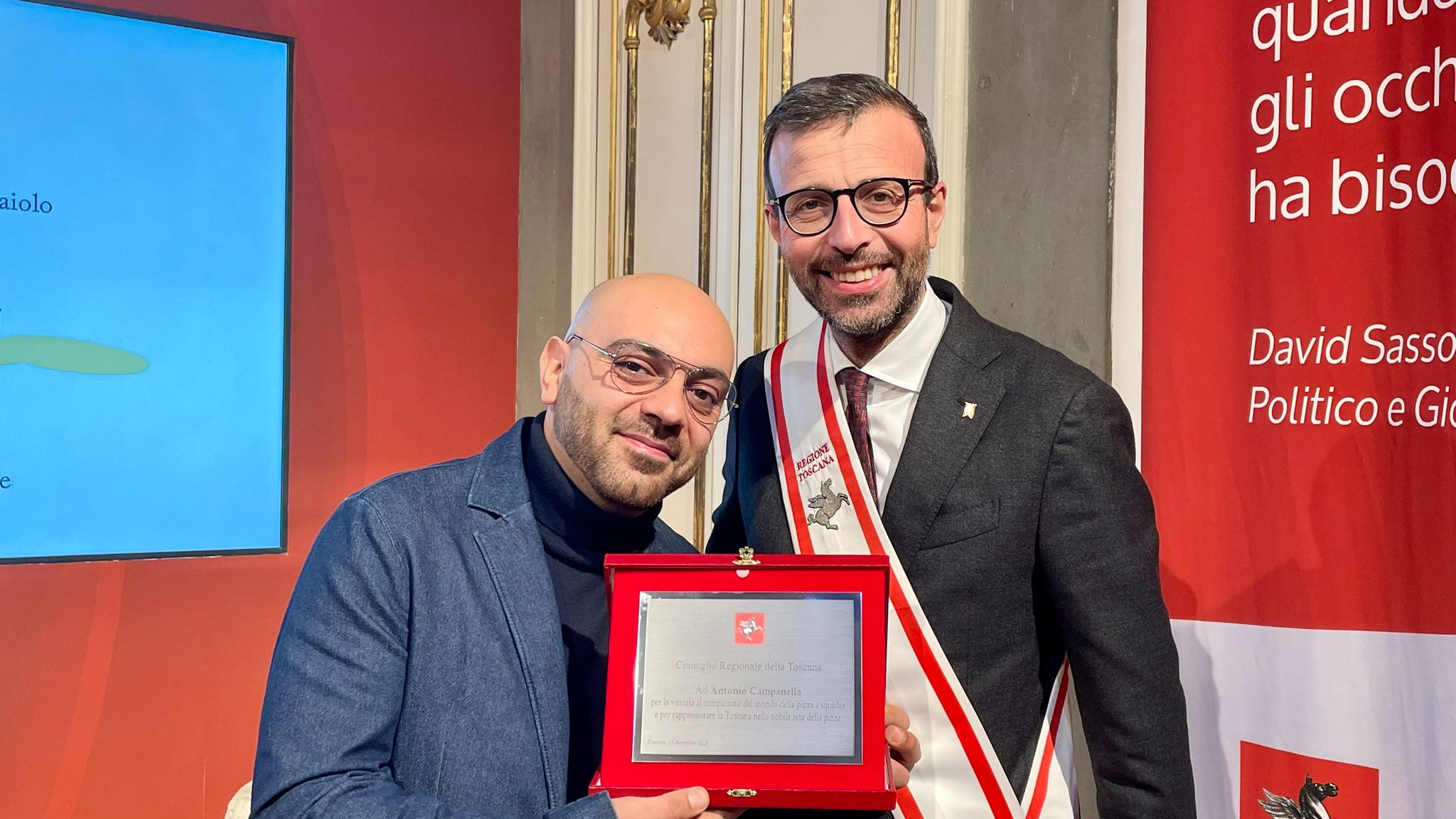 Il presidente Antonio Mazzeo ha premiato il pizzaiolo per i suoi successi internazionali