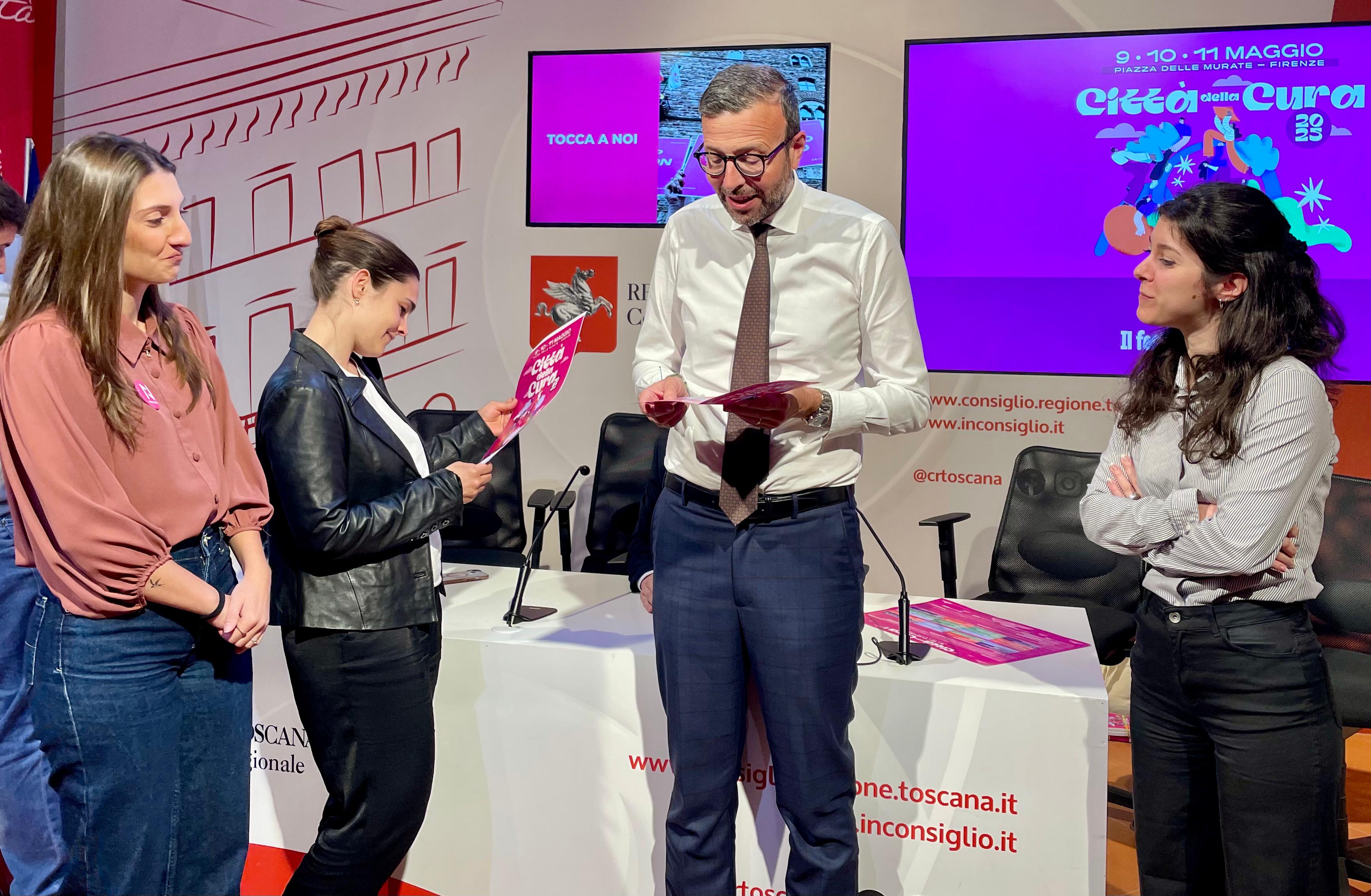 A presentare questo spazio di confronto, pubblico, gratuito e aperto a tutti, sono intervenuti a palazzo del Pegaso Antonio Mazzeo, presidente dell’Assemblea Toscana; Enrico Sostegni, presidente della commissione Sanità; Laura Sparavigna, assessore del Comune di Firenze, insieme agli organizzatori, Lucrezia Iurlaro, Marta Marini e Irene Bandini, rispettivamente presidente, membro del direttivo e tesoriera dell’associazione Tocca a Noi. Presenti alla conferenza stampa anche i consiglieri regionali Donatella Spadi e Andrea Vannucci.