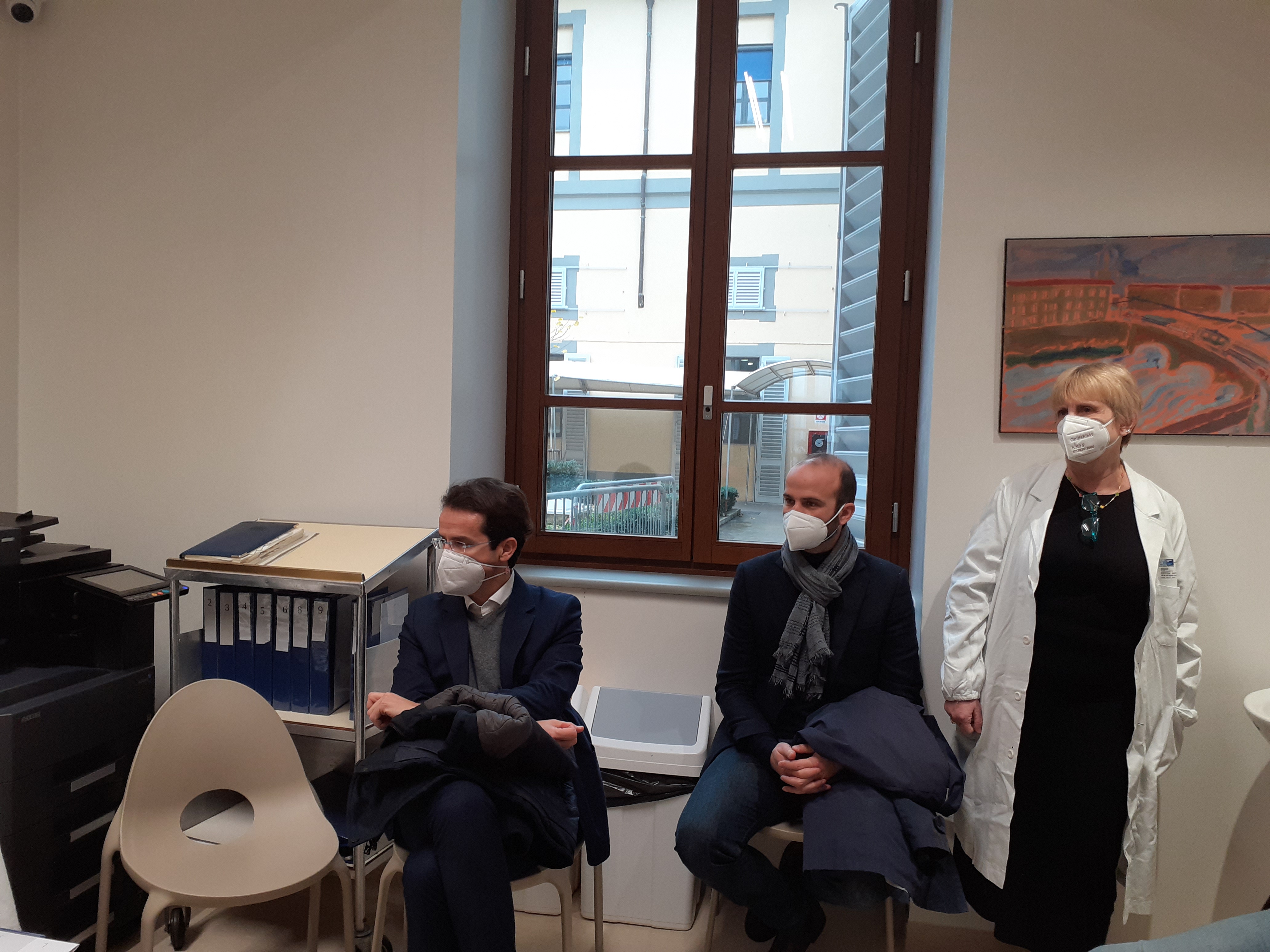 Con il presidente Sostegni, la delegazione della commissione con il vicepresidente Andrea Ulmi (Lega) e i consiglieri regionali del Partito democratico Federica Fratoni, Vincenzo Ceccarelli e Andrea Vannucci. I reparti visitati sono stati: medicina C, rianimazione, sale operatorie, servizio psichiatrico di diagnosi e cura, radiologia e pronto soccorso. Alla giornata di incontri e confronto hanno partecipato Elisabetta Cocchi direttrice dell’ospedale Santa Maria Nuova; Gianluca Galeotti, direttore infermieristico di Santa Maria Nuova e Tommaso Grassi della Direzione sanitaria aziendale.