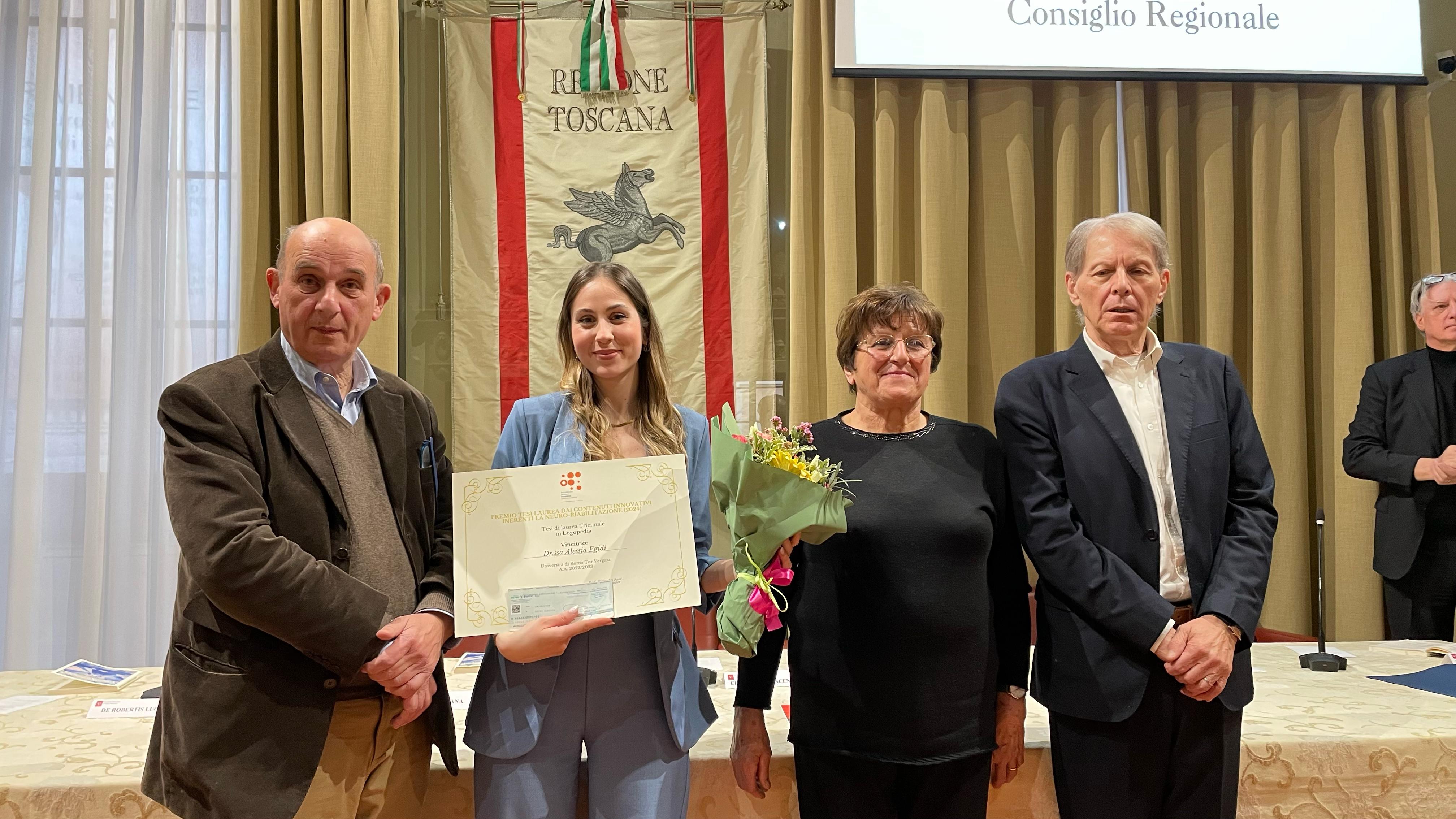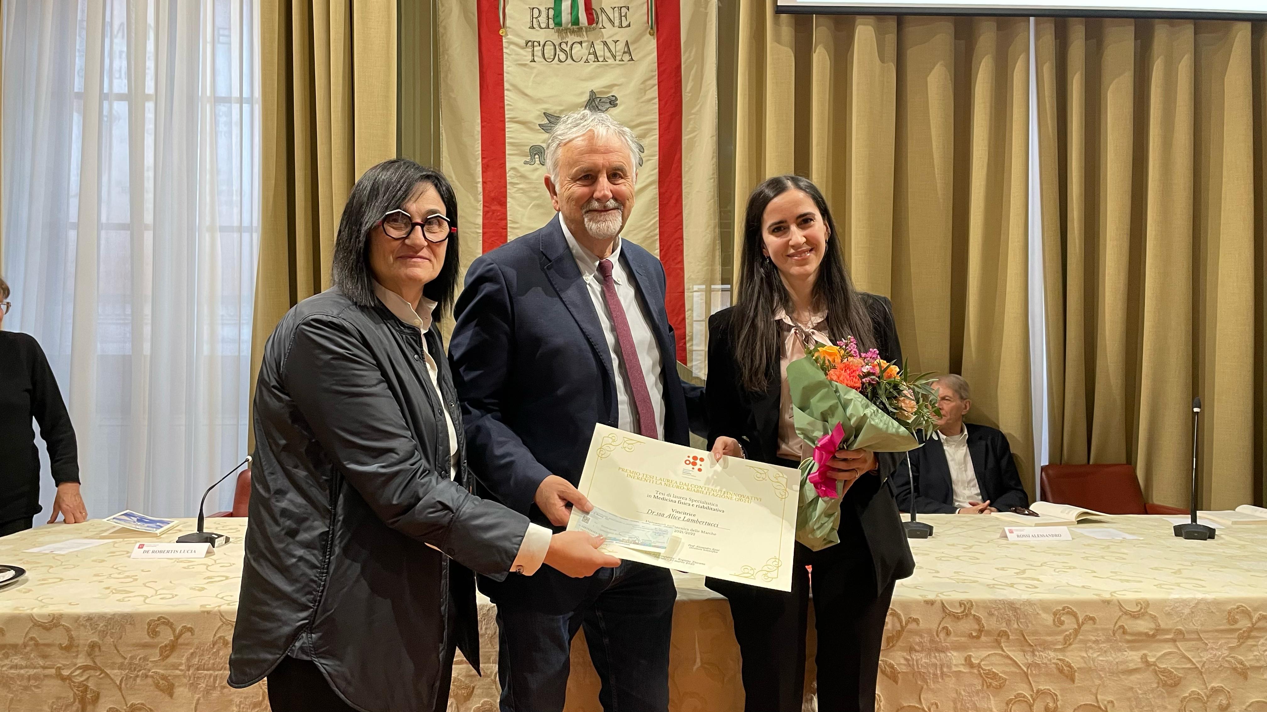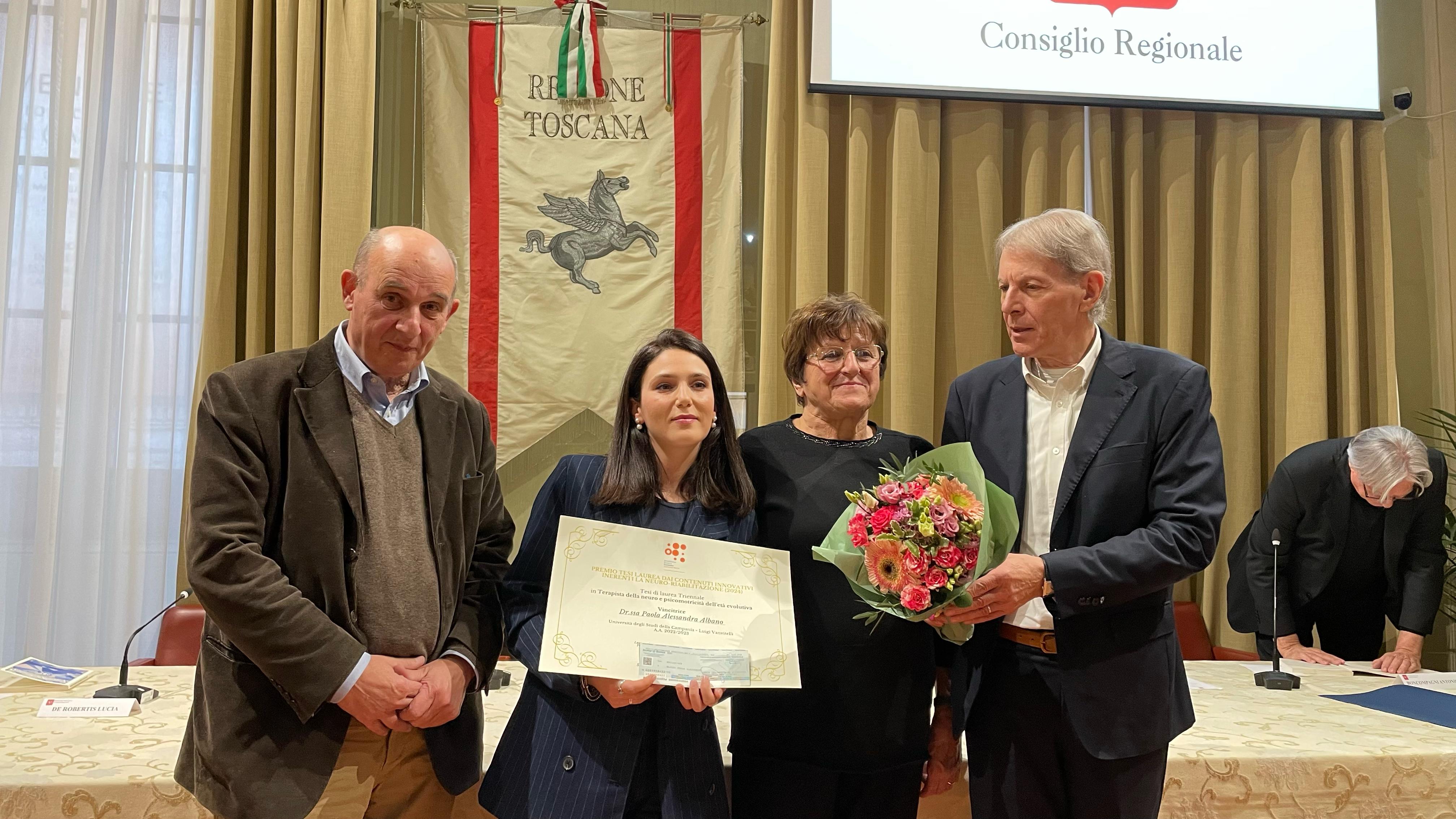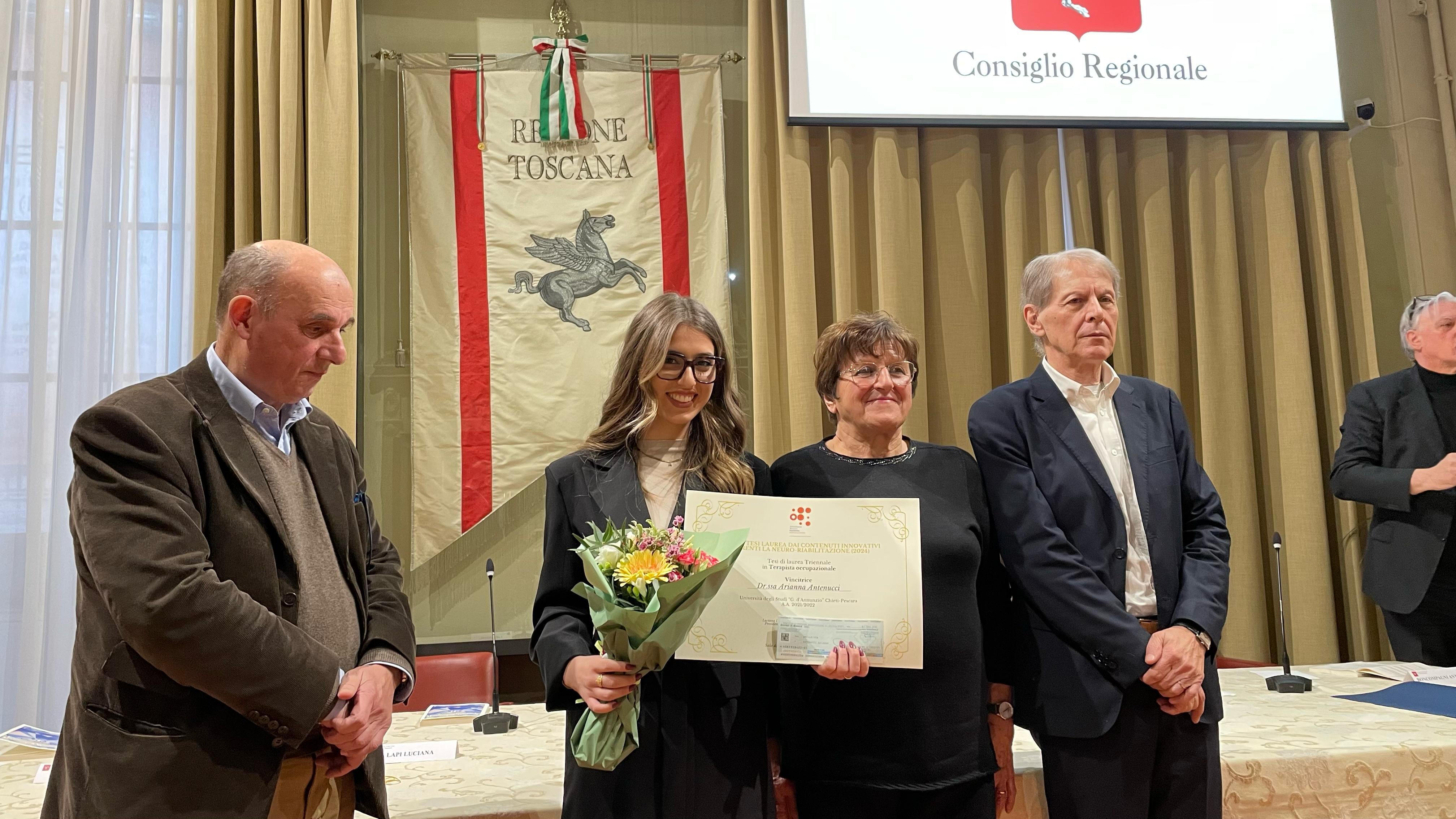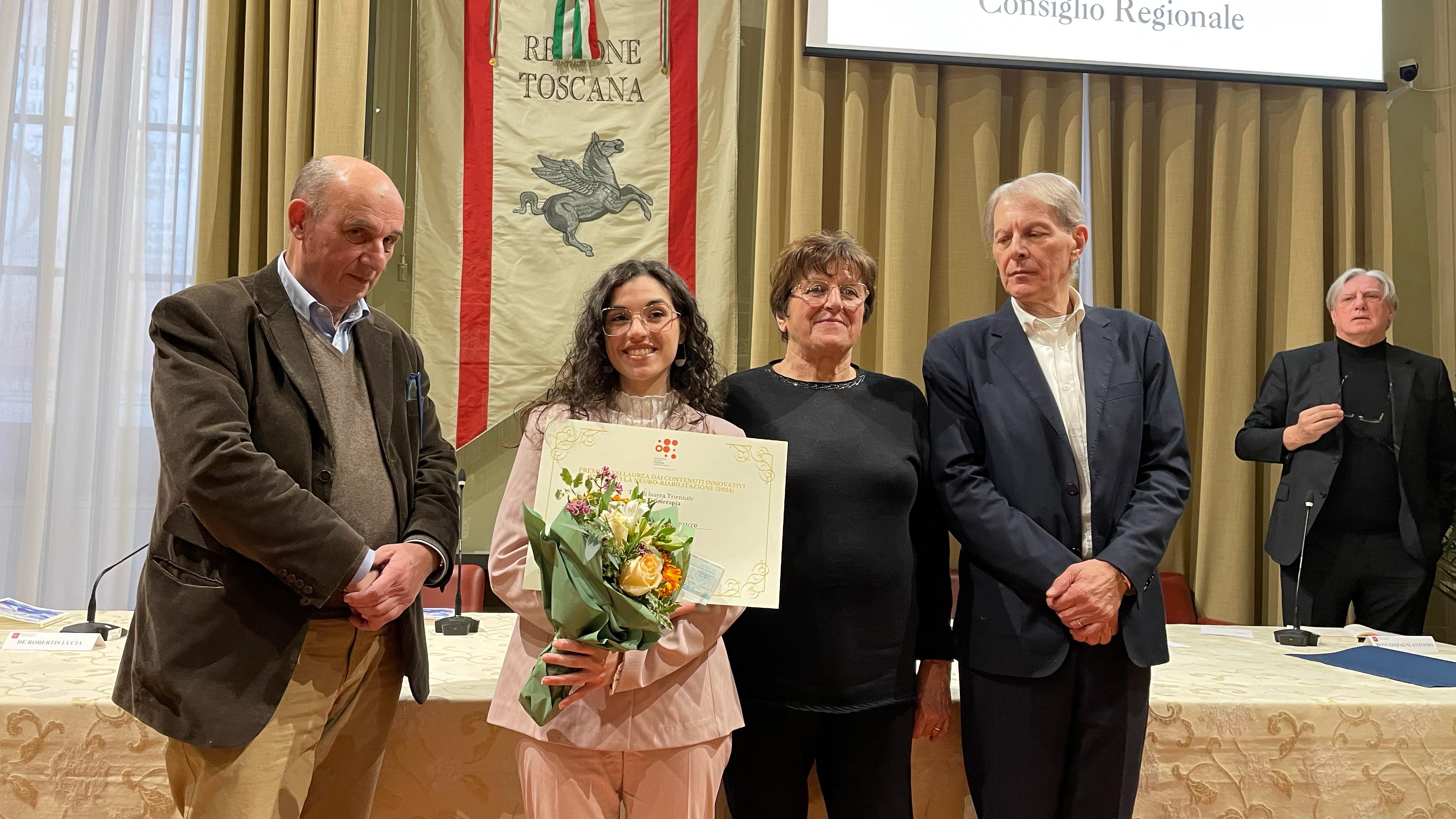 Firenze – Sono state consegnate questo pomeriggio (venerdì 21 marzo) a palazzo del Pegaso le borse di studio della Fondazione Gianfranco Salvini alle migliori tesi di laurea del 2024 che presentano contenuti innovativi inerenti alla neuro-riabilitazione. Alla cerimonia, nella sala del Gonfalone di palazzo del Pegaso, sono intervenuti la presidente della commissione Ambiente, Lucia De Robertis, e il consigliere regionale Vincenzo Ceccarelli.