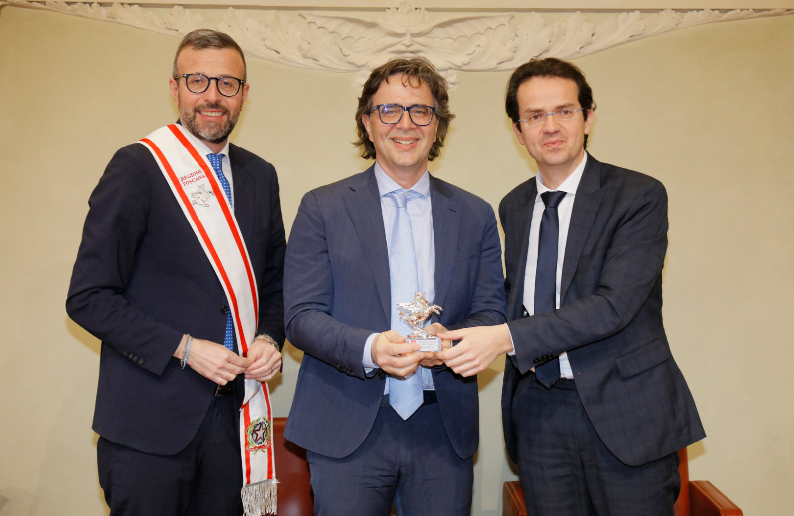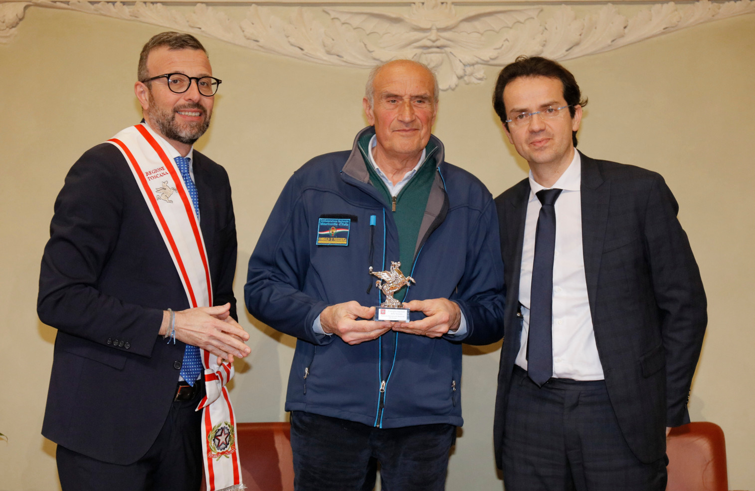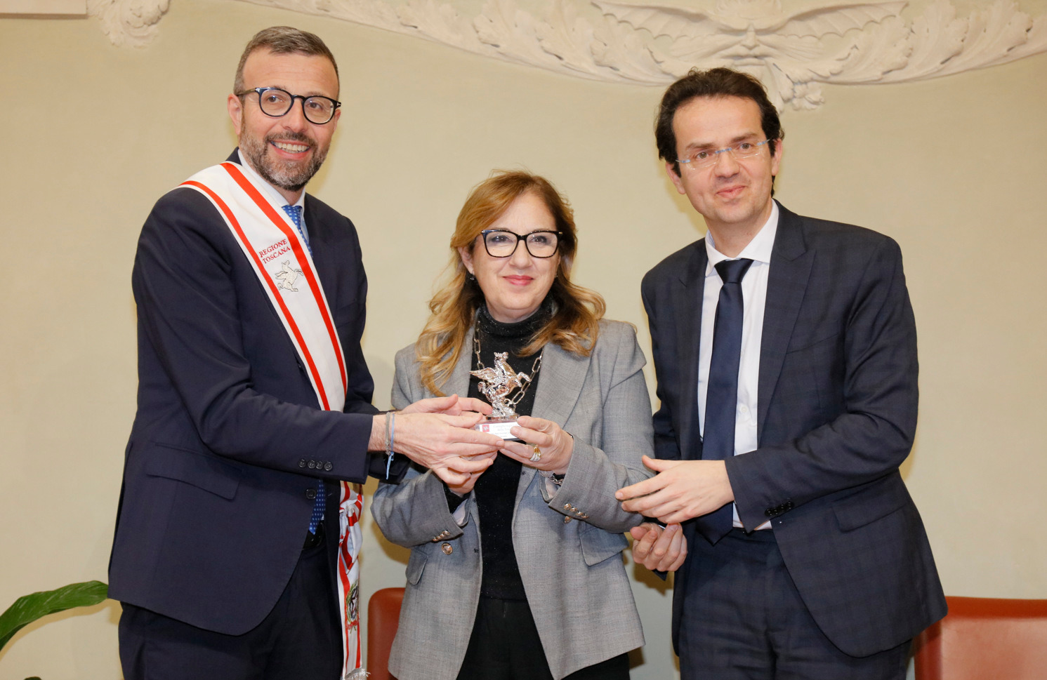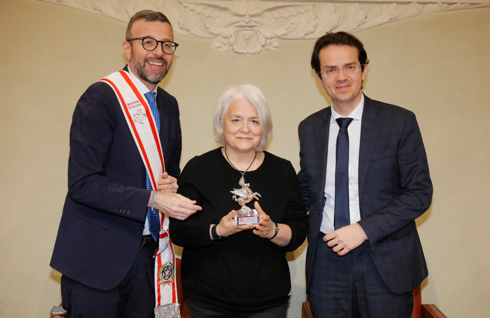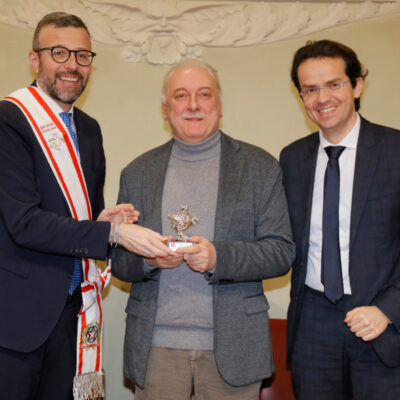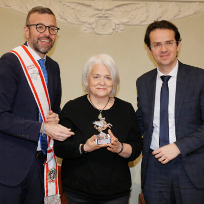 Una targa raffigurante il Gonfalone d’argento, idealmente consegnato a tutti gli operatori della sanità, resterà esposta da oggi nelle sale del palazzo del Pegaso, con l’iscrizione “Al personale socio sanitario della Toscana vittima del Covid-19, nel ricordo del sacrificio della propria vita”. Il Trofeo Pegaso, statuetta raffigurante il Pegaso alato, è stato consegnato a ciascun ordine e organizzazione. Erano presenti la presidente Rosa Barone per l’Ordine degli assistenti sociali della Toscana; il vice presidente Simone Mangini, per Ordine degli psicologi; il presidente Renato Fani, per l’Ordine dei biologi della Toscana e dell’Umbria; il coordinatore regionale Salvatore Ingrosso, per l’Ordine dei farmacisti; Lorenzo Vanni per l’Ordine dei Medici Chirurghi e Odontoiatri della Toscana, che accoglie “questo riconoscimento in nome e per conto dei 383 colleghi deceduti in Italia per il Covid”, le presidenti Antonella Cinotti e Martha Traupe per l’Ordine della professione di ostetrica; il presidente Opi Livorno, Lorenzo Taddeucci, per l’Ordine delle professioni infermieristiche; Adriana Taddeucci, del consiglio direttivo dell’Ordine regionale dei chimici e dei fisici; Raffaele Lamanna, vicepresidente dell’Ordine dei tecnici sanitari di radiologia medica e professioni sanitarie tecniche della riabilitazione e della prevenzione; il portavoce del Forum Terzo Settore della Toscana, Gianluca Mengozzi, che: il presidente Anpas Pubbliche Assistenze Toscane, Dimitri Bettini; il segretario regionale della Croce rossa italiana Comitato Regionale Toscana, Pasquale Morano, e Andrea Ceccherini, membro esecutivo regionale della Federazione regionale delle Misericordie della Toscana. Alla cerimonia, che si è tenuta nella sala del Gonfalone, hanno assistito anche la consigliera Silvia Noferi e il consigliere Marco Martini.