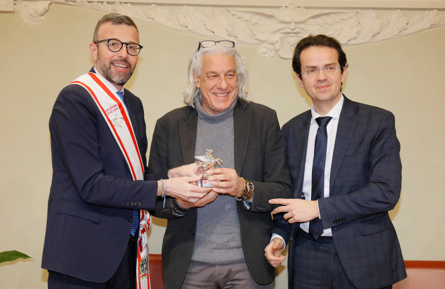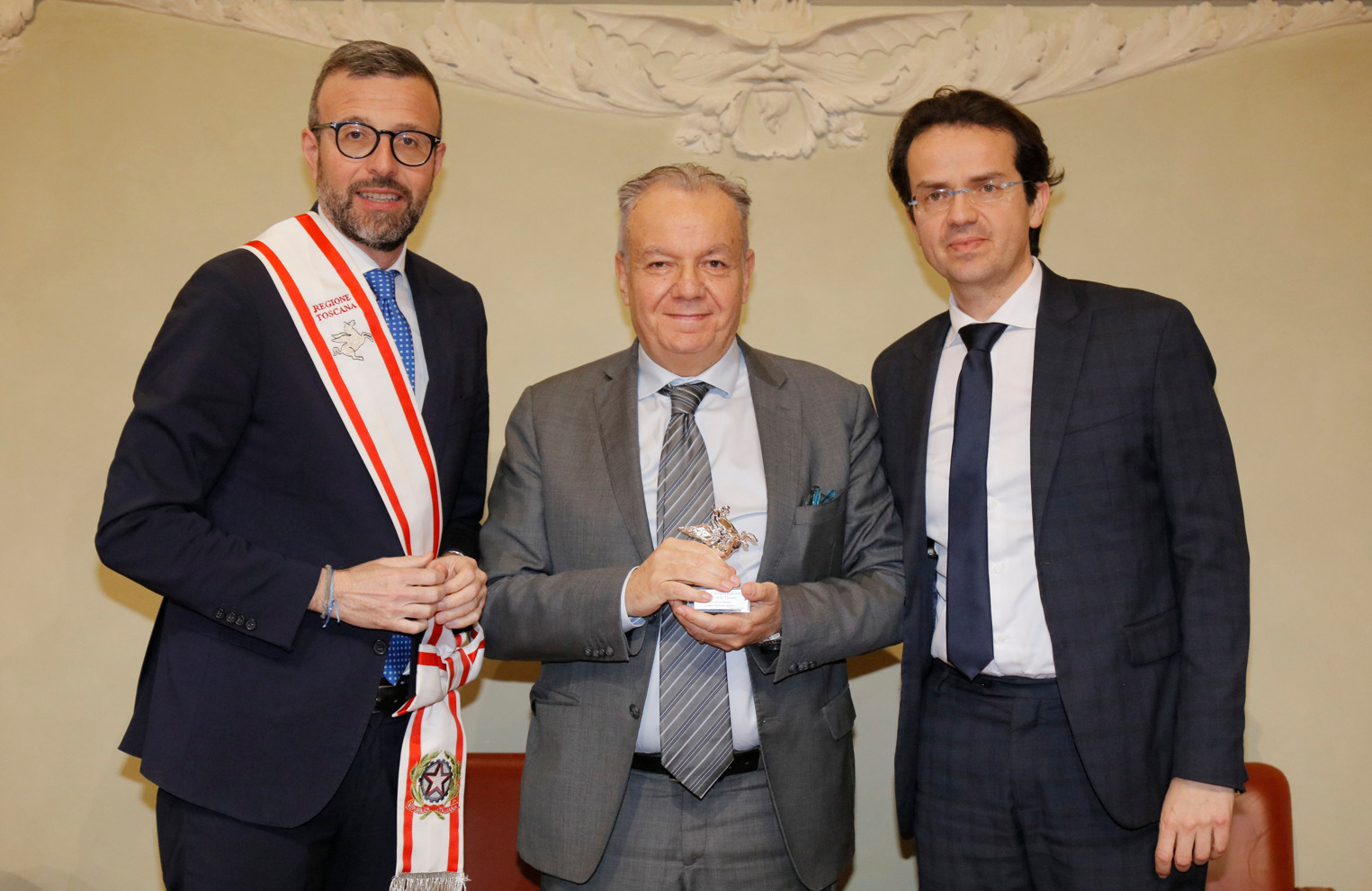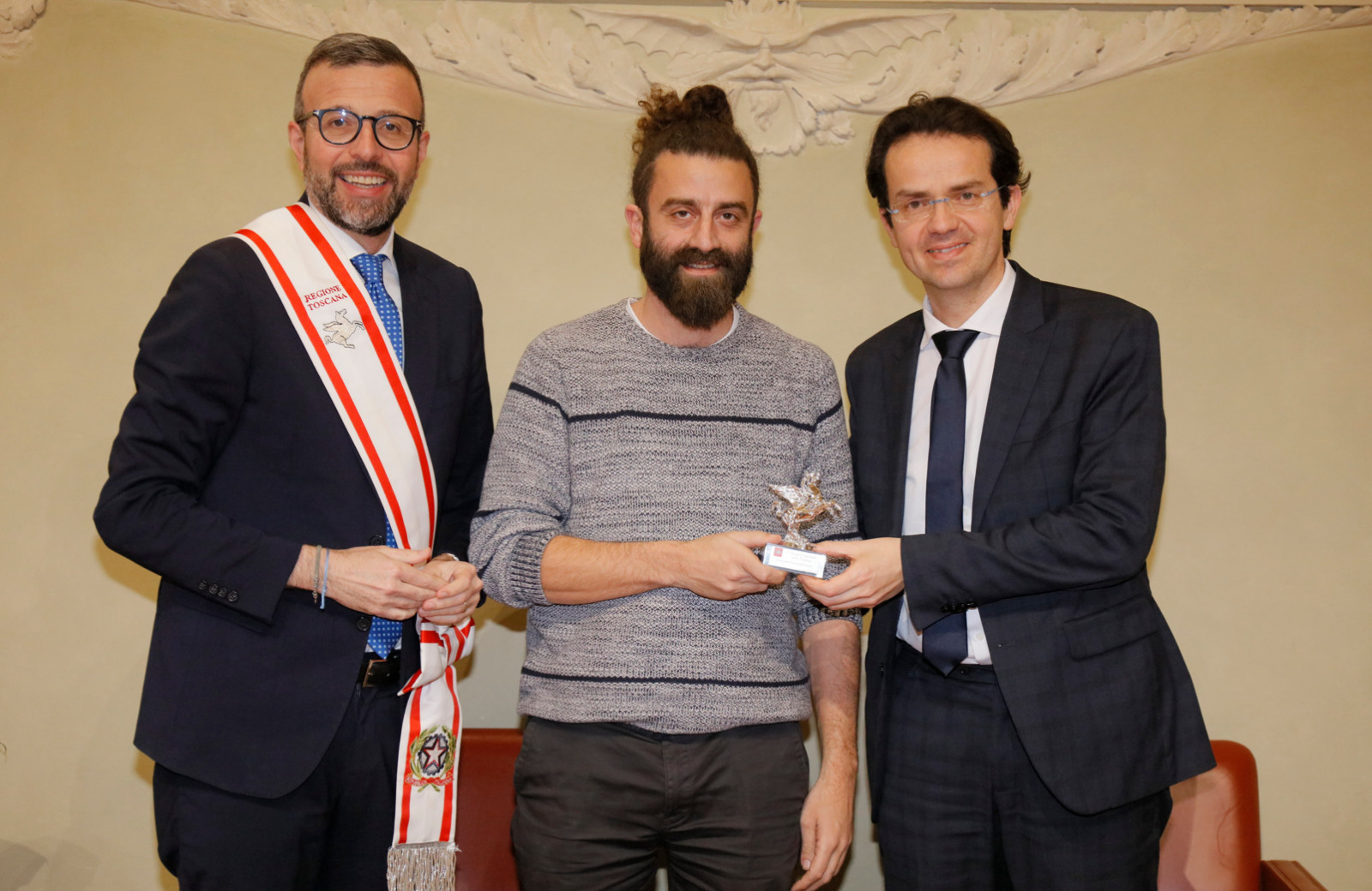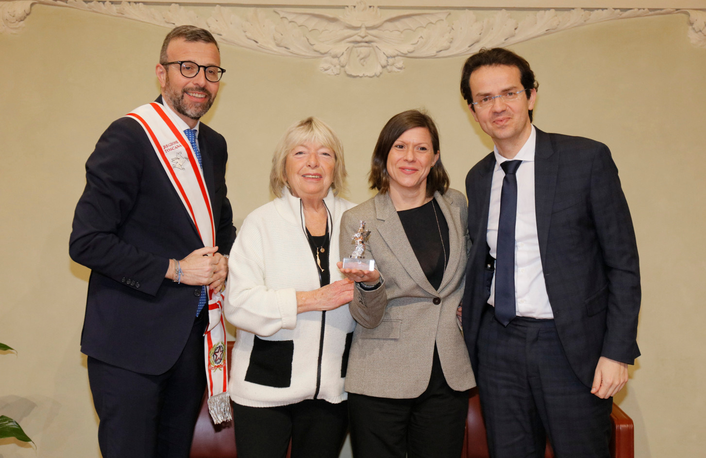 Una targa raffigurante il Gonfalone d’argento, idealmente consegnato a tutti gli operatori della sanità, resterà esposta da oggi nelle sale del palazzo del Pegaso, con l’iscrizione “Al personale socio sanitario della Toscana vittima del Covid-19, nel ricordo del sacrificio della propria vita”. Il Trofeo Pegaso, statuetta raffigurante il Pegaso alato, è stato consegnato a ciascun ordine e organizzazione. Erano presenti la presidente Rosa Barone per l’Ordine degli assistenti sociali della Toscana; il vice presidente Simone Mangini, per Ordine degli psicologi; il presidente Renato Fani, per l’Ordine dei biologi della Toscana e dell’Umbria; il coordinatore regionale Salvatore Ingrosso, per l’Ordine dei farmacisti; Lorenzo Vanni per l’Ordine dei Medici Chirurghi e Odontoiatri della Toscana, che accoglie “questo riconoscimento in nome e per conto dei 383 colleghi deceduti in Italia per il Covid”, le presidenti Antonella Cinotti e Martha Traupe per l’Ordine della professione di ostetrica; il presidente Opi Livorno, Lorenzo Taddeucci, per l’Ordine delle professioni infermieristiche; Adriana Taddeucci, del consiglio direttivo dell’Ordine regionale dei chimici e dei fisici; Raffaele Lamanna, vicepresidente dell’Ordine dei tecnici sanitari di radiologia medica e professioni sanitarie tecniche della riabilitazione e della prevenzione; il portavoce del Forum Terzo Settore della Toscana, Gianluca Mengozzi, che: il presidente Anpas Pubbliche Assistenze Toscane, Dimitri Bettini; il segretario regionale della Croce rossa italiana Comitato Regionale Toscana, Pasquale Morano, e Andrea Ceccherini, membro esecutivo regionale della Federazione regionale delle Misericordie della Toscana. Alla cerimonia, che si è tenuta nella sala del Gonfalone, hanno assistito anche la consigliera Silvia Noferi e il consigliere Marco Martini.