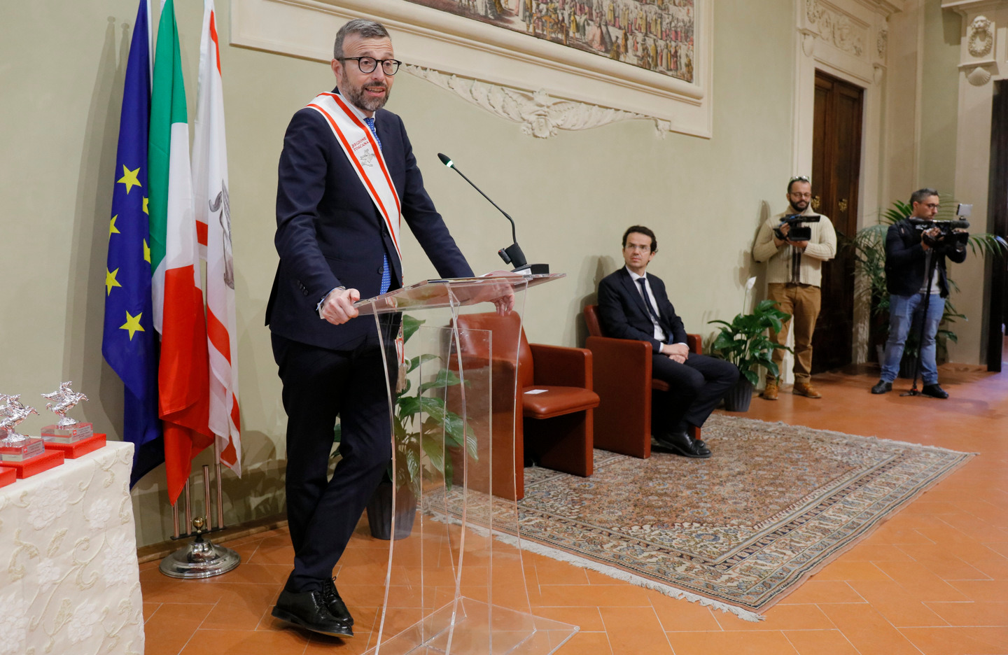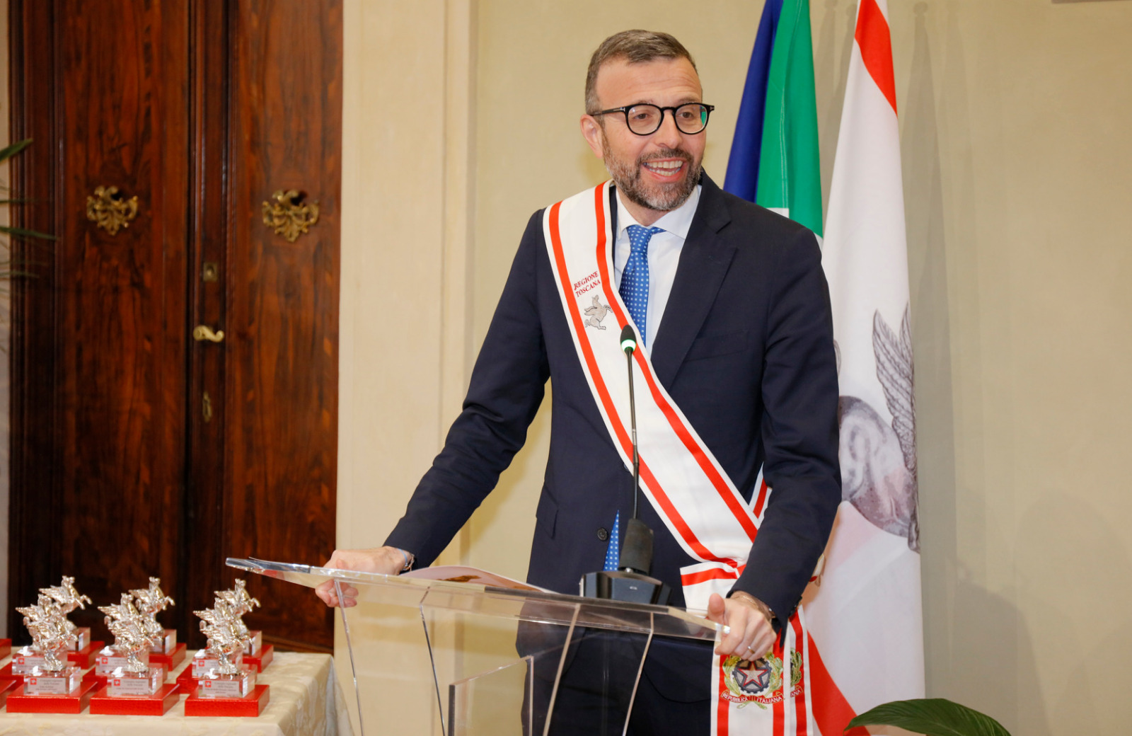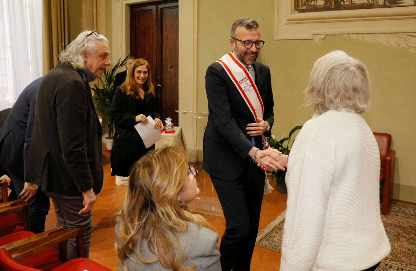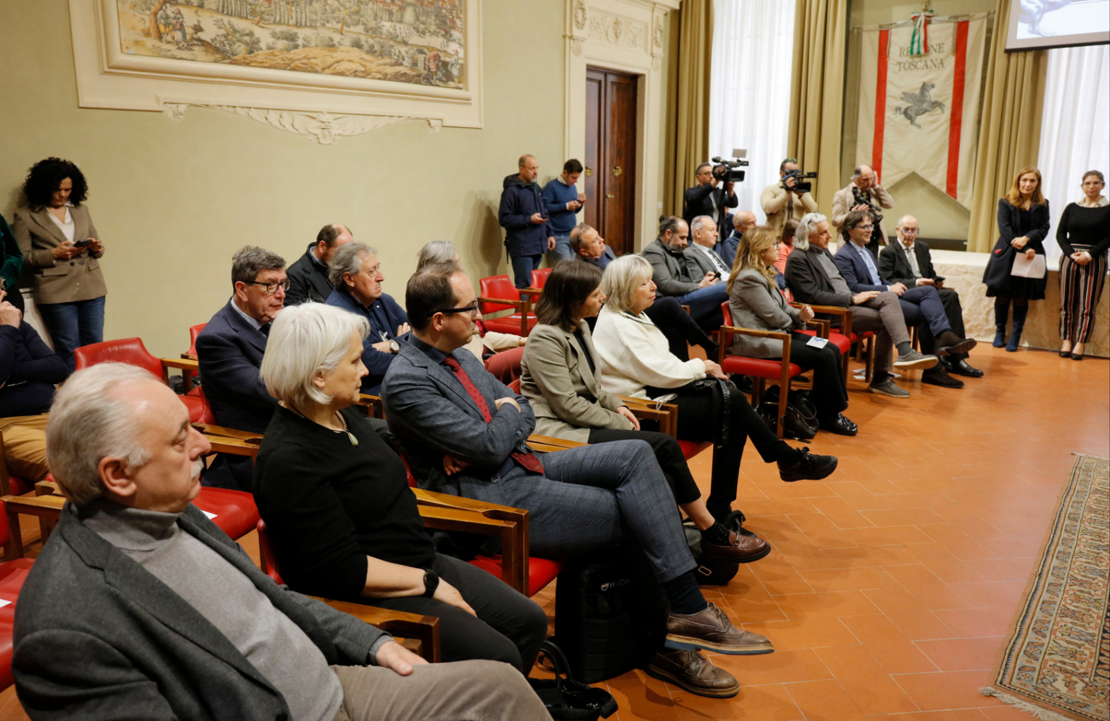 Una targa raffigurante il Gonfalone d’argento, idealmente consegnato a tutti gli operatori della sanità, resterà esposta da oggi nelle sale del palazzo del Pegaso, con l’iscrizione “Al personale socio sanitario della Toscana vittima del Covid-19, nel ricordo del sacrificio della propria vita”. Il Trofeo Pegaso, statuetta raffigurante il Pegaso alato, è stato consegnato a ciascun ordine e organizzazione. Erano presenti la presidente Rosa Barone per l’Ordine degli assistenti sociali della Toscana; il vice presidente Simone Mangini, per Ordine degli psicologi; il presidente Renato Fani, per l’Ordine dei biologi della Toscana e dell’Umbria; il coordinatore regionale Salvatore Ingrosso, per l’Ordine dei farmacisti; Lorenzo Vanni per l’Ordine dei Medici Chirurghi e Odontoiatri della Toscana, che accoglie “questo riconoscimento in nome e per conto dei 383 colleghi deceduti in Italia per il Covid”, le presidenti Antonella Cinotti e Martha Traupe per l’Ordine della professione di ostetrica; il presidente Opi Livorno, Lorenzo Taddeucci, per l’Ordine delle professioni infermieristiche; Adriana Taddeucci, del consiglio direttivo dell’Ordine regionale dei chimici e dei fisici; Raffaele Lamanna, vicepresidente dell’Ordine dei tecnici sanitari di radiologia medica e professioni sanitarie tecniche della riabilitazione e della prevenzione; il portavoce del Forum Terzo Settore della Toscana, Gianluca Mengozzi, che: il presidente Anpas Pubbliche Assistenze Toscane, Dimitri Bettini; il segretario regionale della Croce rossa italiana Comitato Regionale Toscana, Pasquale Morano, e Andrea Ceccherini, membro esecutivo regionale della Federazione regionale delle Misericordie della Toscana. Alla cerimonia, che si è tenuta nella sala del Gonfalone, hanno assistito anche la consigliera Silvia Noferi e il consigliere Marco Martini.