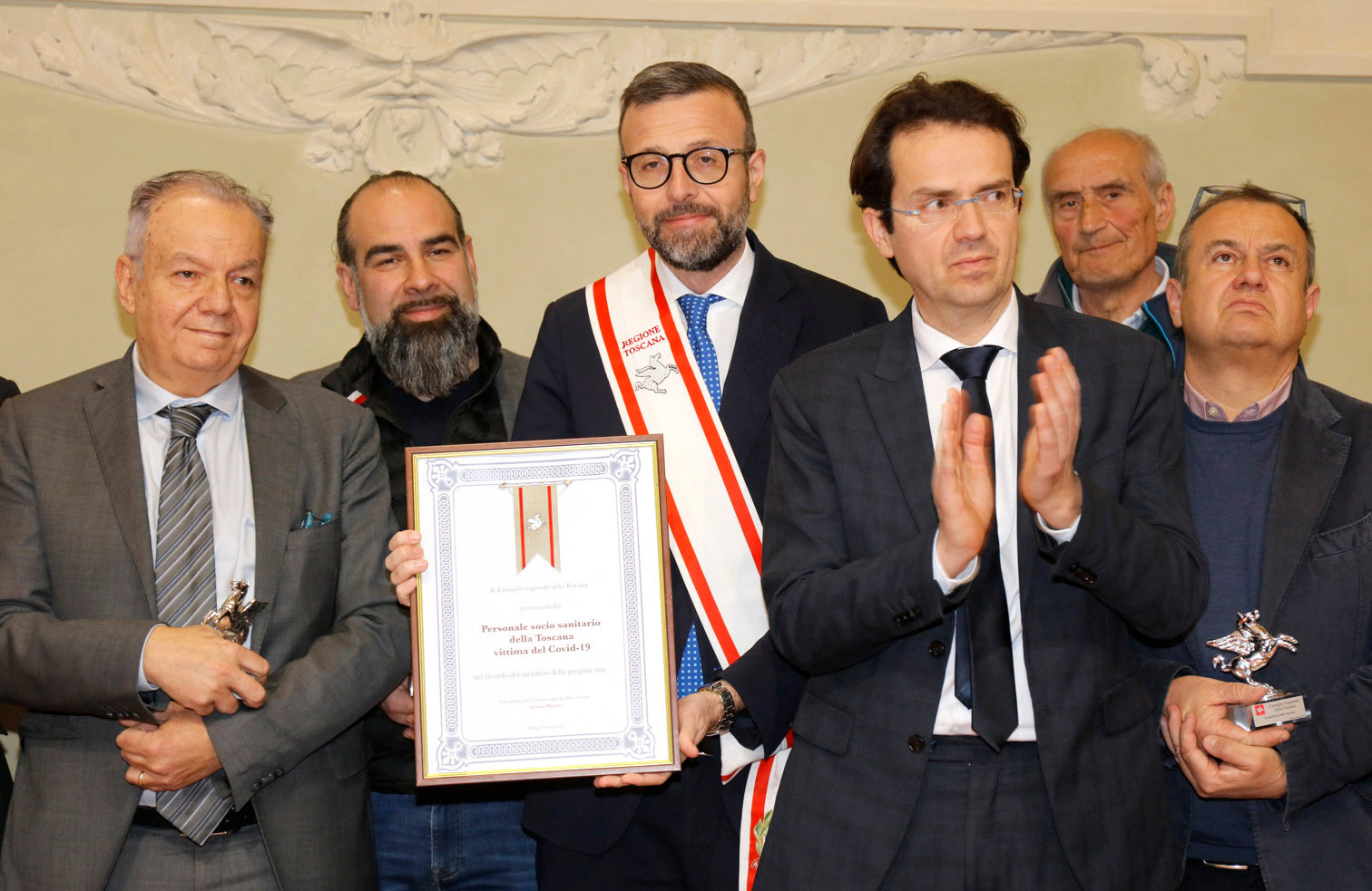 La “sinergia, la solidarietà, l’orgoglio per i risultati raggiunti”, svolgendo fino in fondo il proprio dovere, anche a rischio della vita e la consapevolezza che “uniti si vince”. Questi alcuni dei concetti espressi dai premiati, “nella quale ci siamo trovati tutti più soli”, spesso “a contatto con la paura”, ma capaci di “reagire tutti insieme e dare una risposta tutti insieme”. Poi, il ricordo doloroso “della disperazione dei tanti che abbiamo visto morire da soli” e la contraddizione viva tra quei giorni, “in cui tanti ci consideravano eroi”, e quelli che stiamo vivendo oggi, quando gli operatori della sanità si trovano subiscono sempre più spesso, anche in Toscana, attacchi e aggressioni nello svolgimento del loro lavoro.