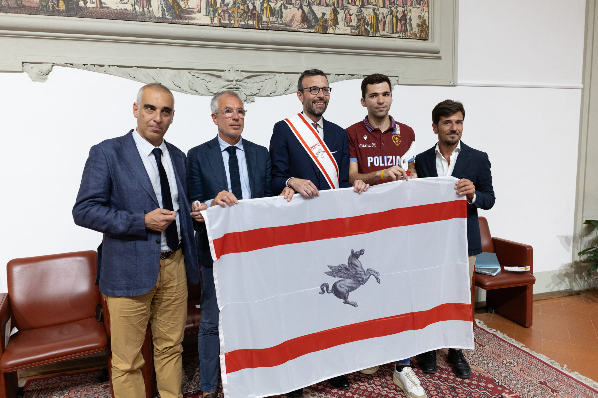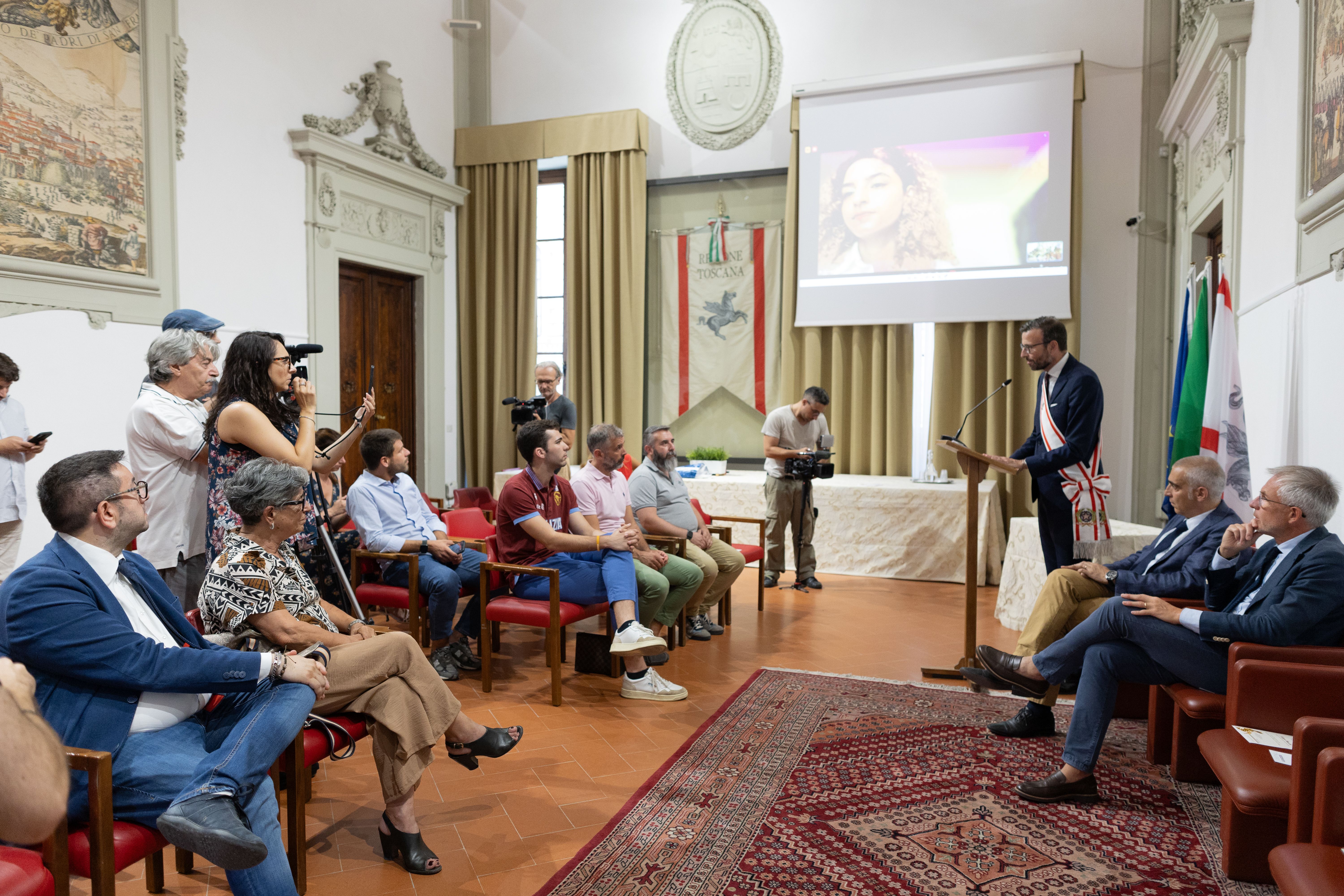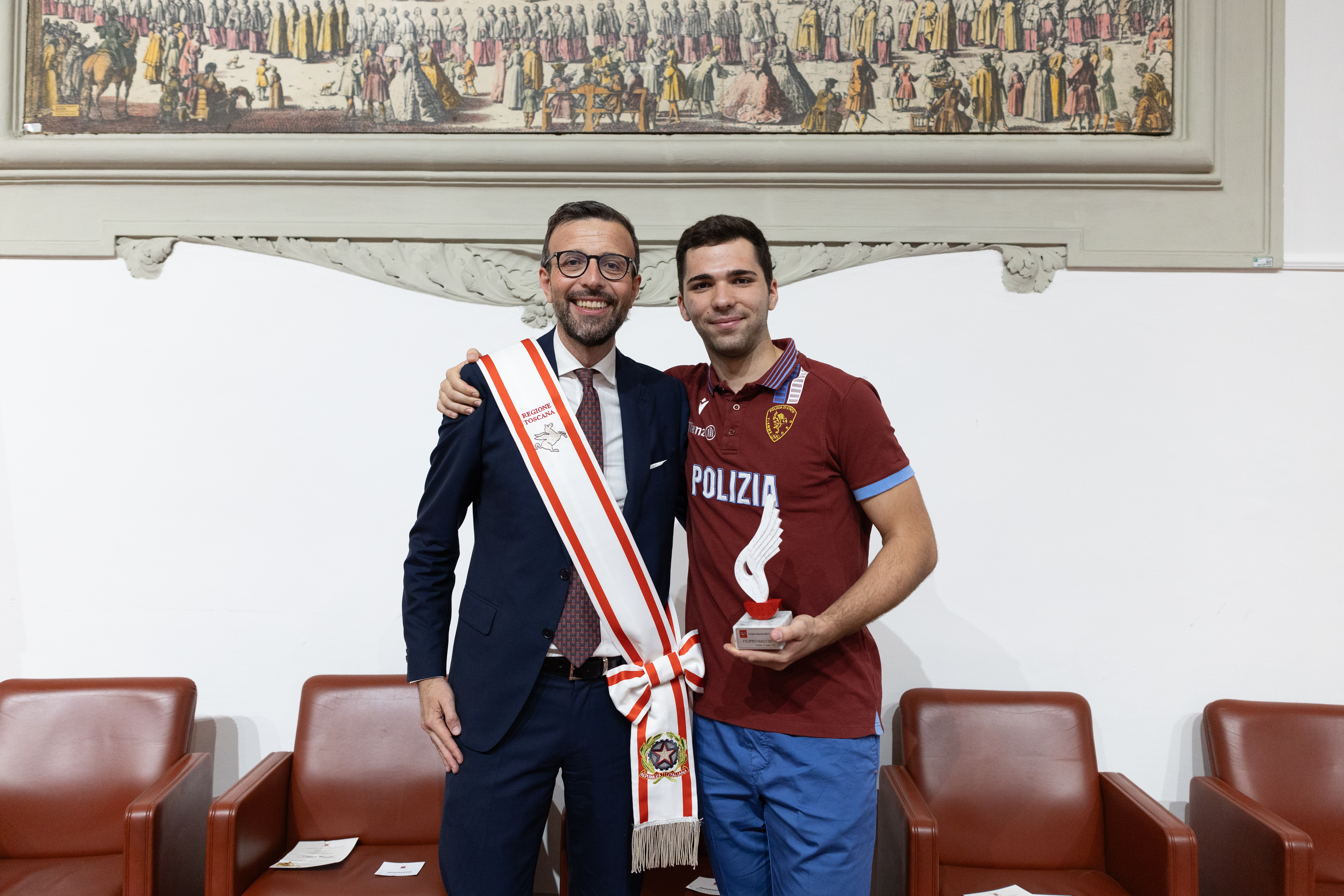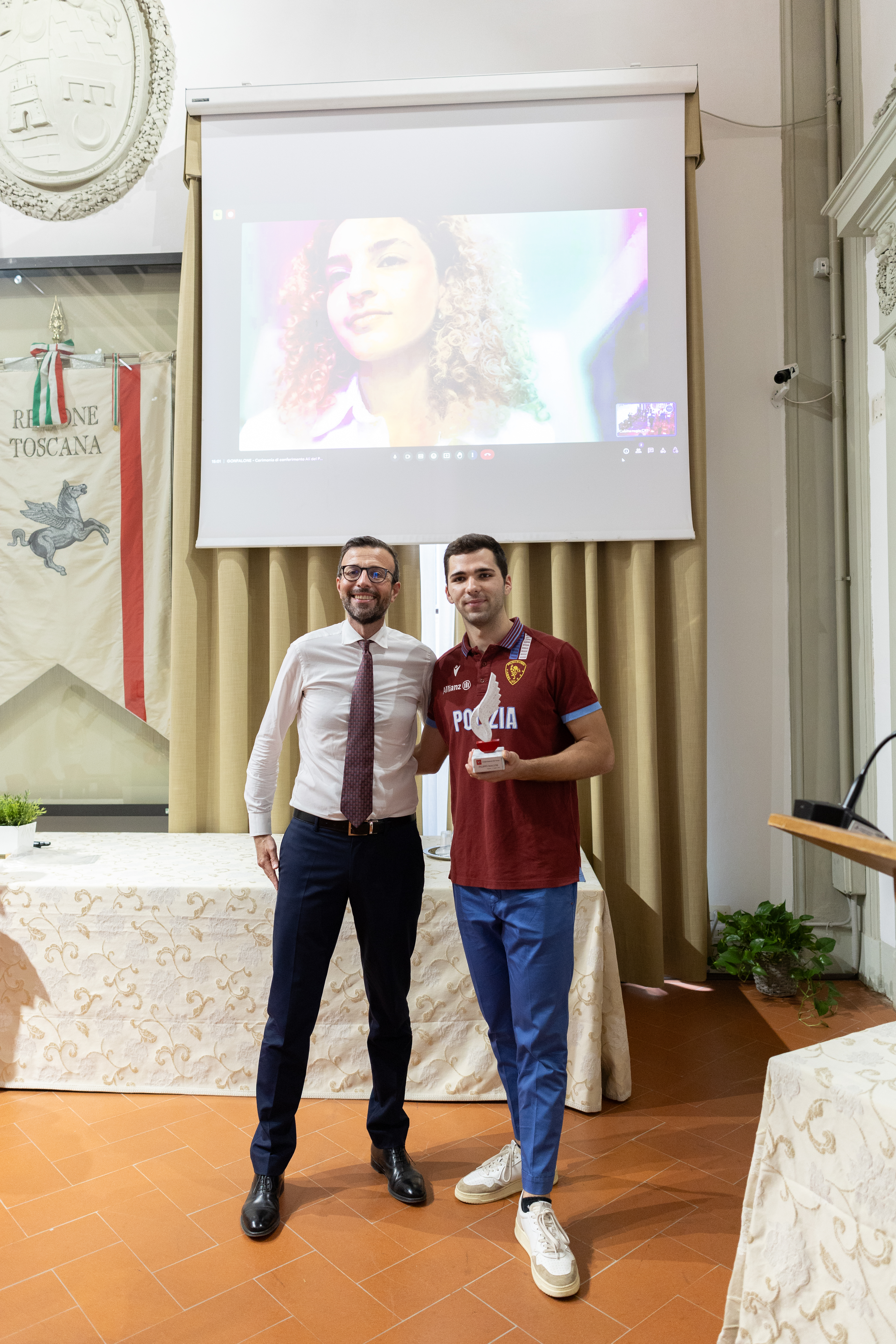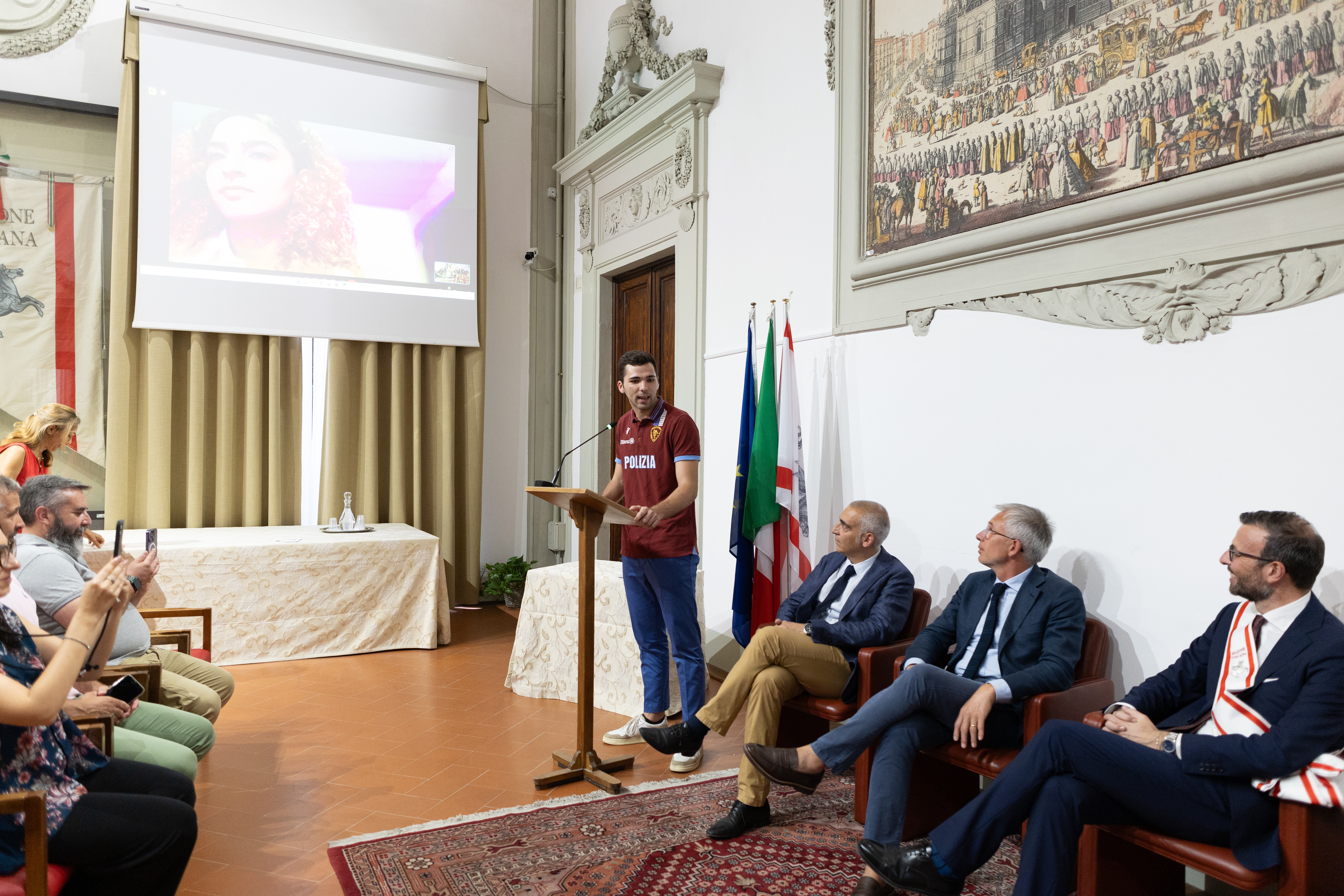 Ha partecipato alla cerimonia, durante la quale è stato proiettato un video sui momenti più emozionanti della vittoria di Filippo Macchi, il consigliere questore dell’Ufficio di presidenza Marco Stella. Sono intervenuti i consiglieri regionali Luciana Bartolini, Francesco Torselli e Cristina Giachi.