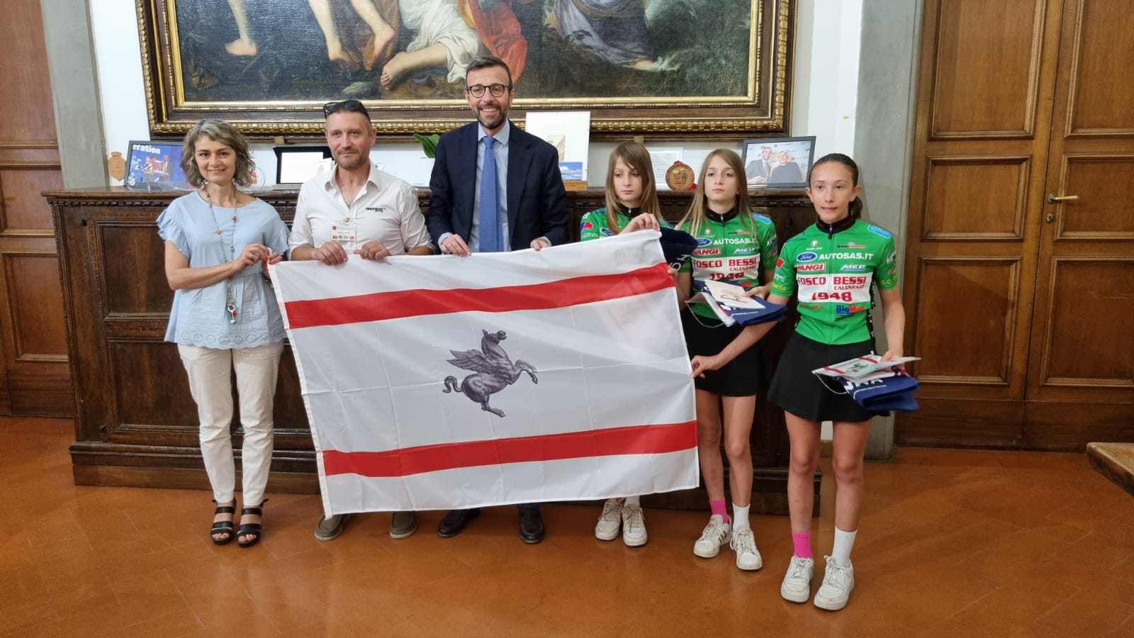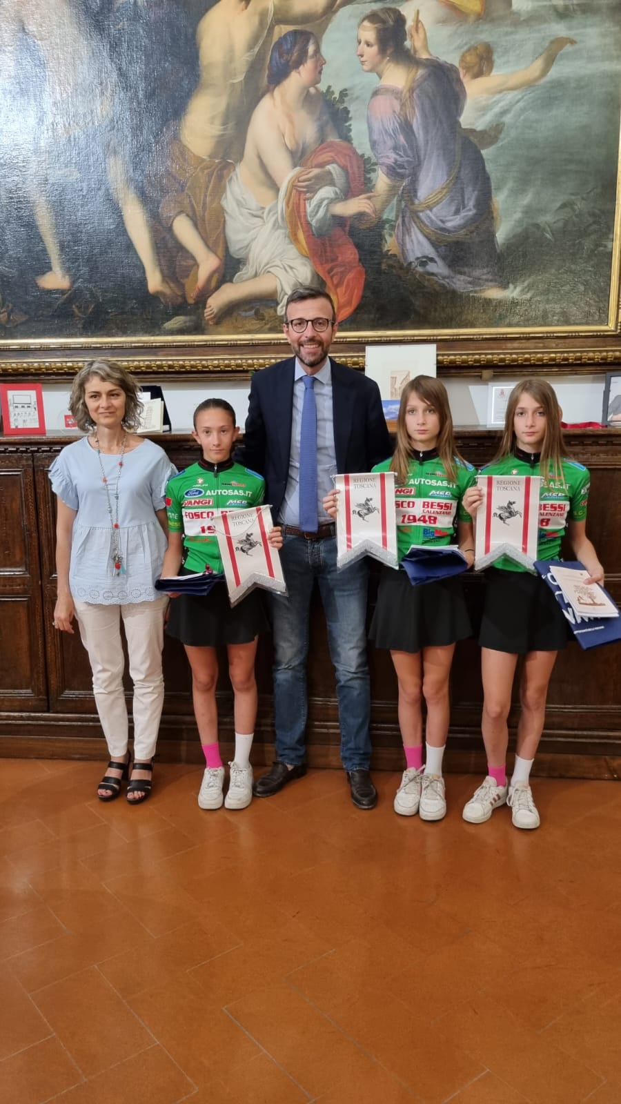 Firenze – Una copia della Costituzione e della Carta dei Diritti della Bambina a tre giovani promesse del ciclismo toscano, Asia e Siria Genovese e Sara Colzi della società Fosco Bessi di Calenzano, sono state consegnate dal presidente del Consiglio regionale Antonio Mazzeo e dalla presidente della commissione regionale per le pari opportunità Francesca Basanieri.