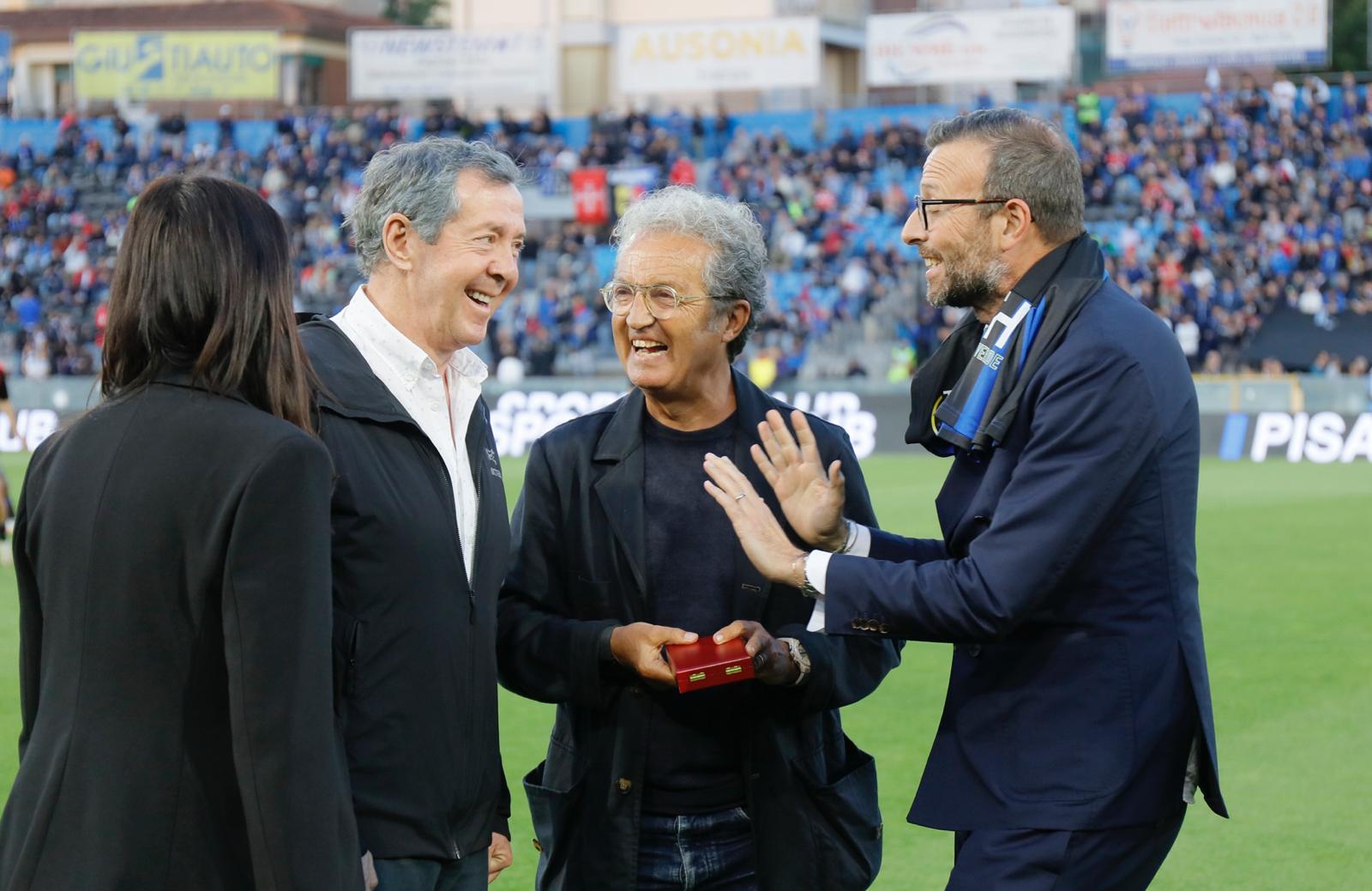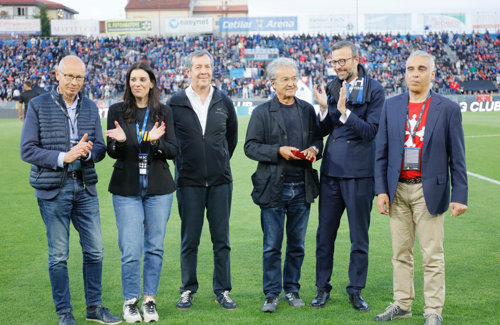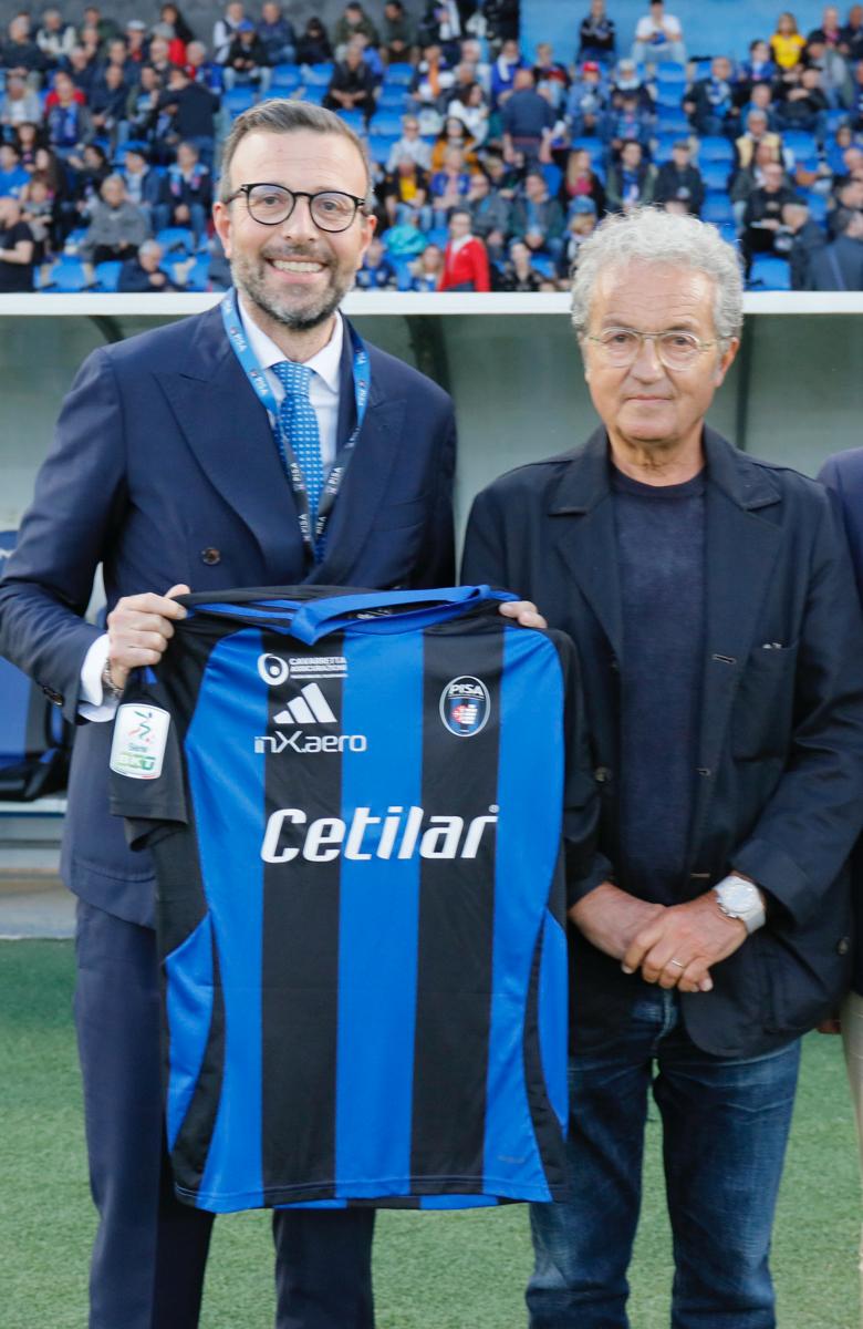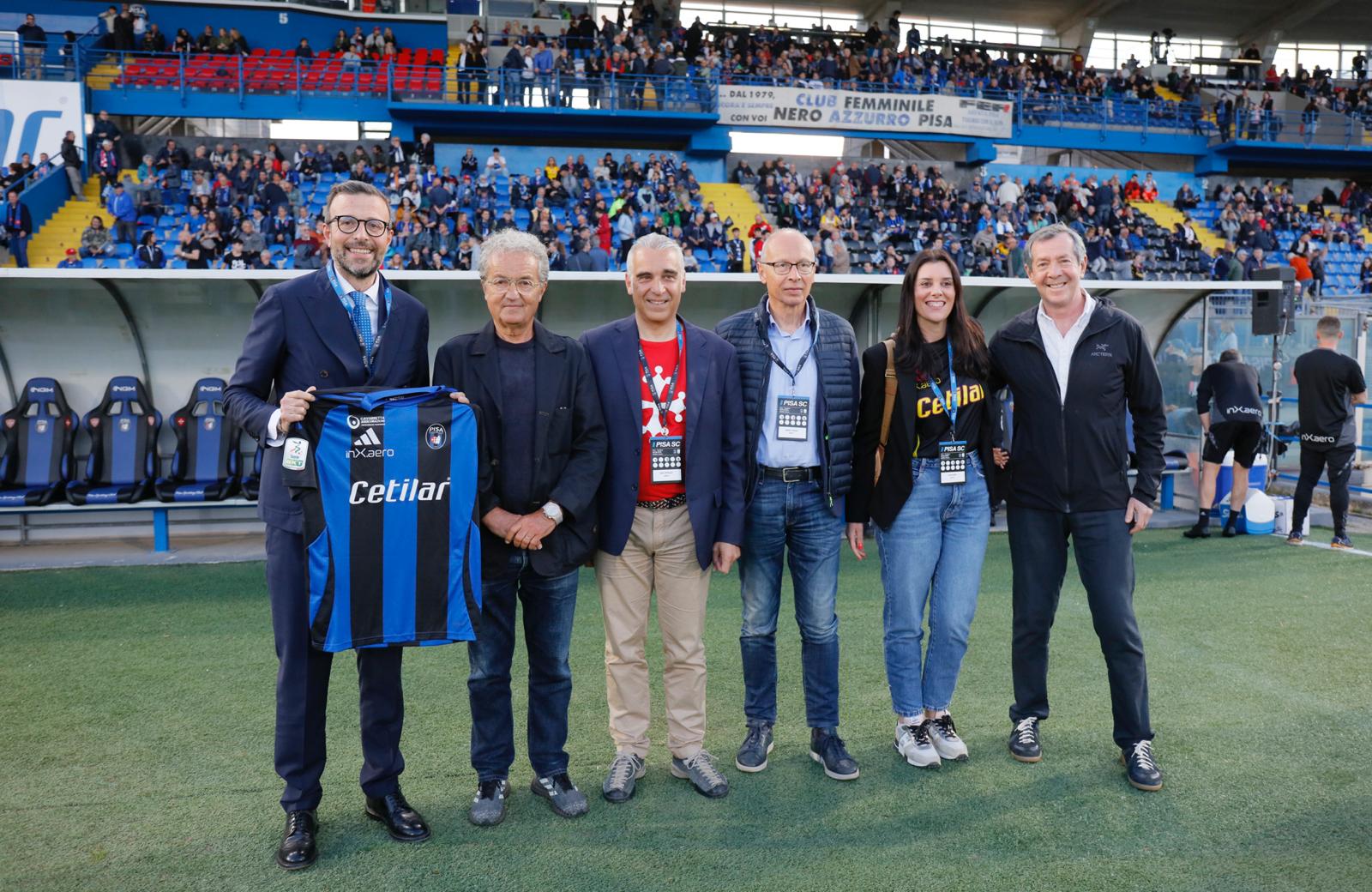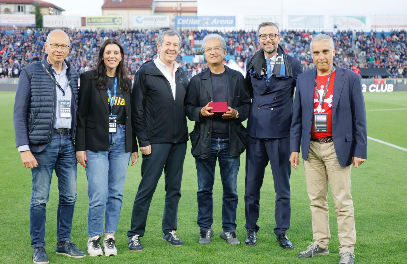 Ieri sera sul campo all’Arena Garibaldi prima del fischio d’inizio della partita con il Südtirol. Mazzeo: “Grande emozione, celebriamo non solo i risultati sportivi, ma soprattutto il lavoro di squadra, la tenacia, la grinta e la capacità di far sognare una comunità intera”. Con il presidente, i consiglieri Pieroni, Meini e Petrucci