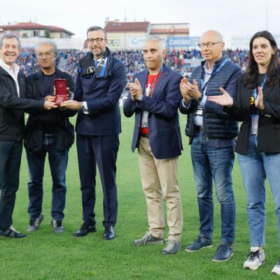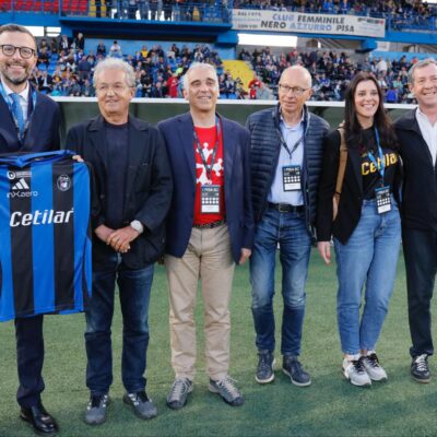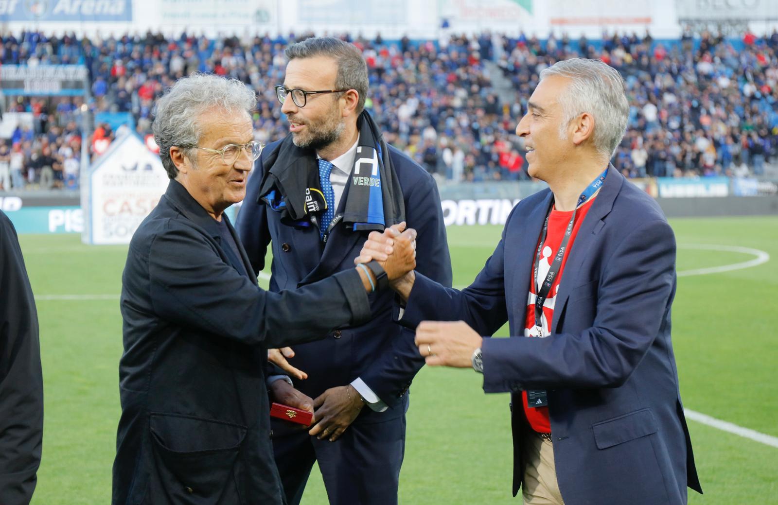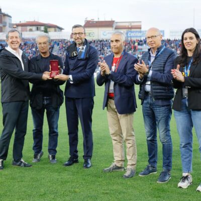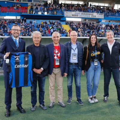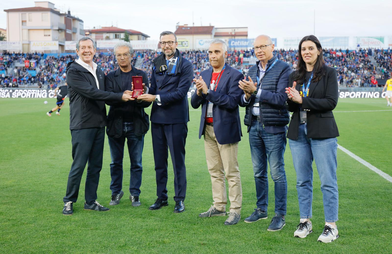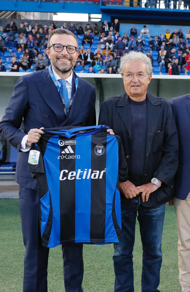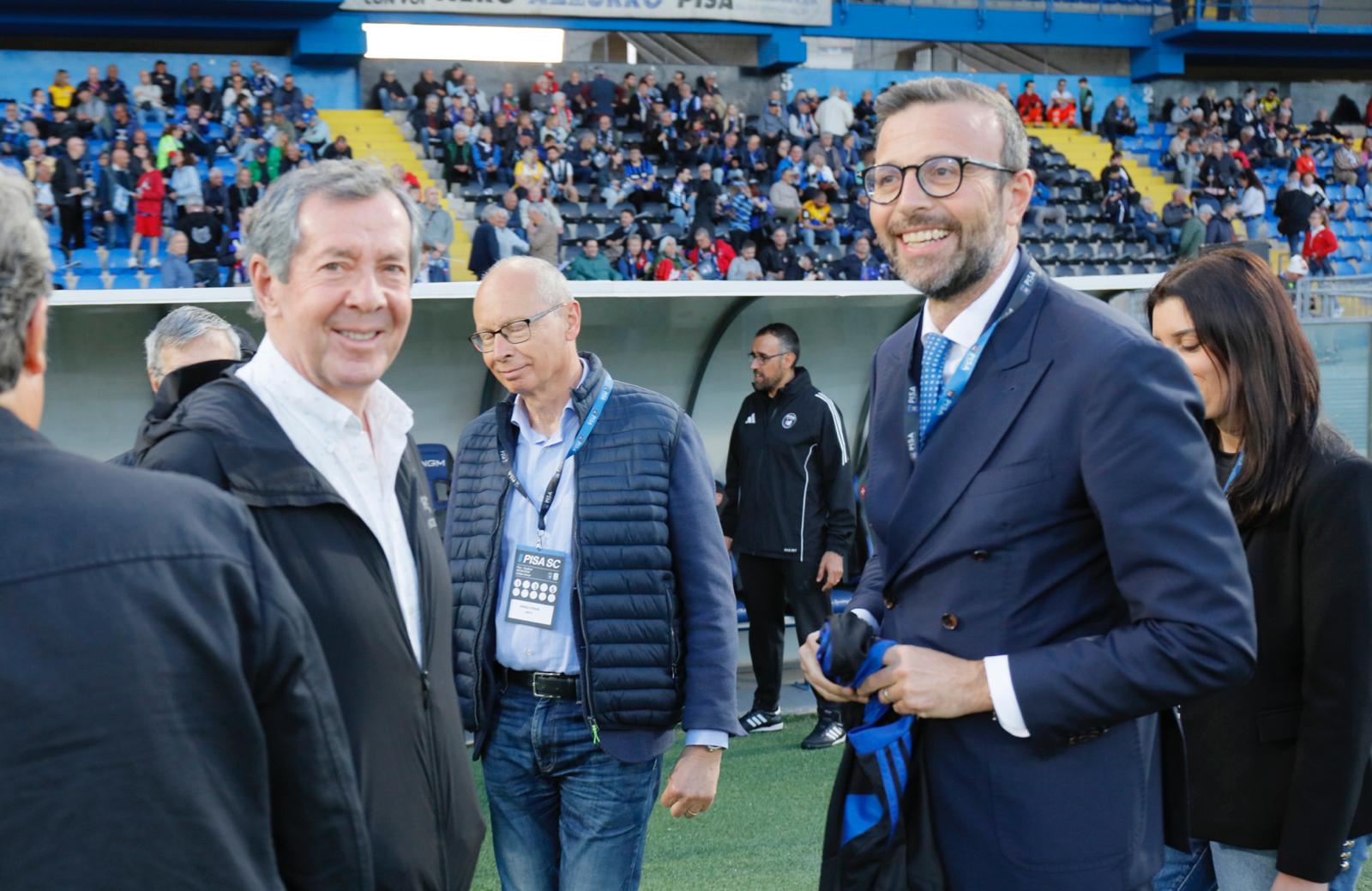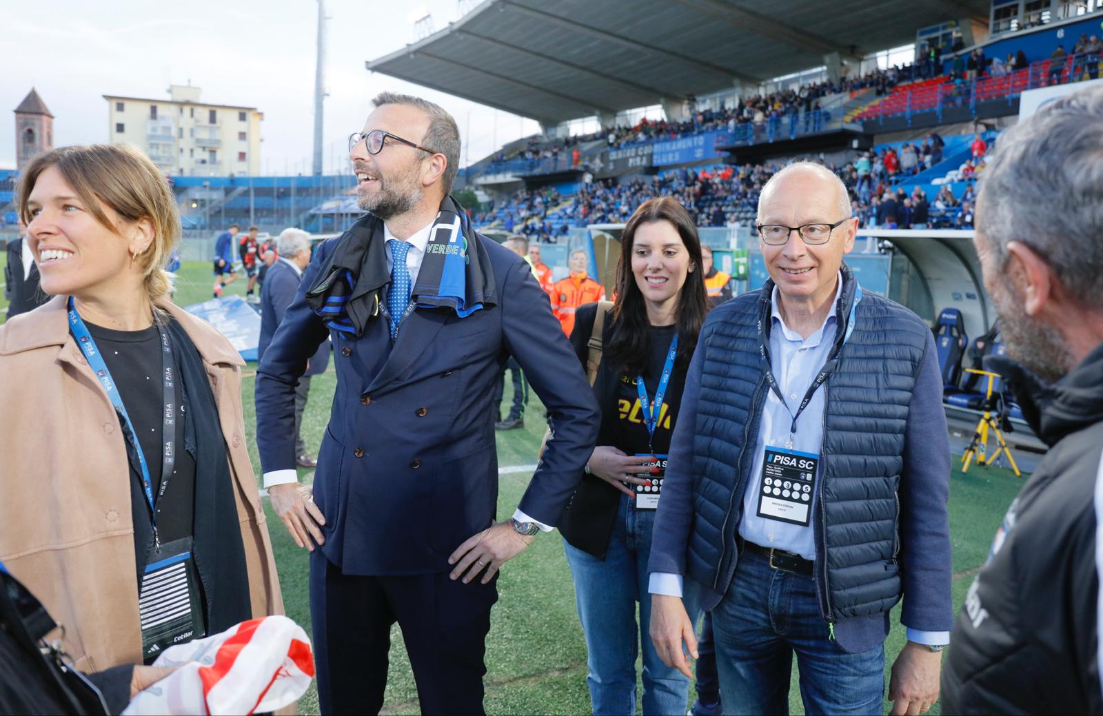 Ieri sera sul campo all’Arena Garibaldi prima del fischio d’inizio della partita con il Südtirol. Mazzeo: “Grande emozione, celebriamo non solo i risultati sportivi, ma soprattutto il lavoro di squadra, la tenacia, la grinta e la capacità di far sognare una comunità intera”. Con il presidente, i consiglieri Pieroni, Meini e Petrucci